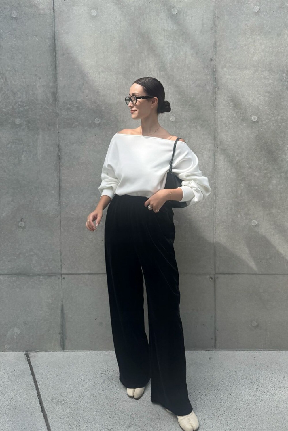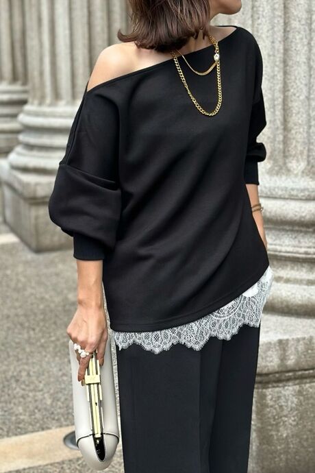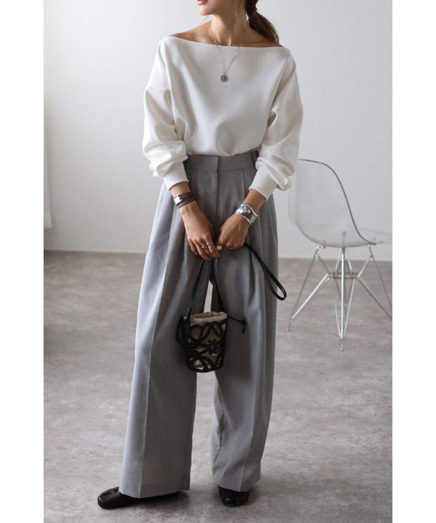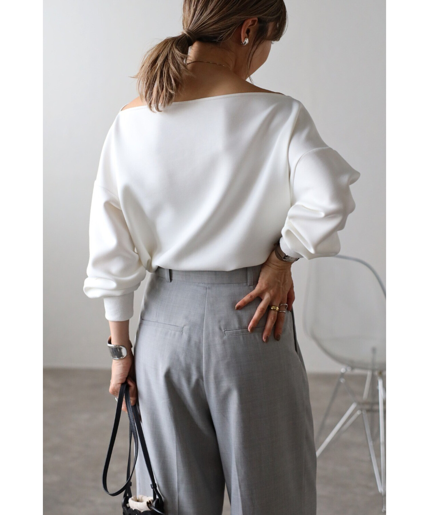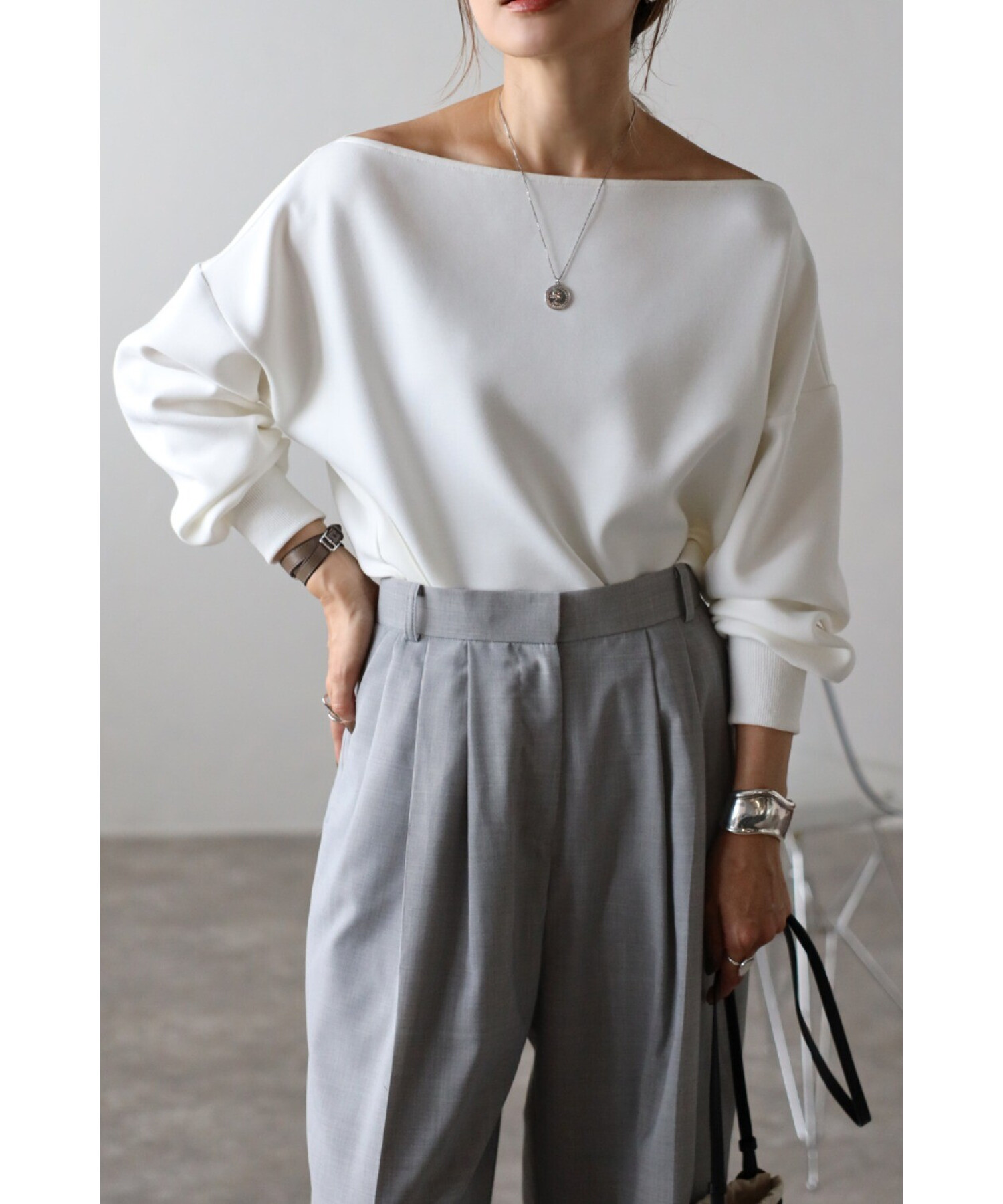 トレンド感のあるオフショルデザインが大人の魅力を引き立てるセンシュアルなプルオーバー。