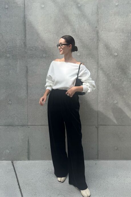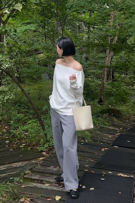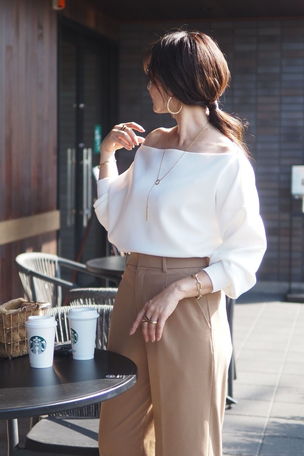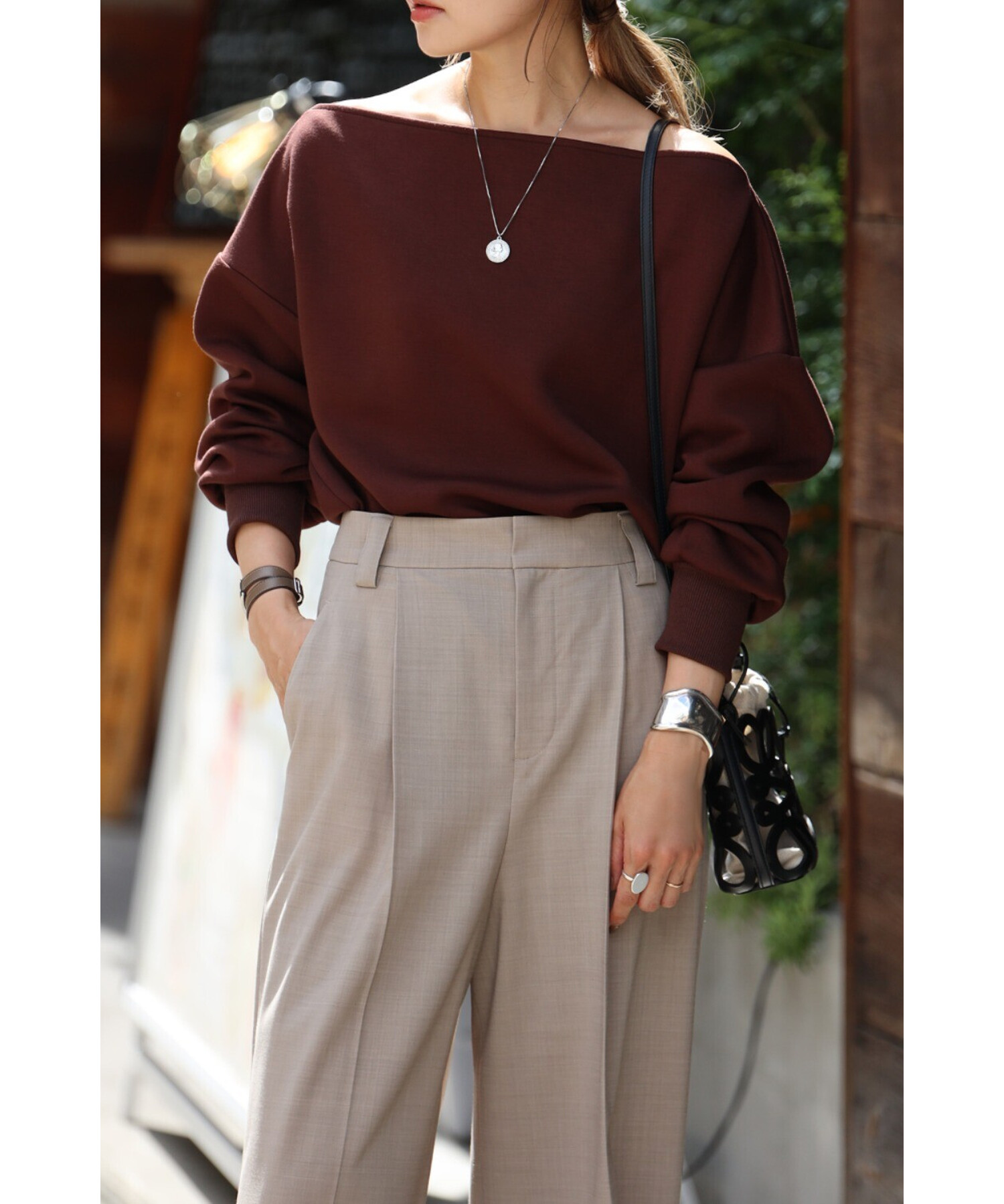 リラクシーな大人の雰囲気。トレンドライクなオフショルプルオーバー