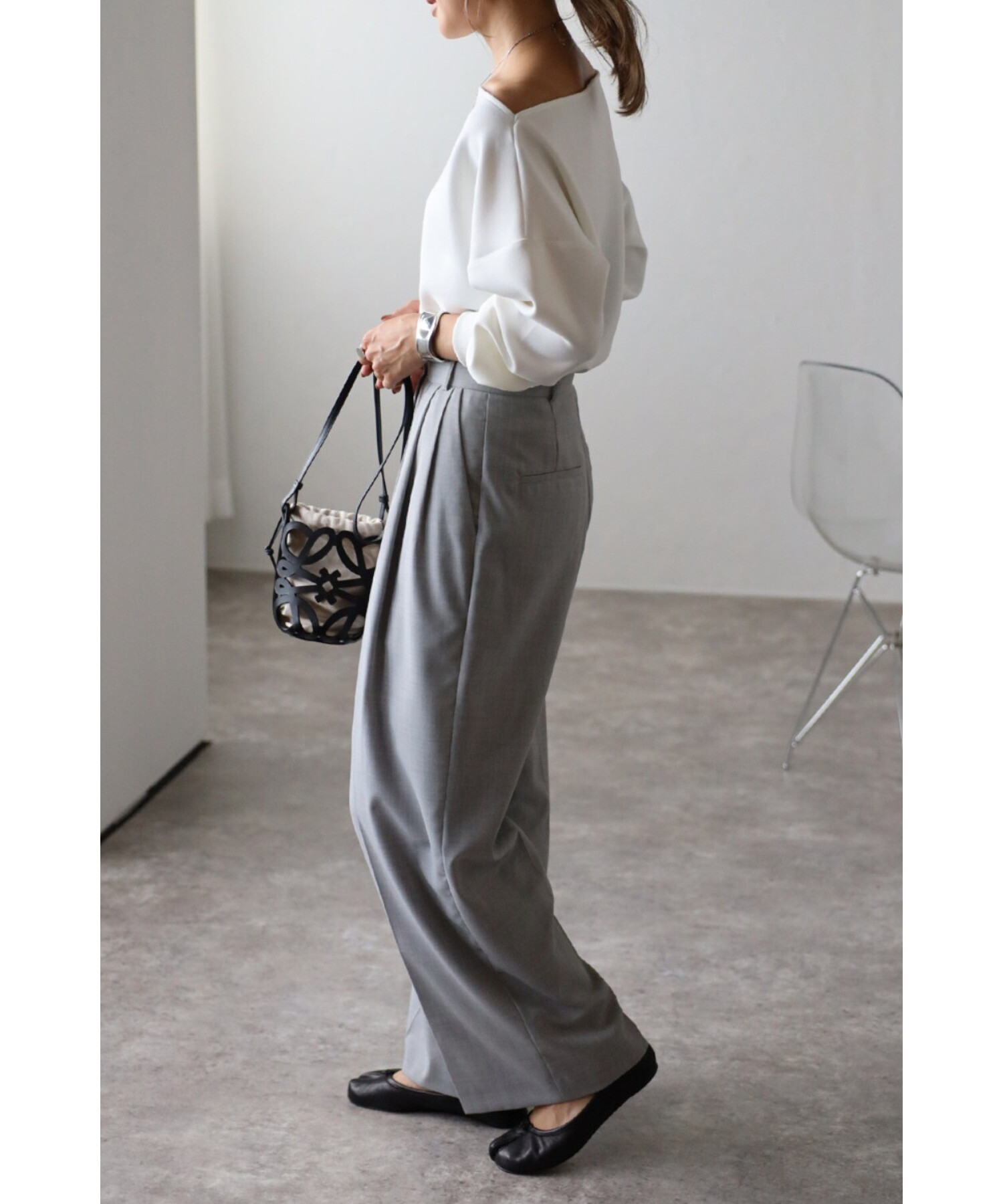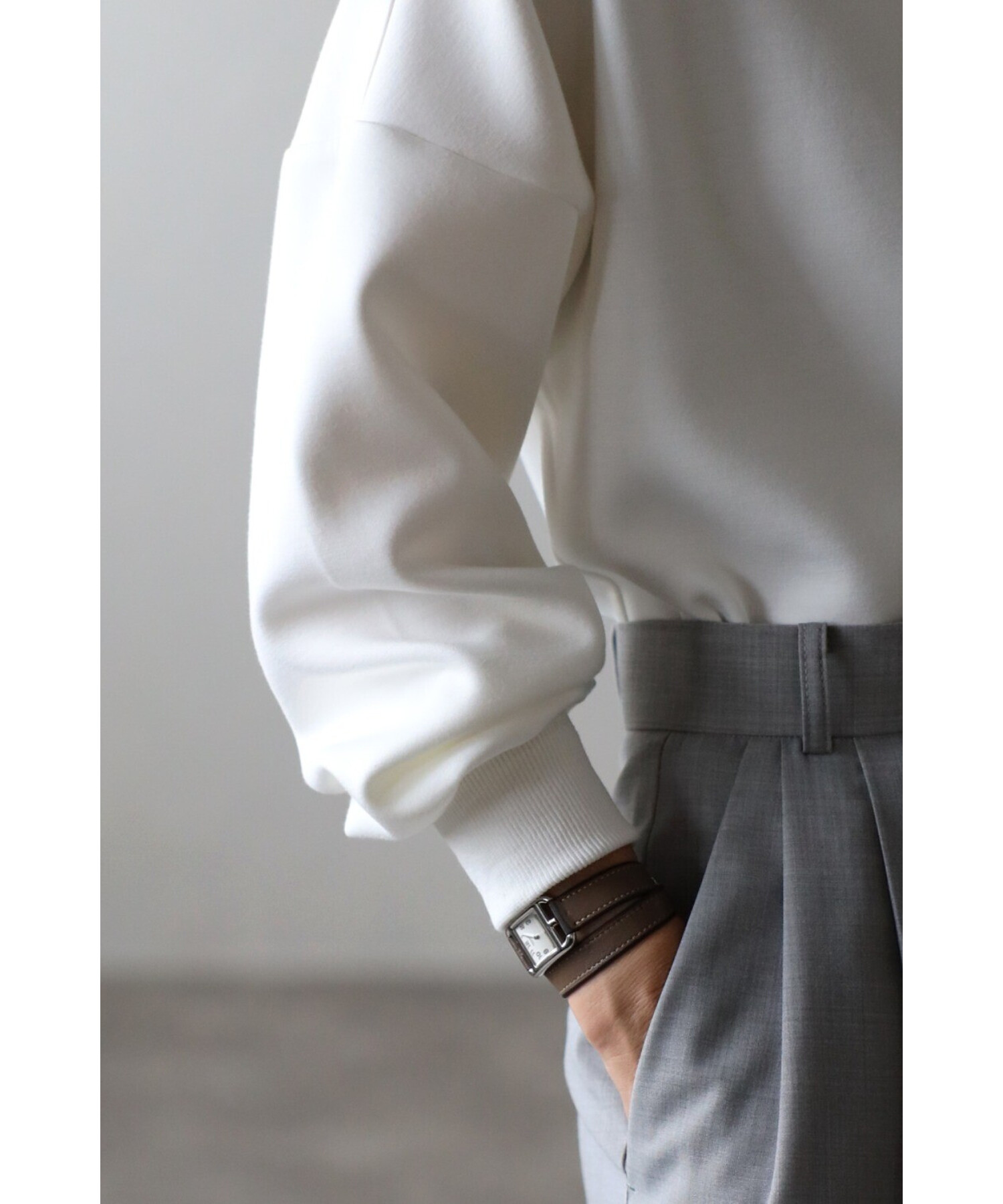 ゆったりとしたシルエットに、ドロップショルダーが女性らしい一枚です。