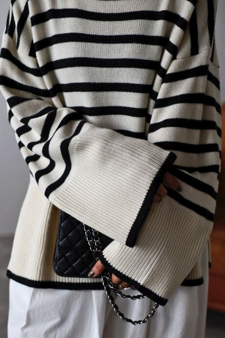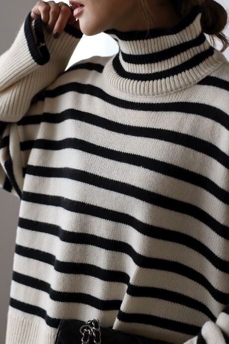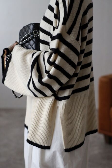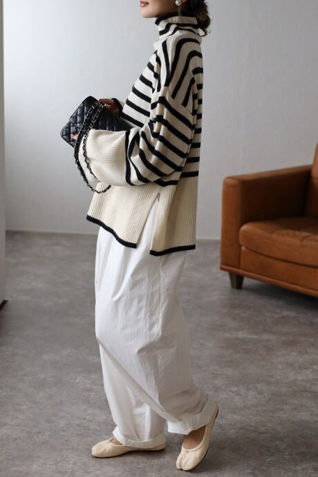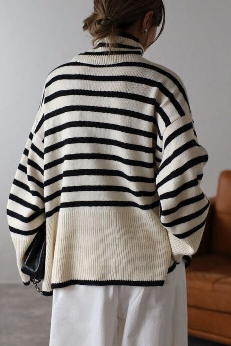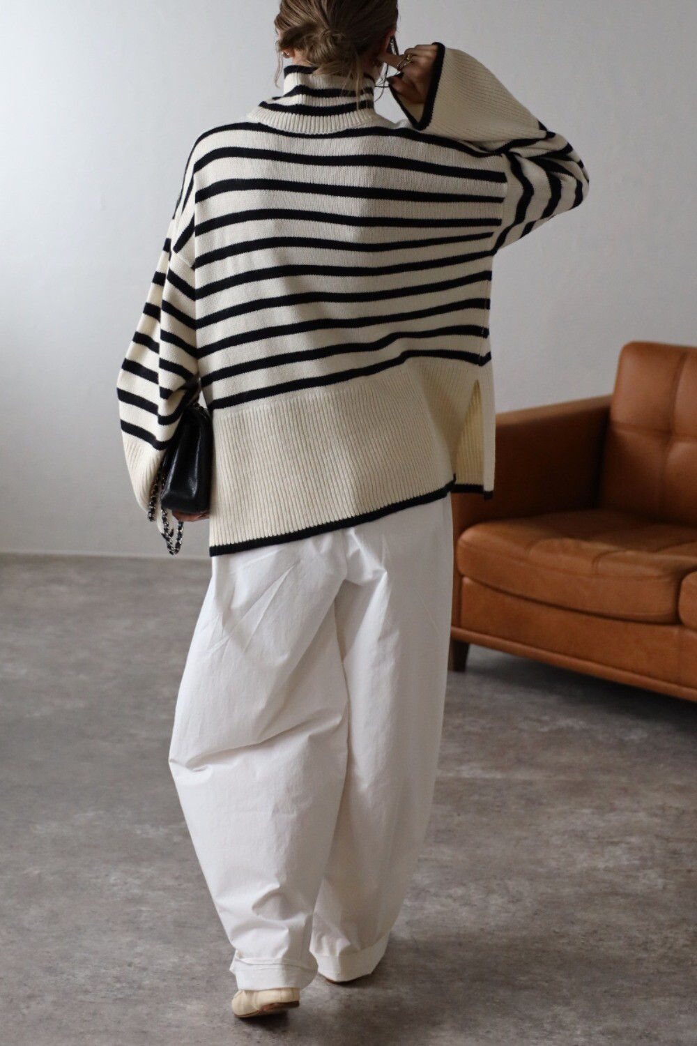 パネルボーダーが大人っぽい◎ルーズに着映えるタートルニット