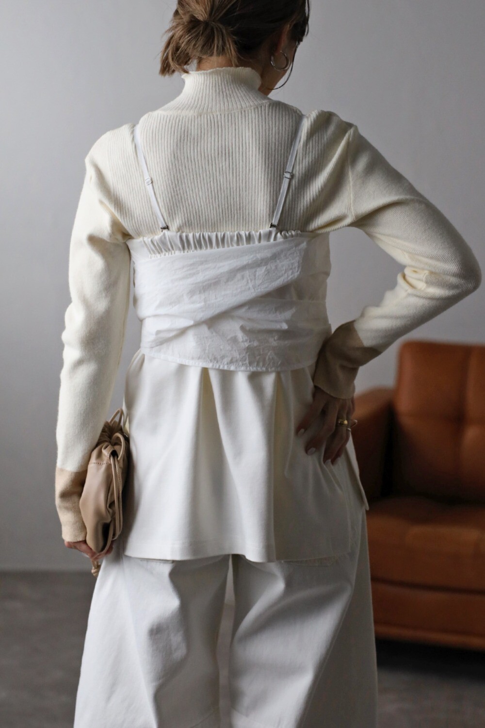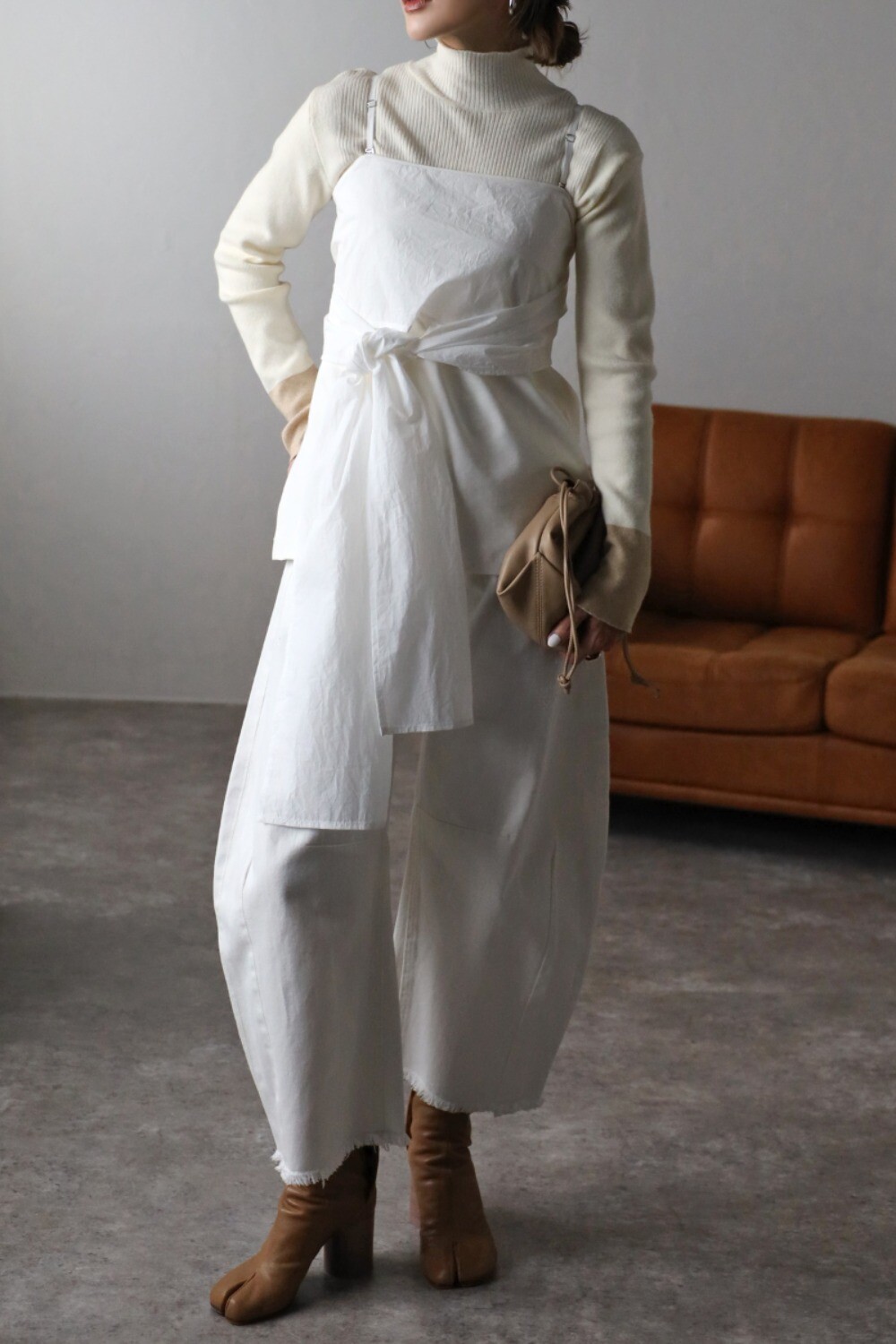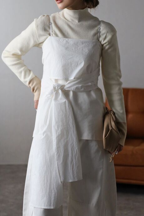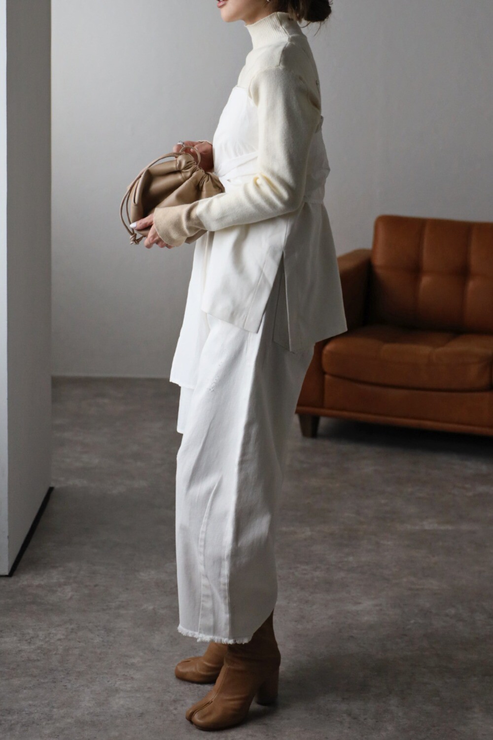 インナーキャミやTシャツを合わせたり、タートルニットに重ねるなどレイヤードコーデが楽しめるアイテムです。