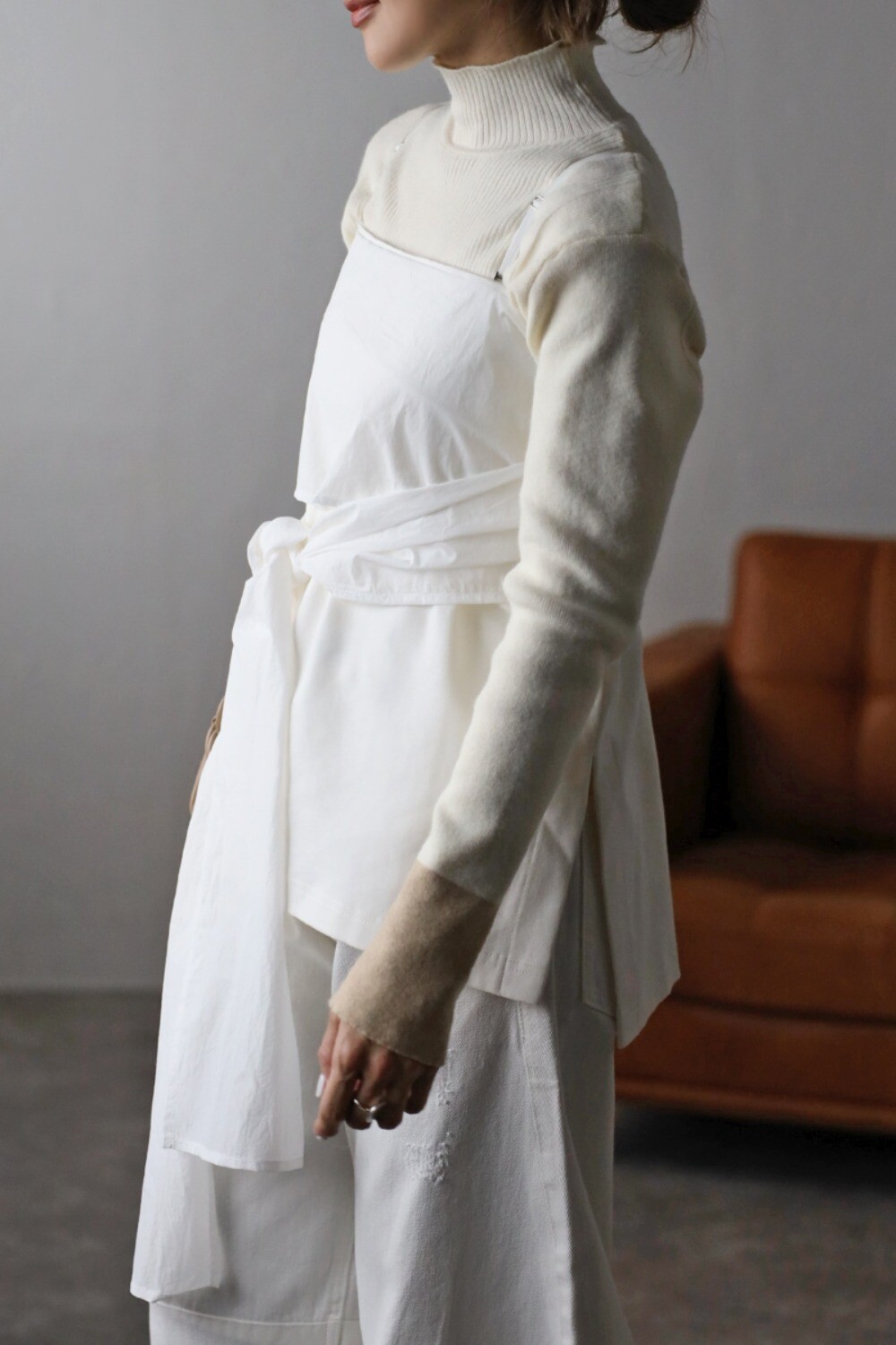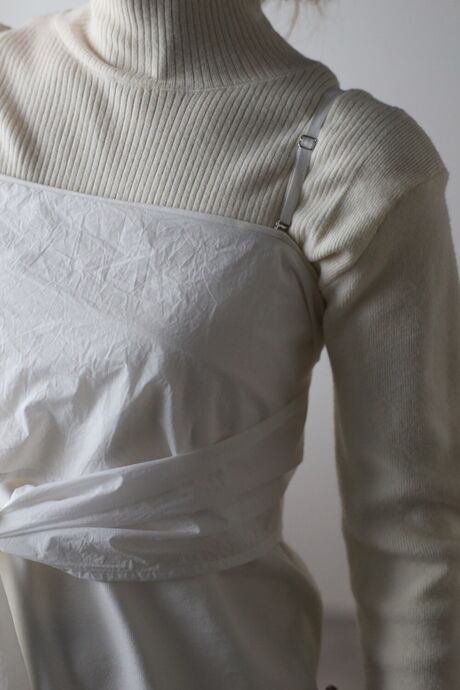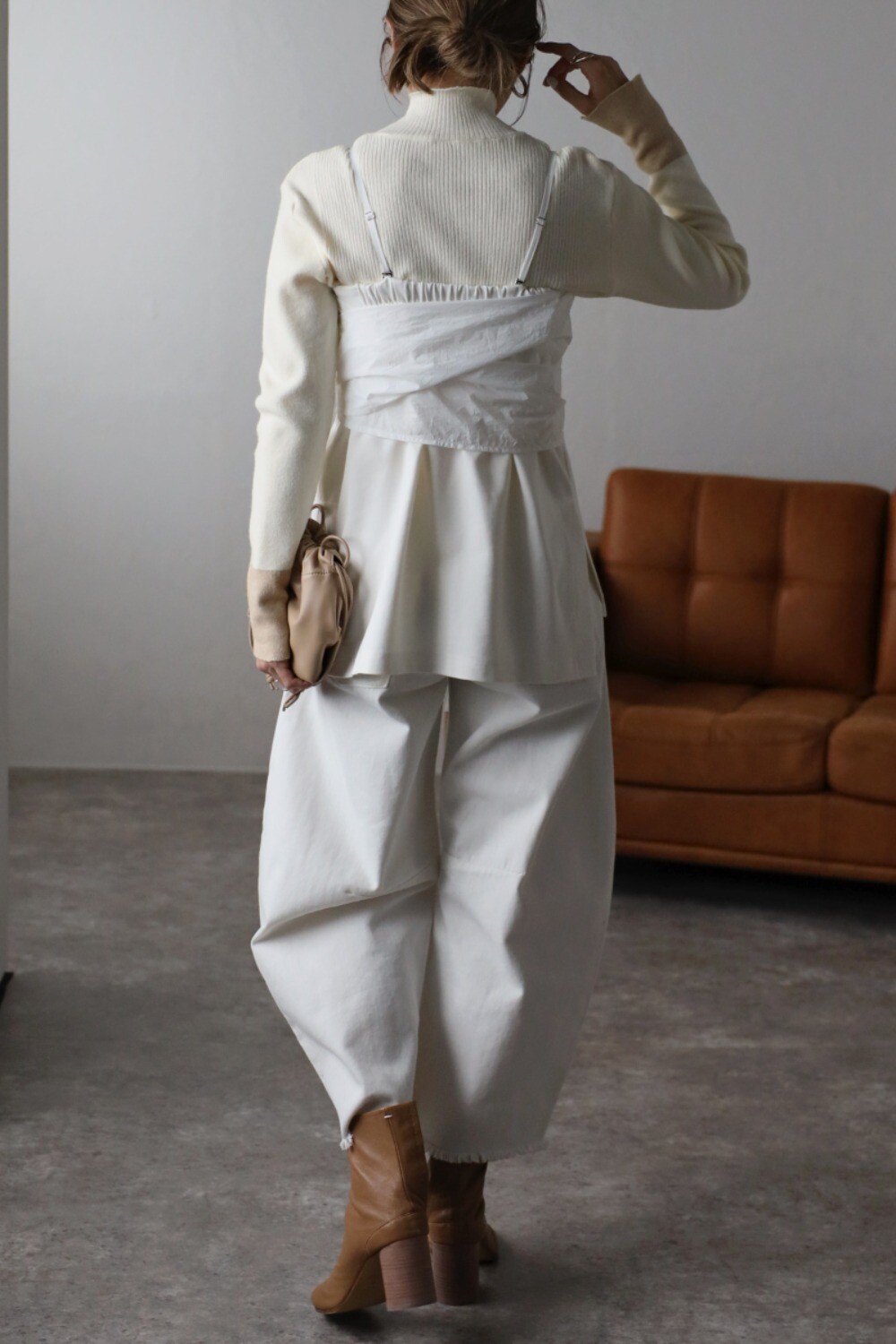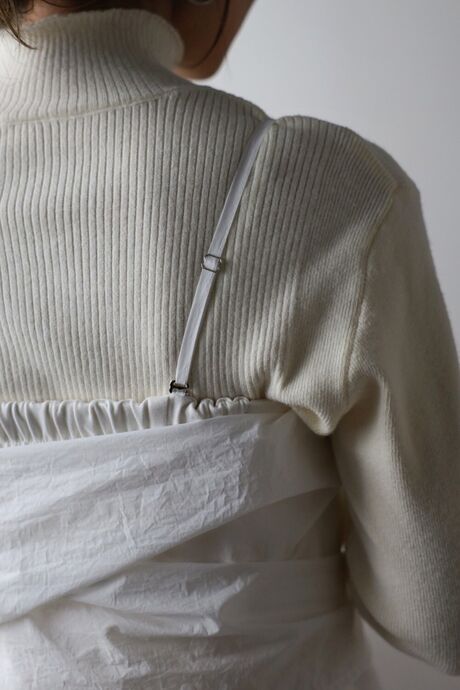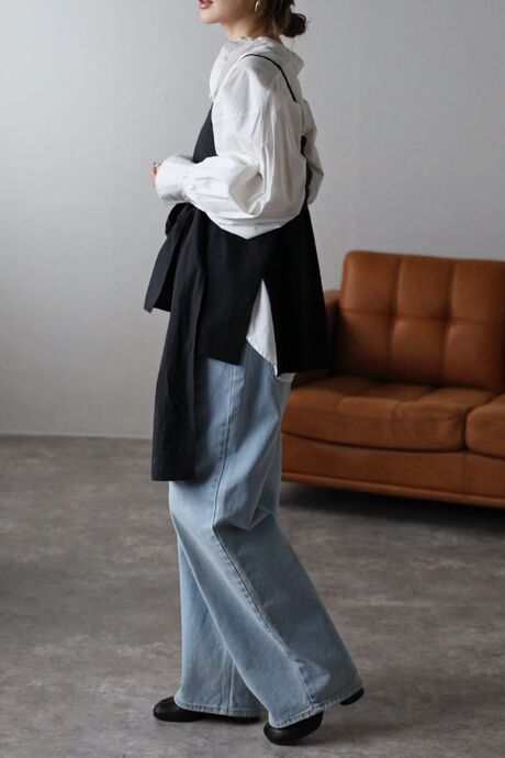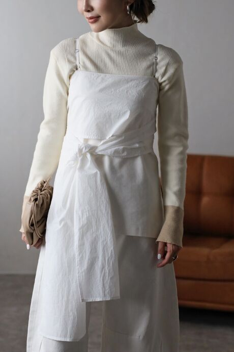 インナーキャミやTシャツを合わせたり、タートルニットに重ねるなどレイヤードコーデが楽しめるアイテムです。