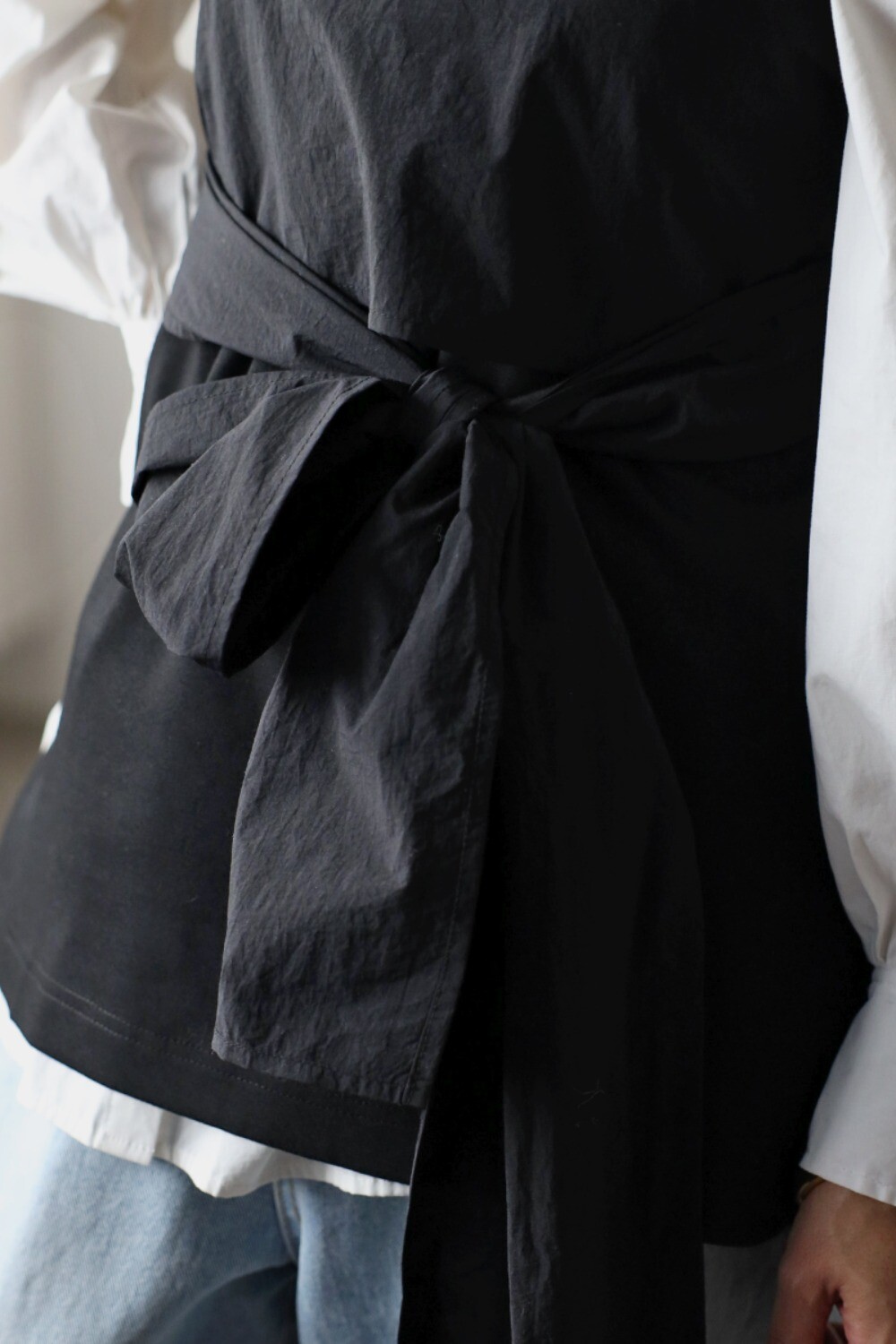 身頃はやや伸縮性のある柔らかい生地感で、さらっとした肌触りが上品な一枚です。