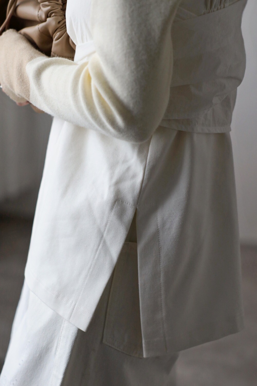 バックゴムでフィット感のある着心地で、深めのサイドスリットが抜け感を演出します。