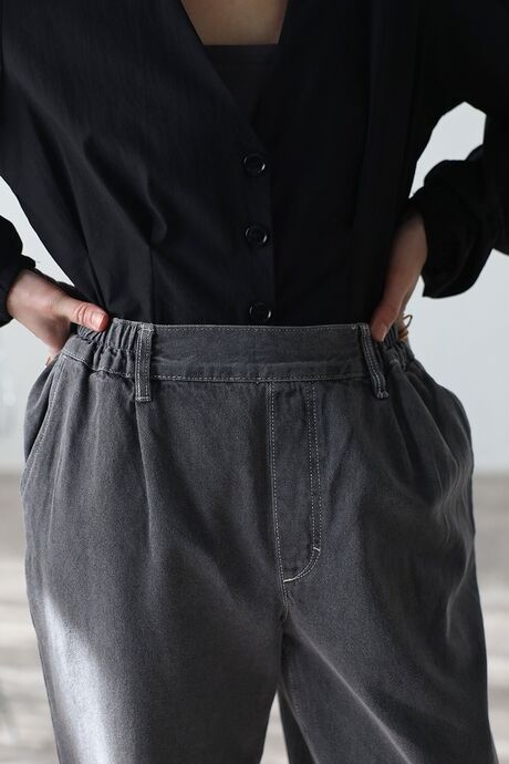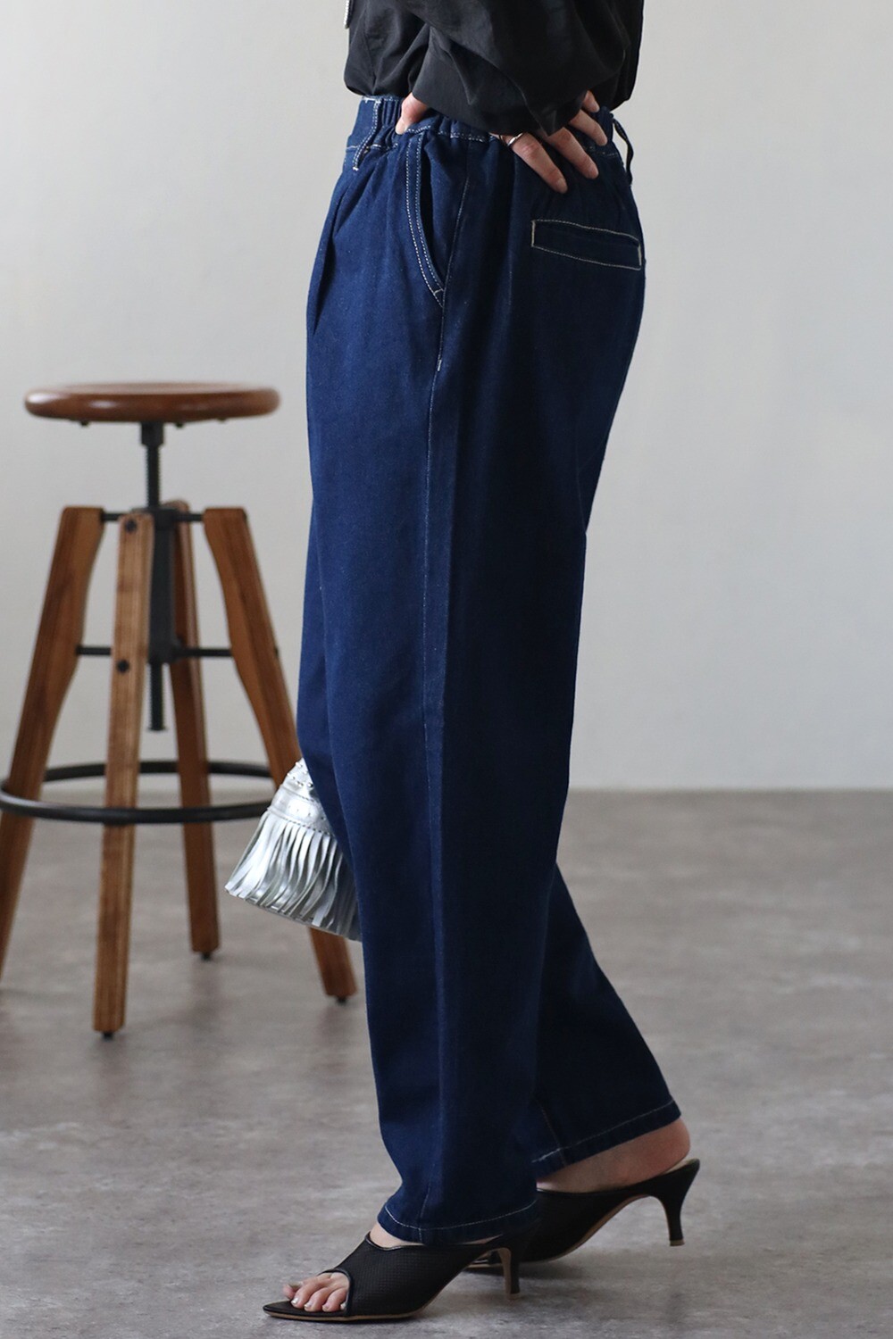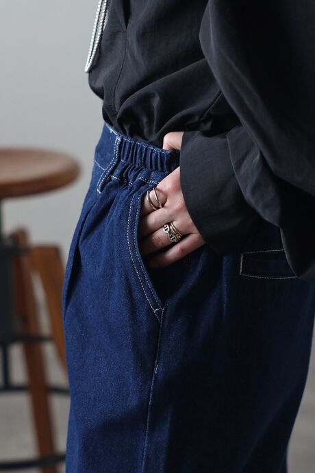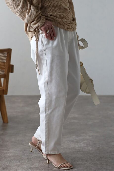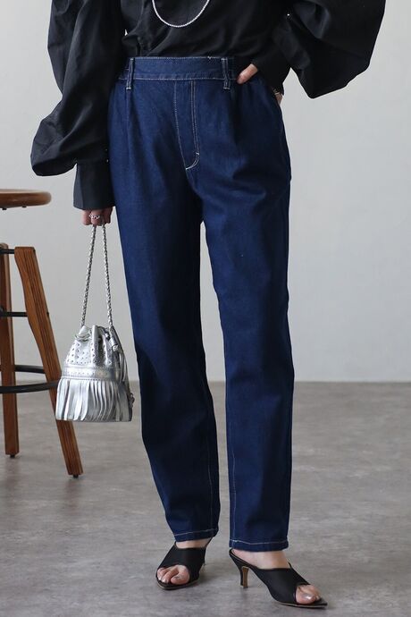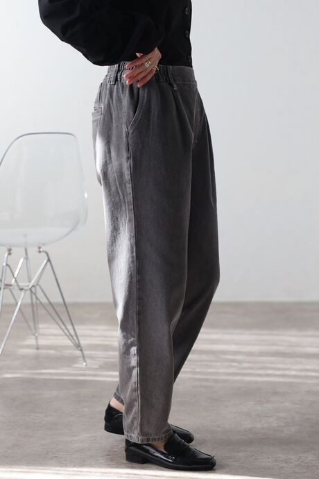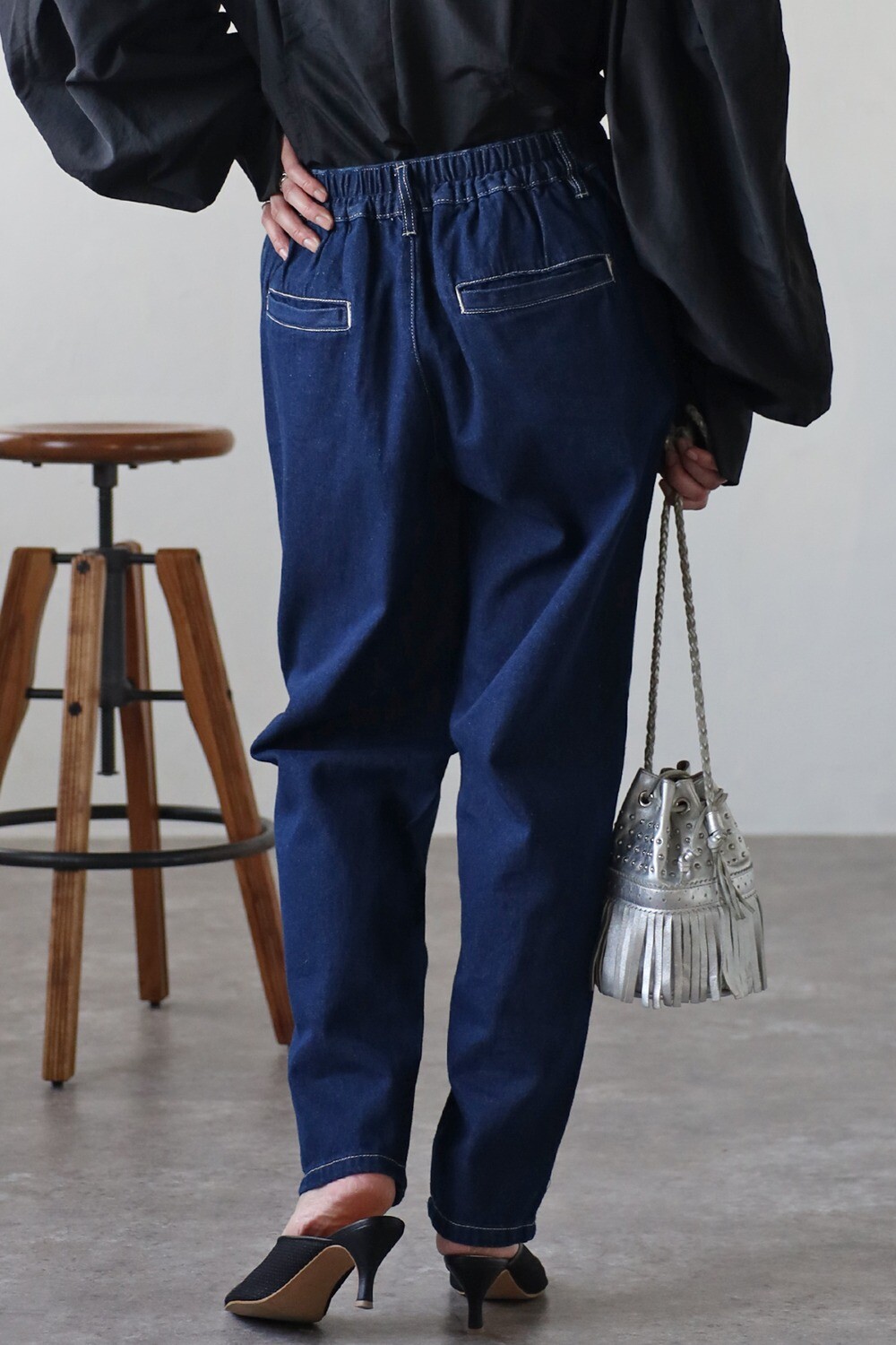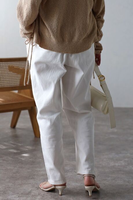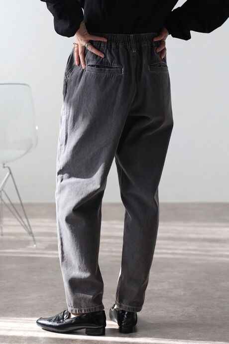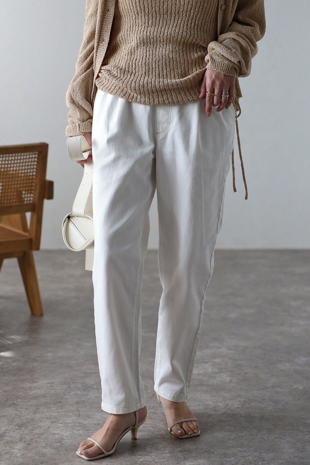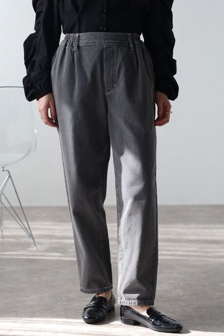 ウエストゴムでストレスフリーな穿き心地。大人カジュアルに決まるデニム/ツイルテーパードパンツ