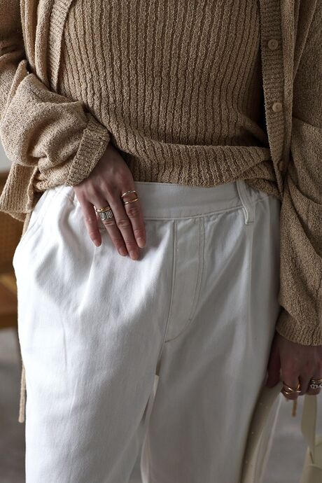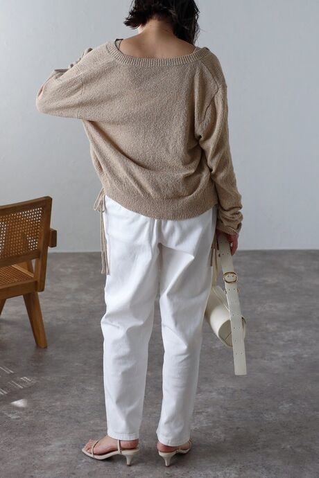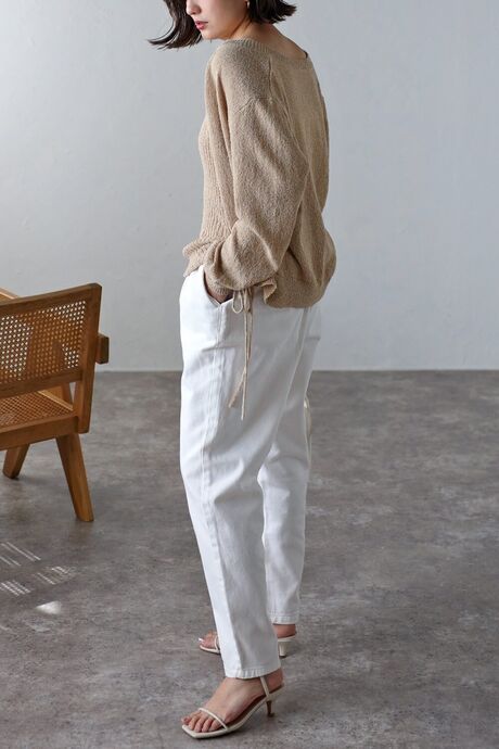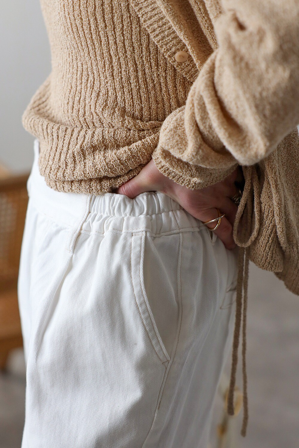 ウエストゴムのノーファスナーデザインで、リラクシーに着用いただけるコットンイージーパンツ。