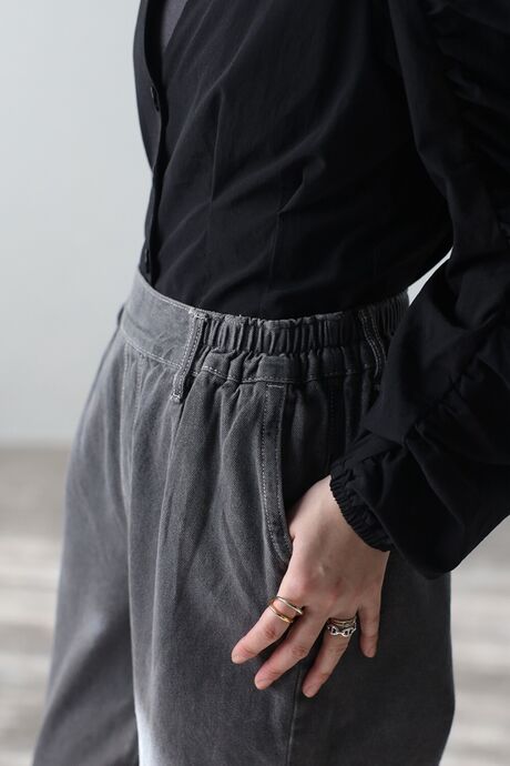 細めのベルトやサスペンダーを合わせればトレンド感のあるスタイルが完成します。