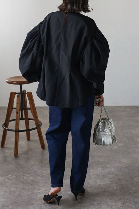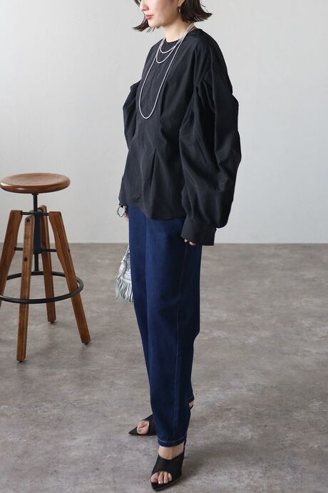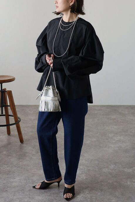 コンパクトなトップスを合わせたり、シャツをフロントインするなどシルエットを活かしたスタイリングがおすすめ。