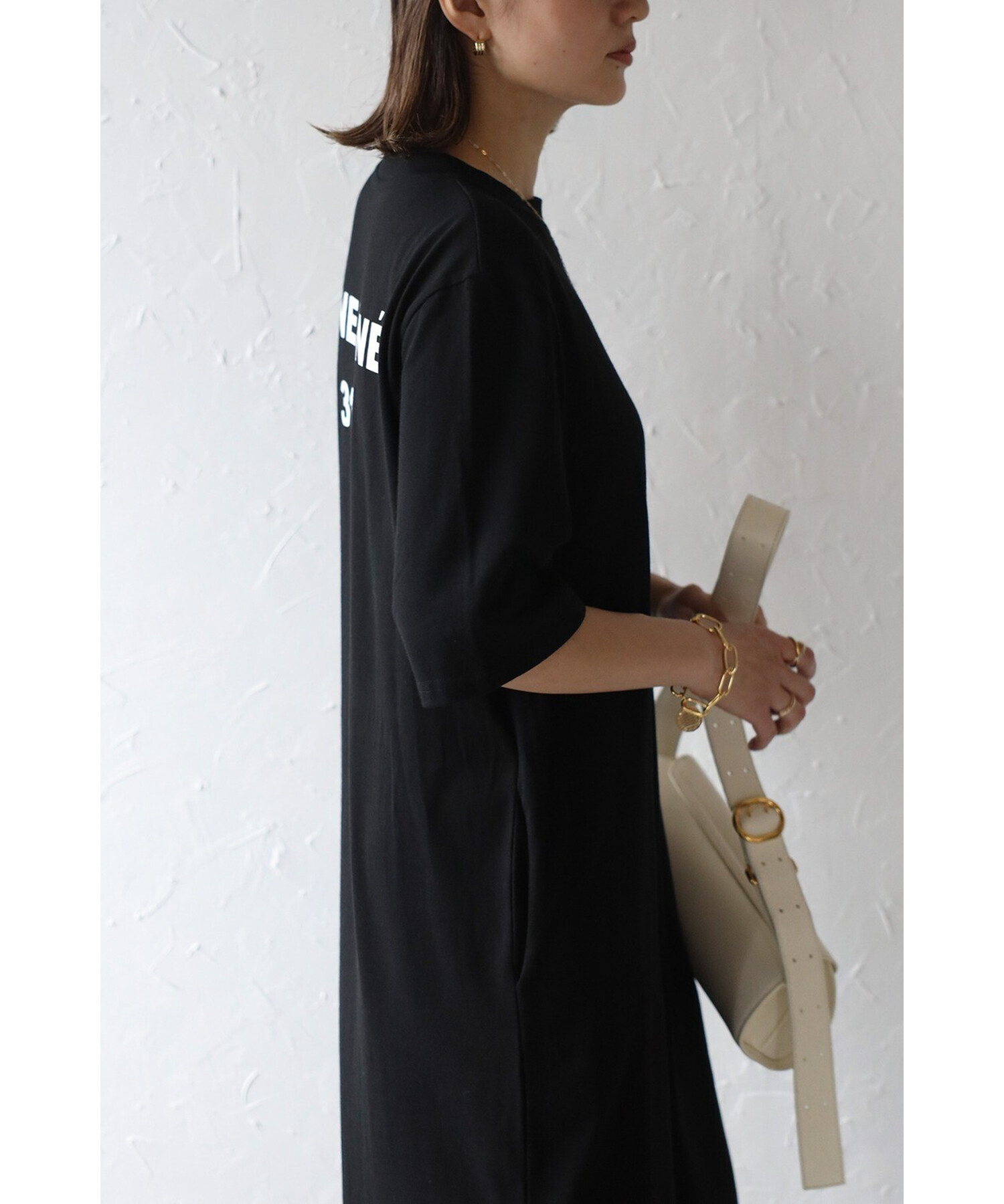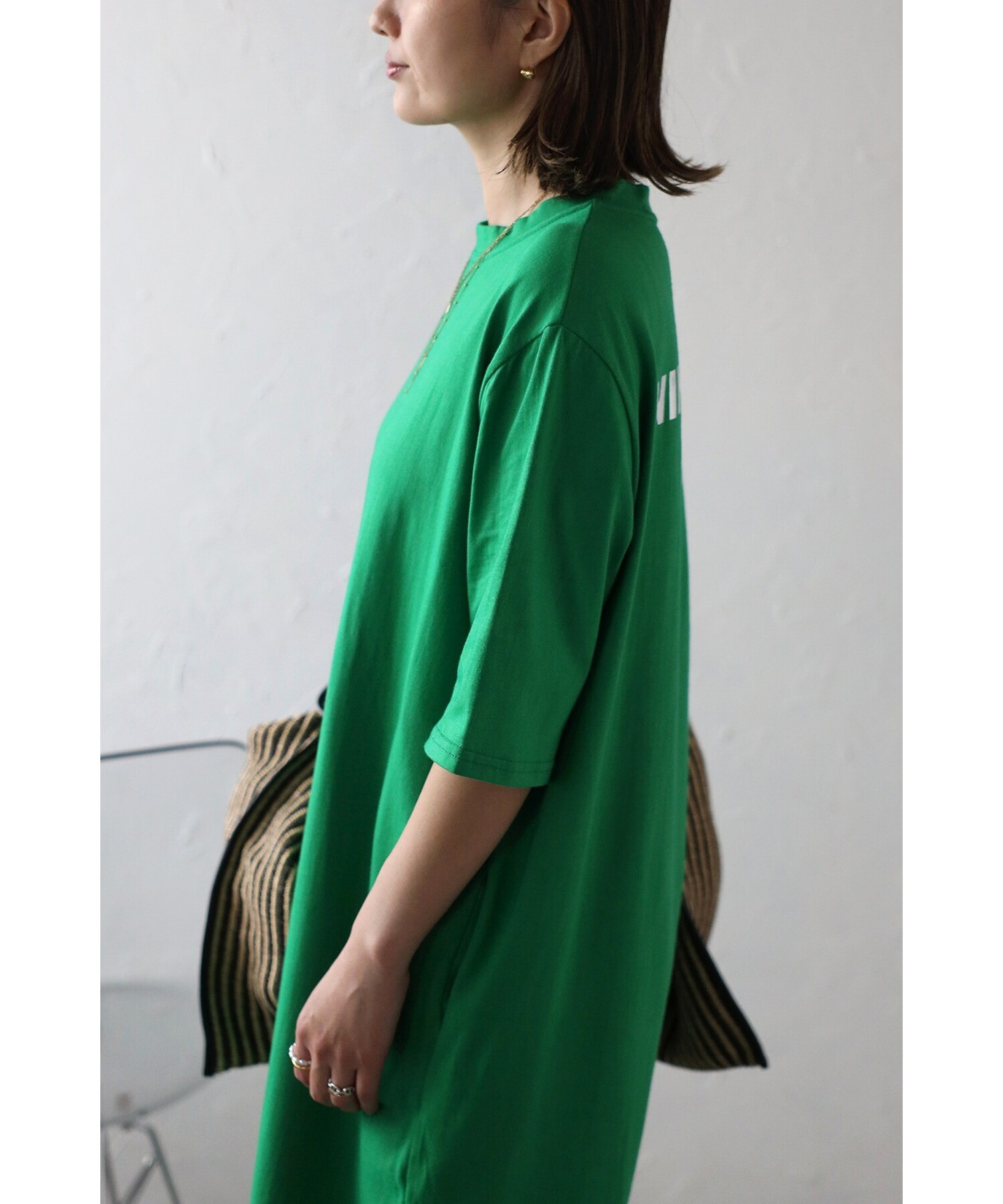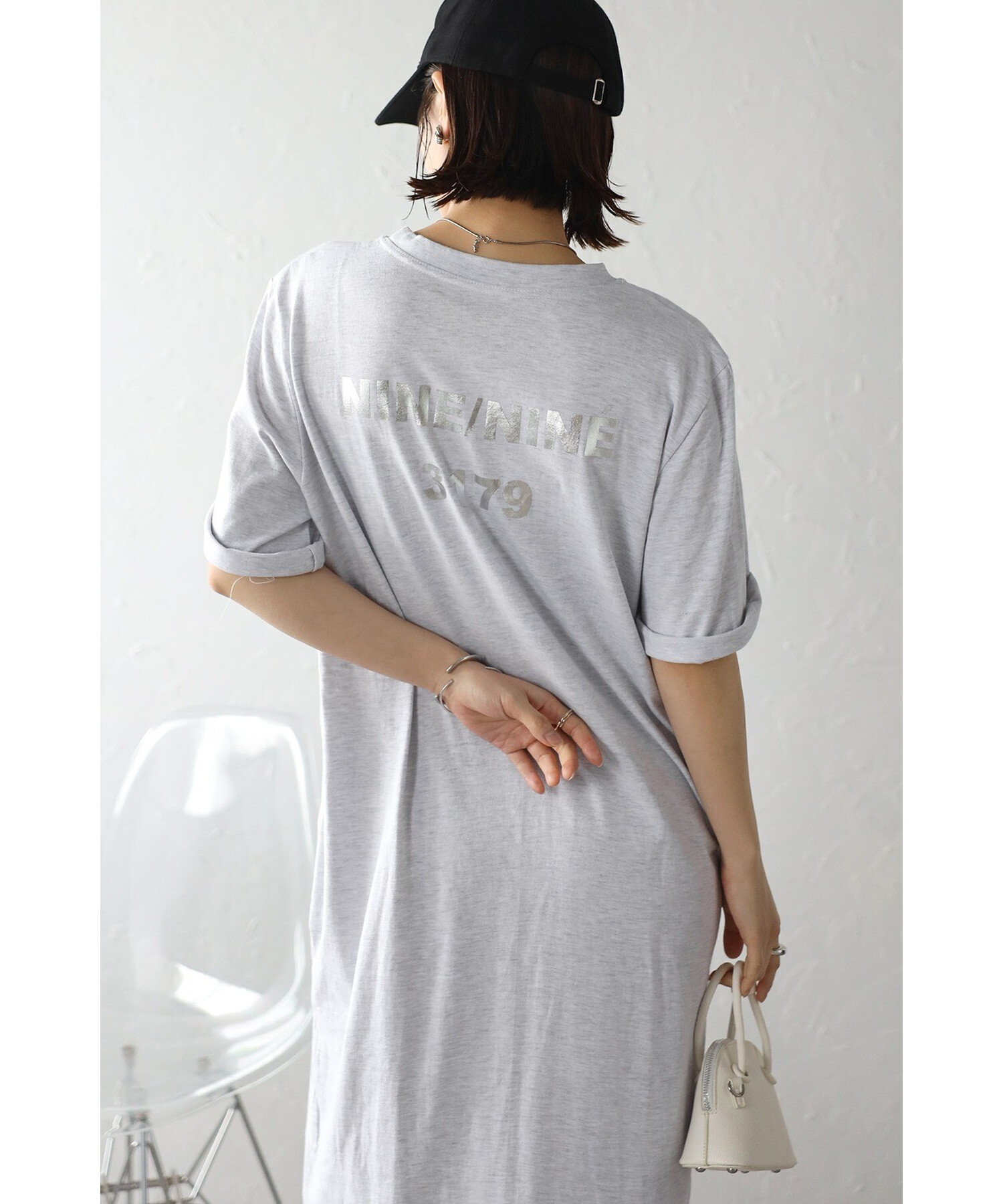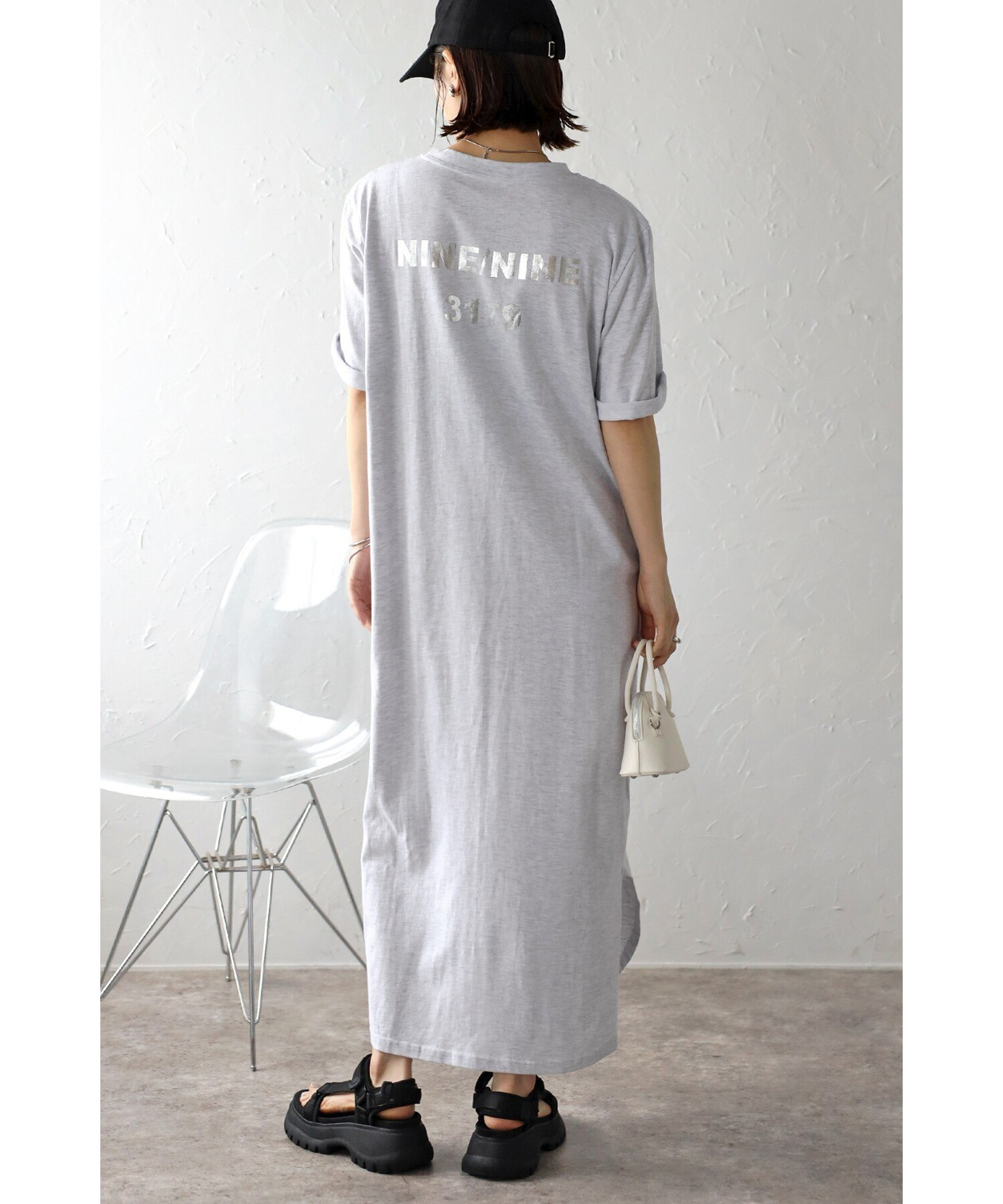 キャッチーなバックプリントが目を惹く、ロゴTシャツワンピース
