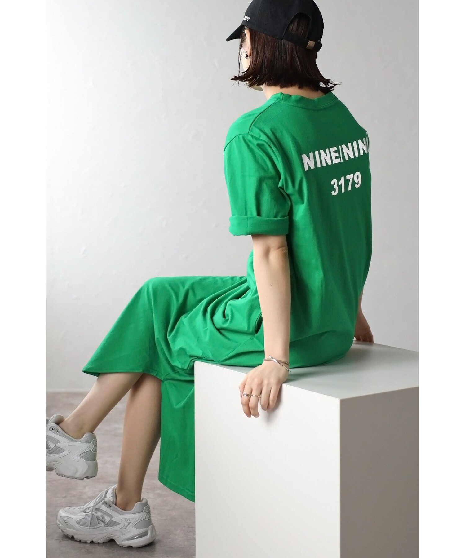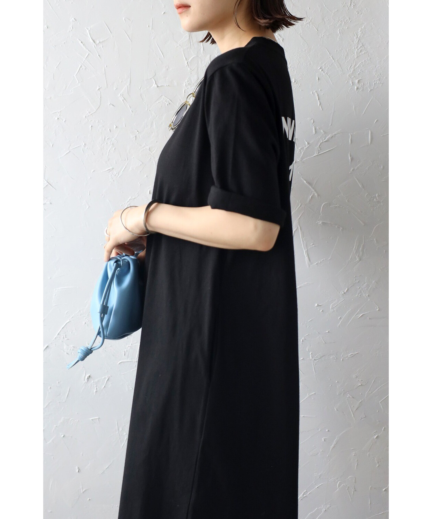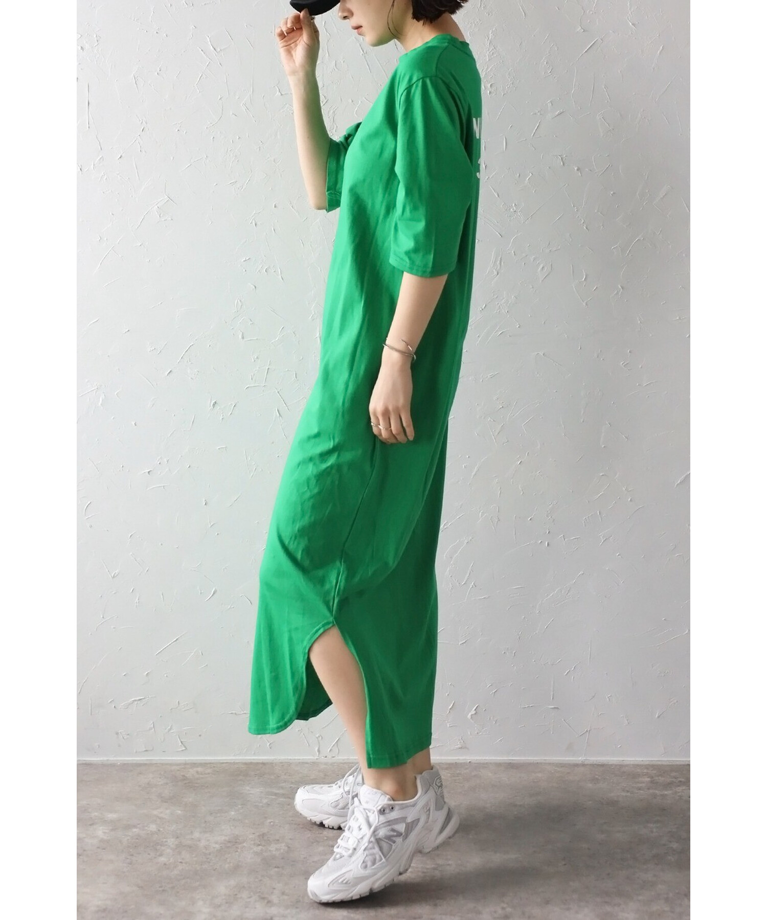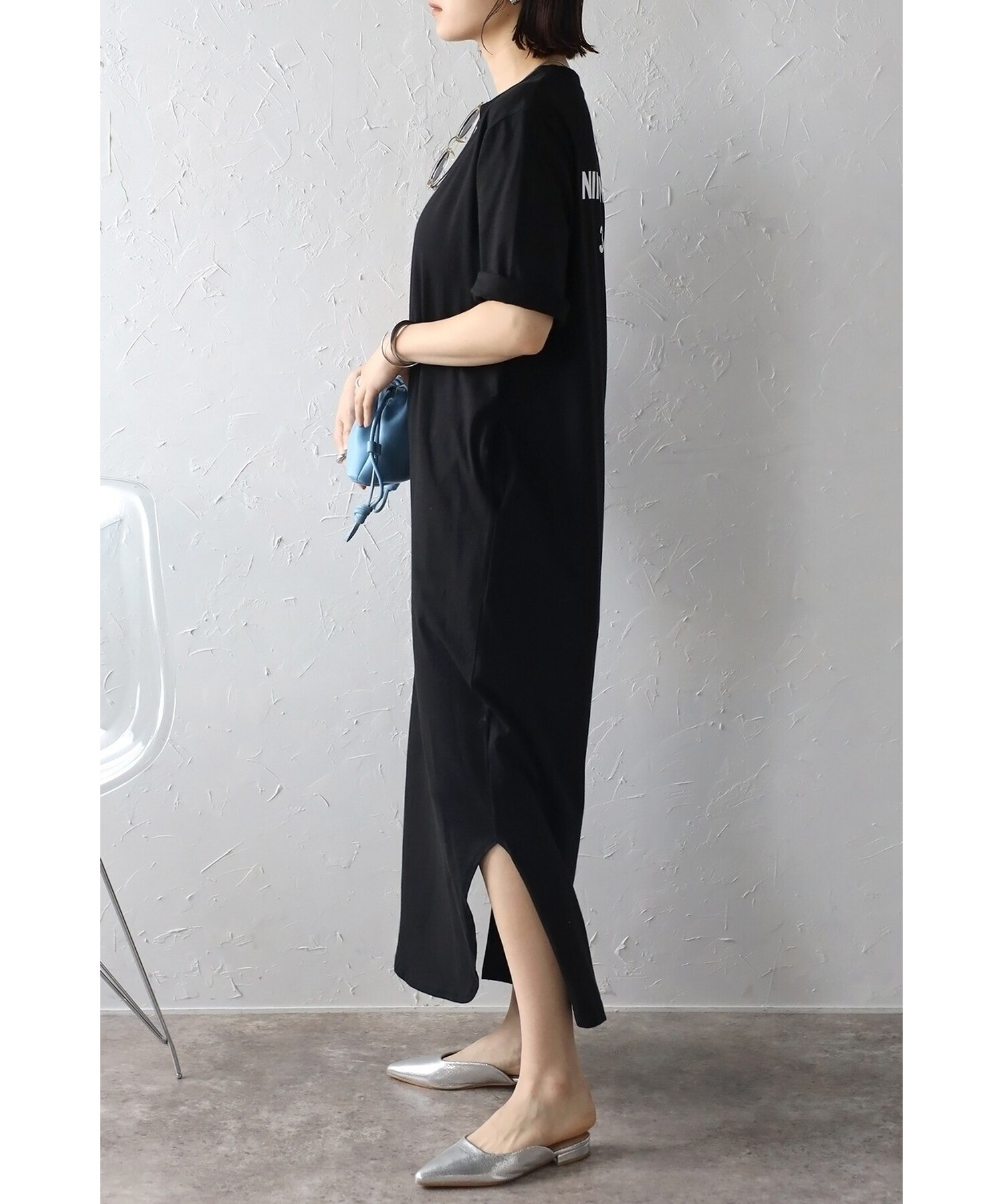 キャッチーなバックプリントが目を惹く、ロゴTシャツワンピース
