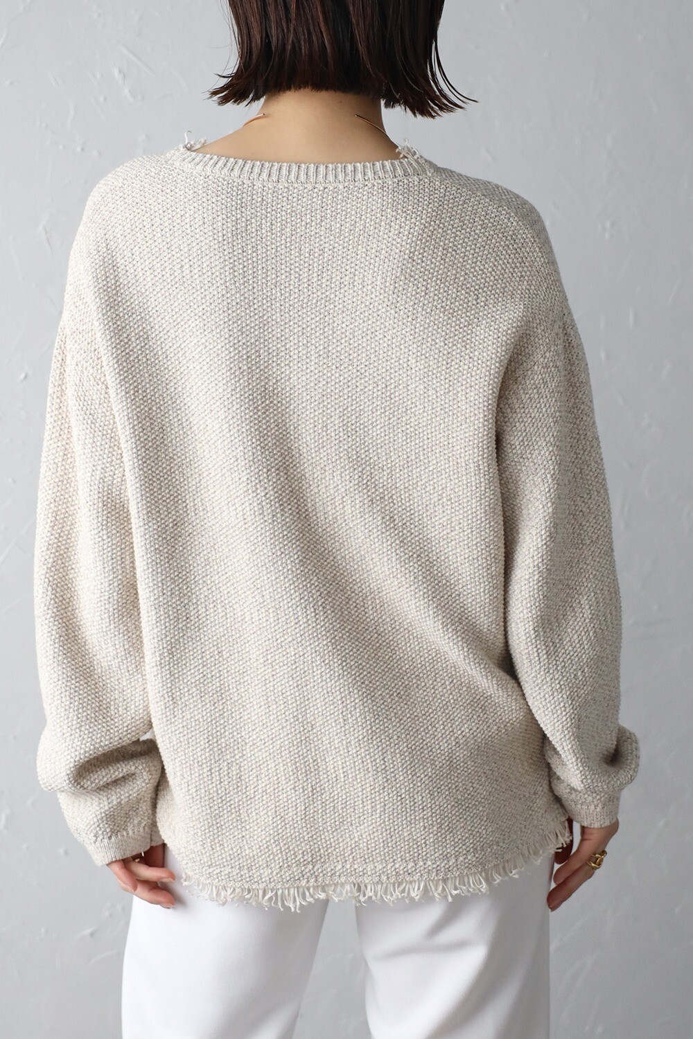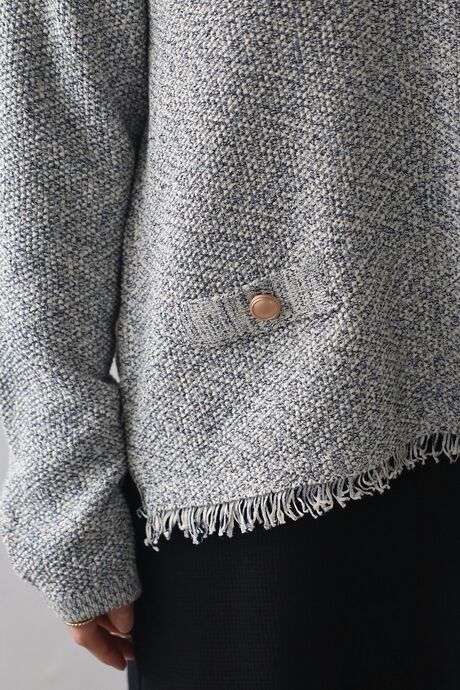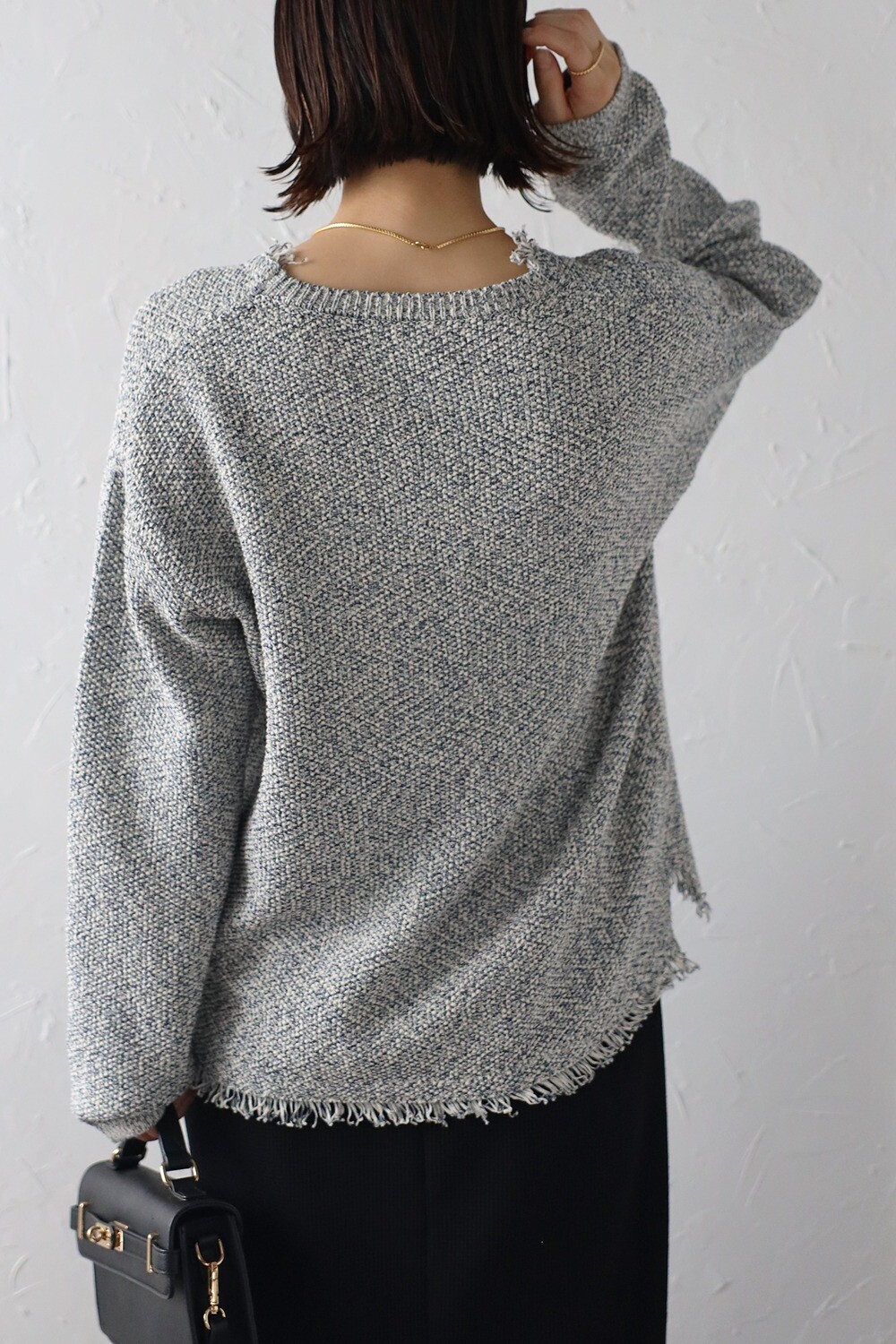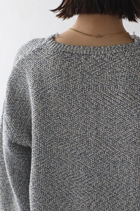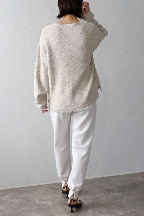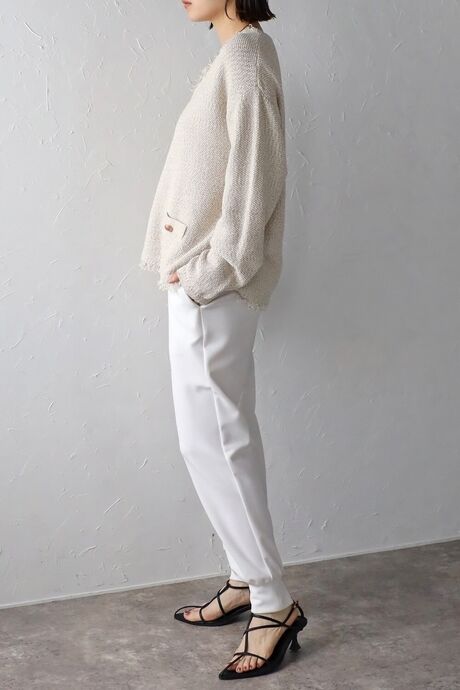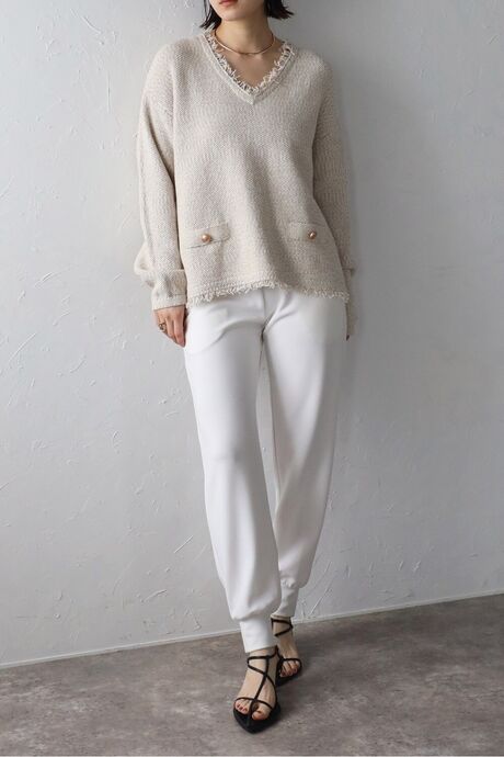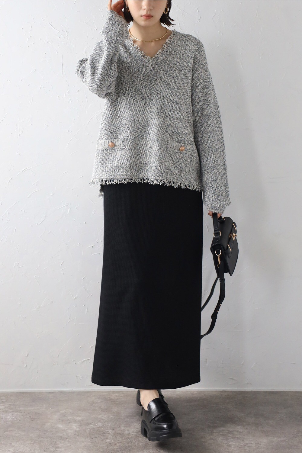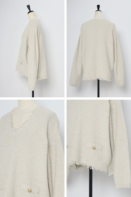 ドライタッチなサマーツイードで大人シックなスタイルに。Vネックプルオーバー