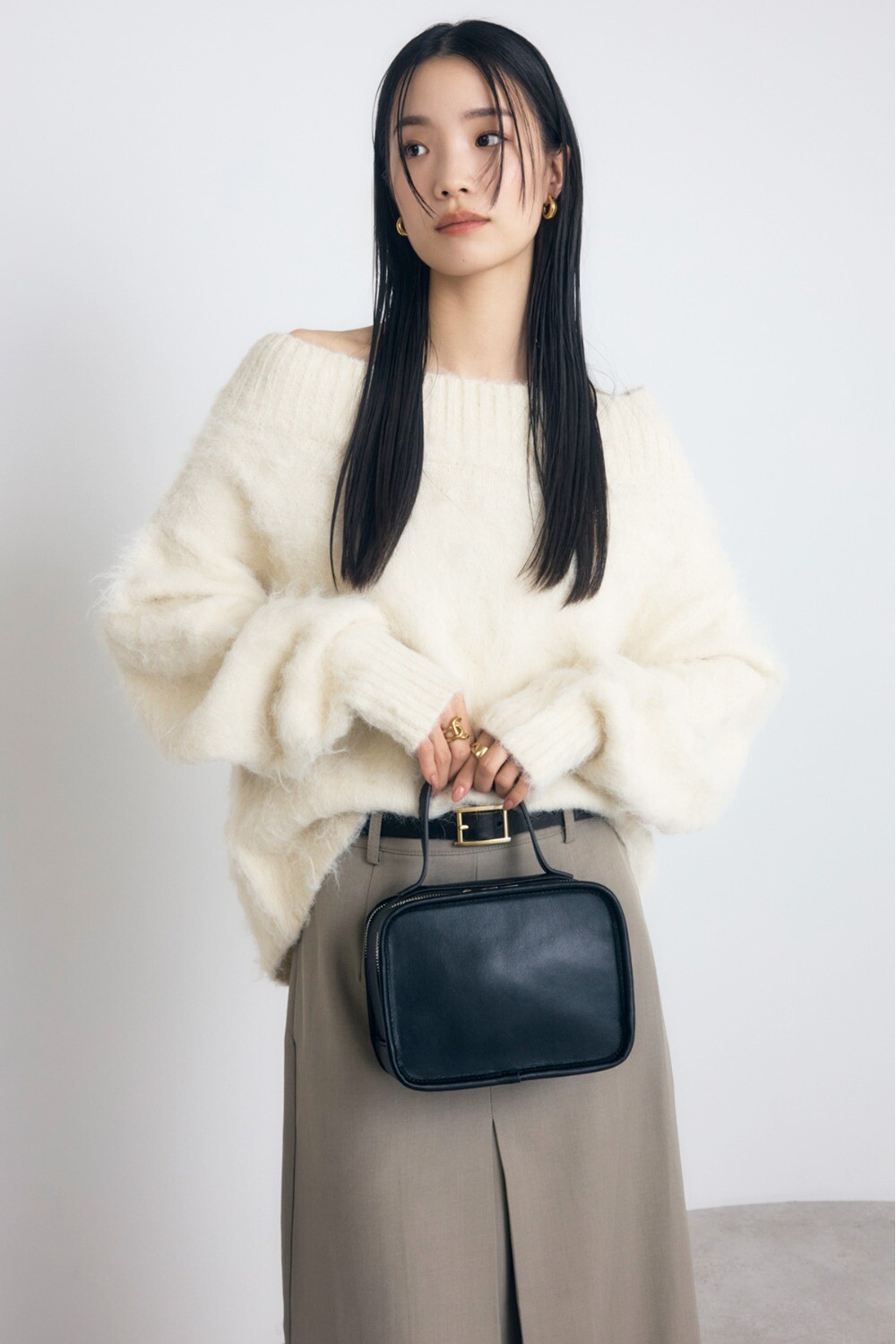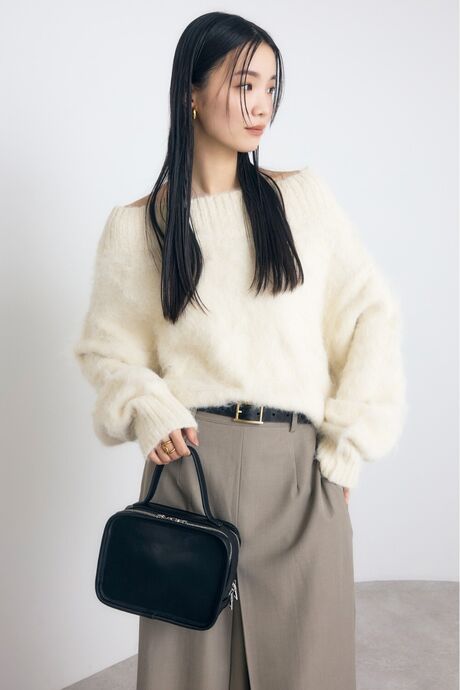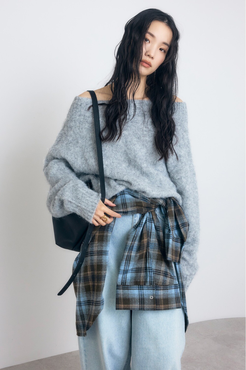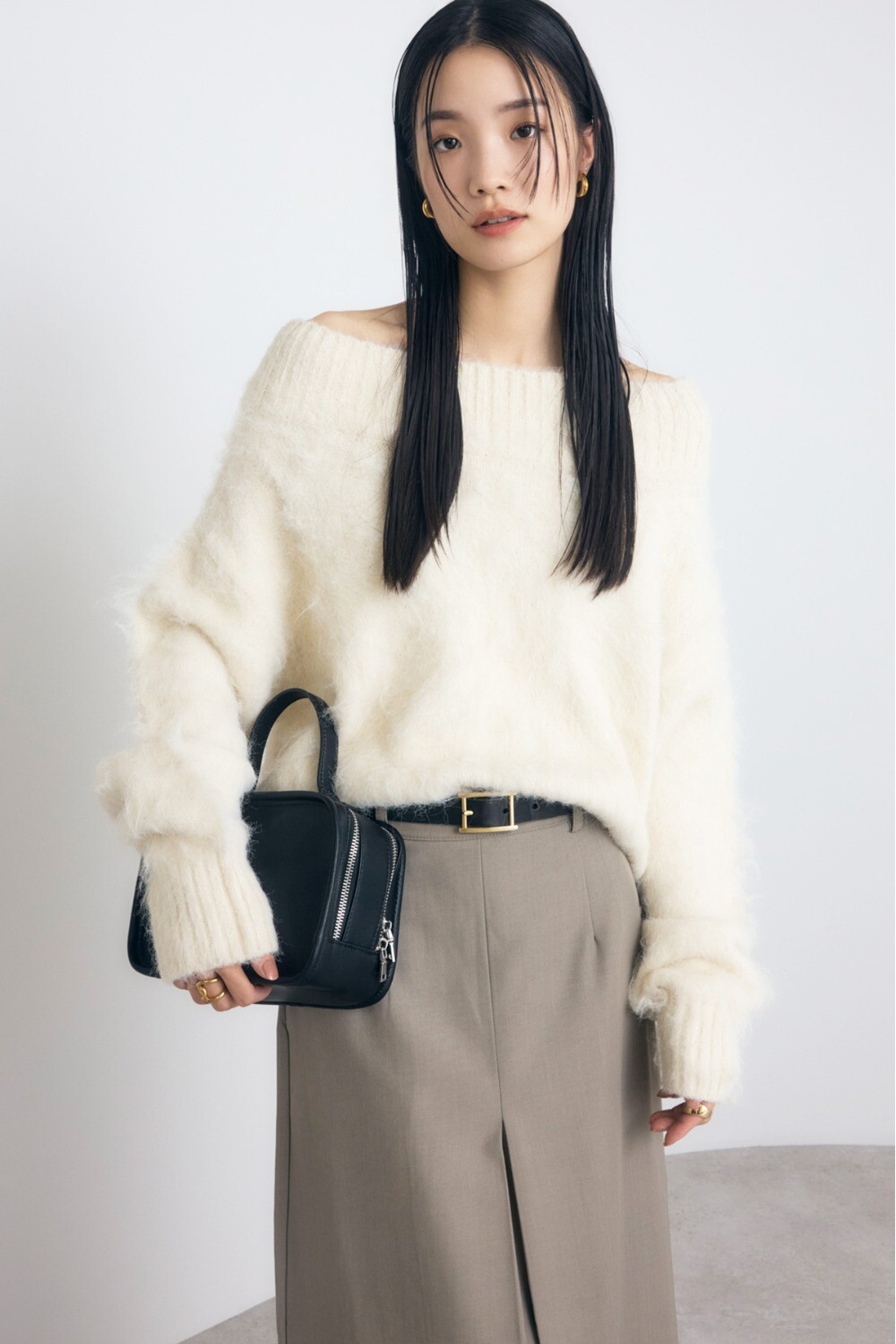 アルパカタッチで肌触りが抜群の、リラックス感のあるオフショルダーニット。