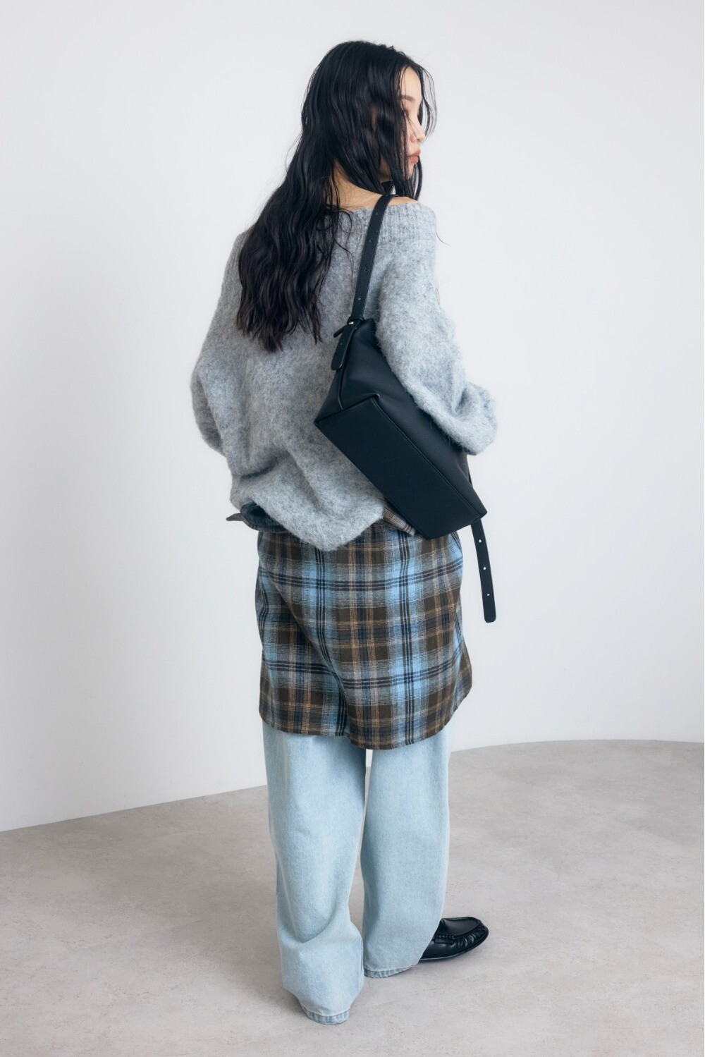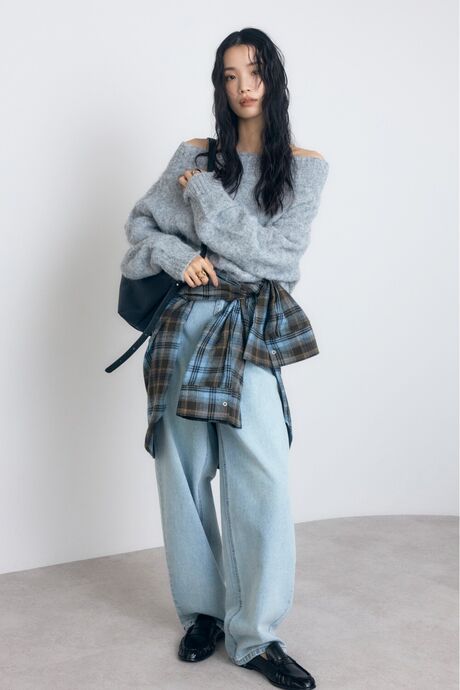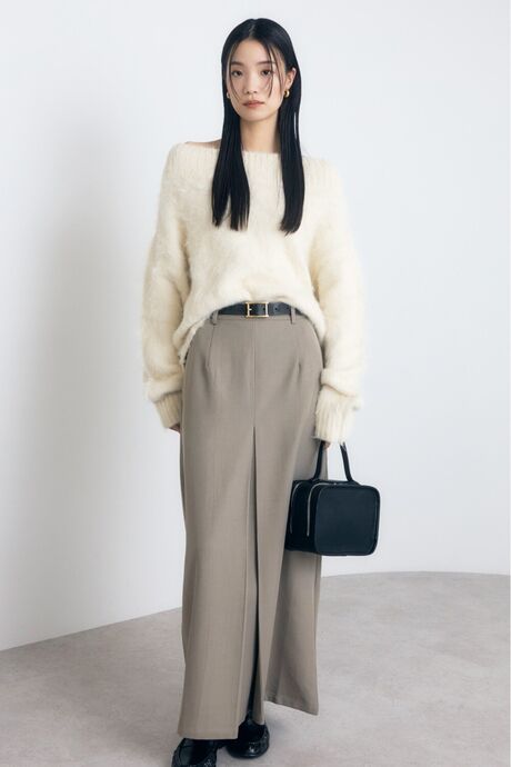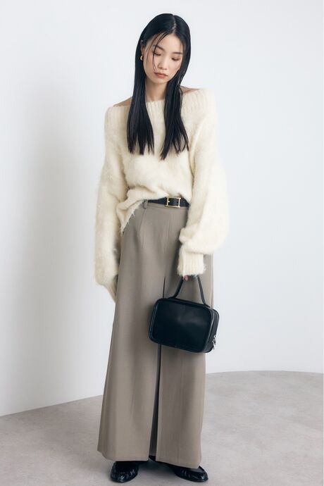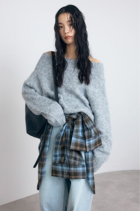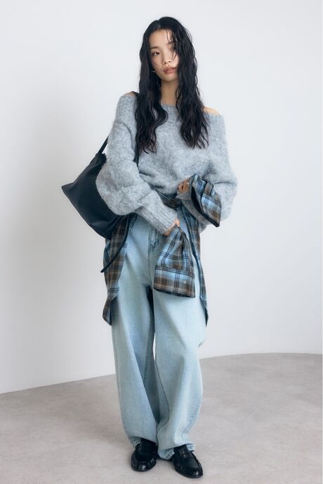 アルパカタッチで肌触りが抜群の、リラックス感のあるオフショルダーニット。