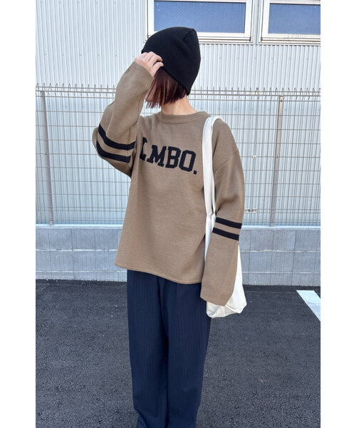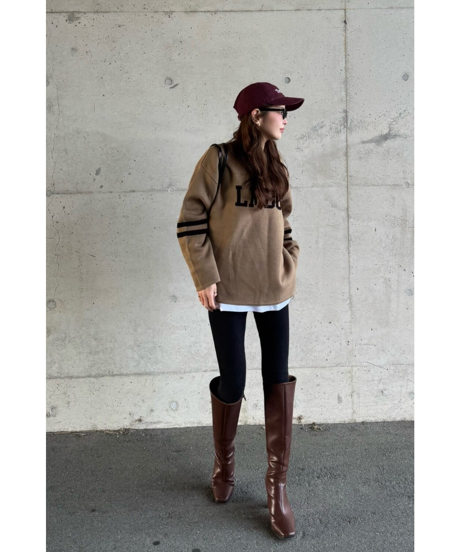 スポーティな魅力を放つ、ロゴ入り裾ラウンドニット