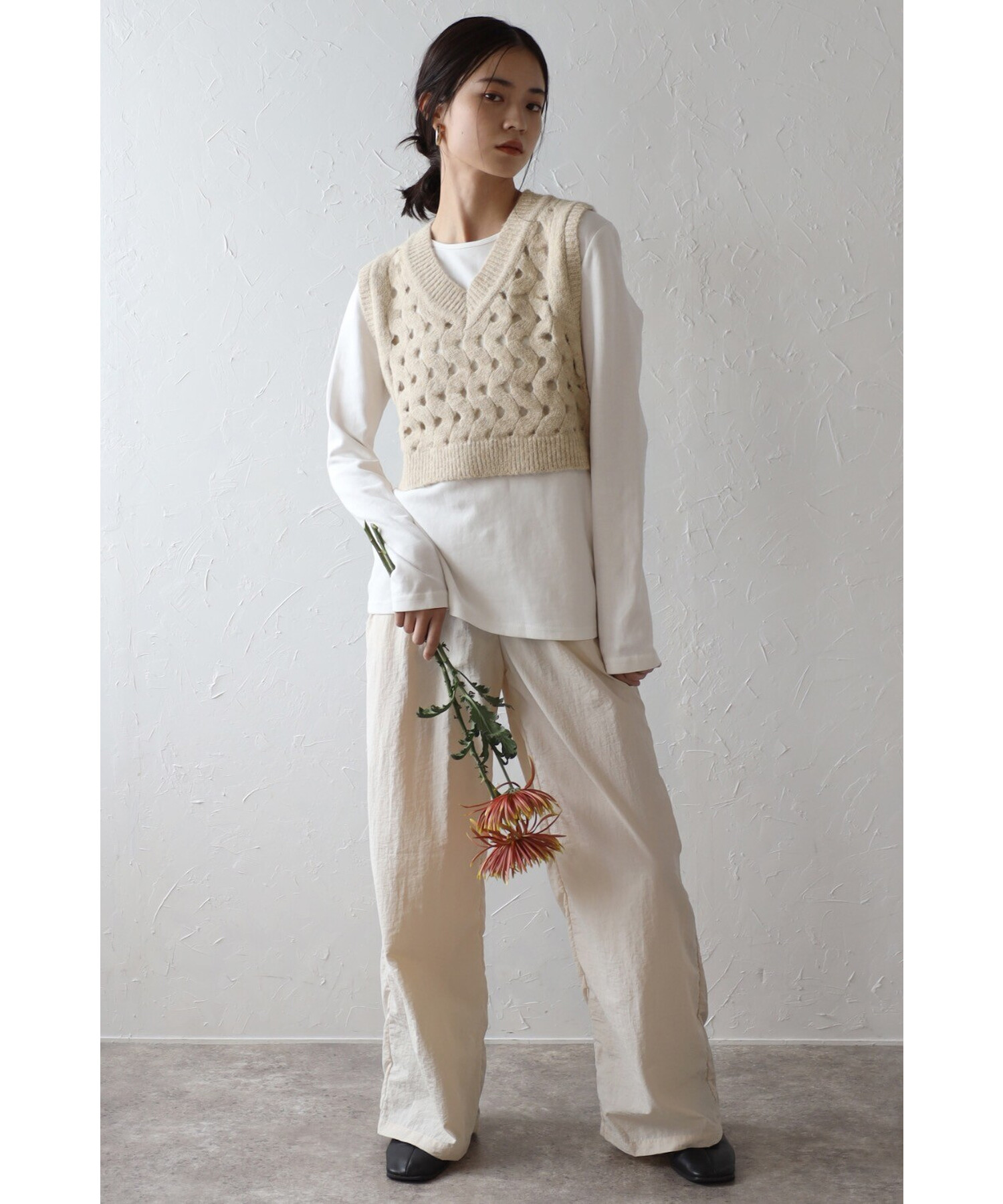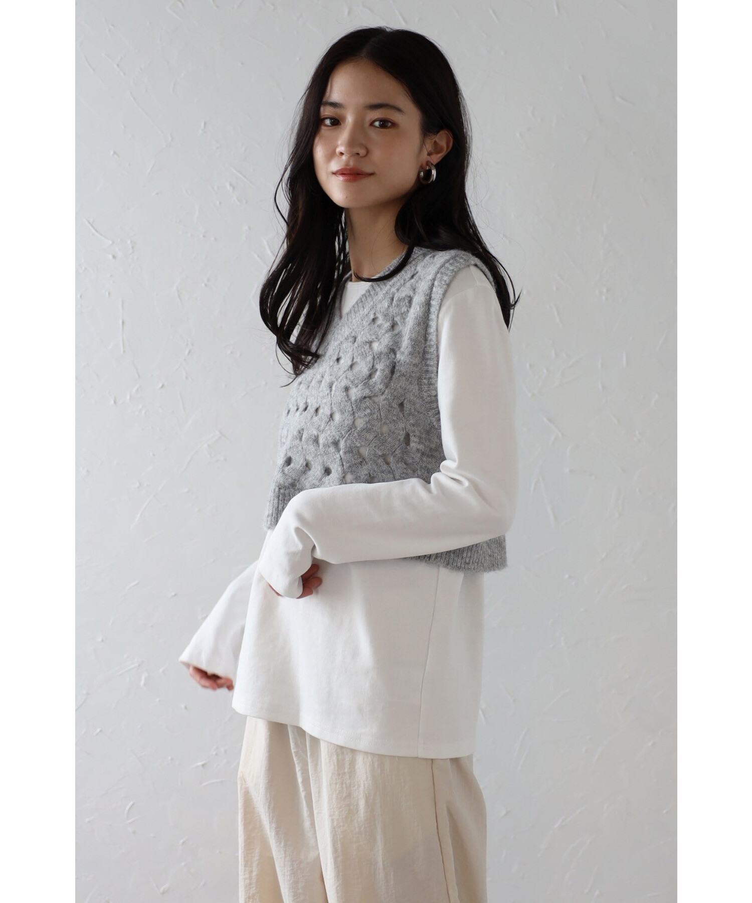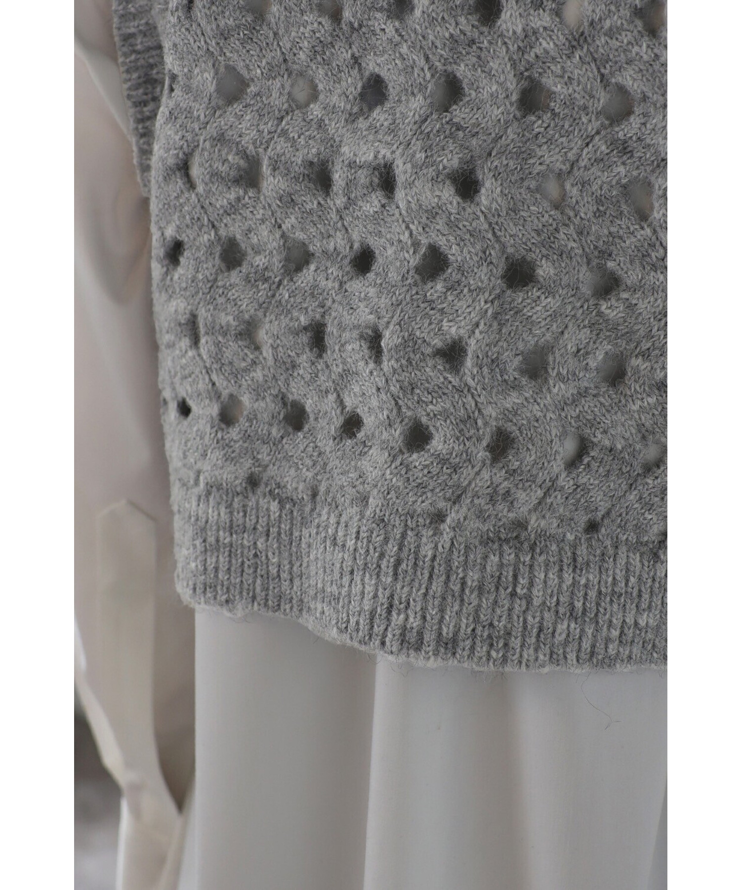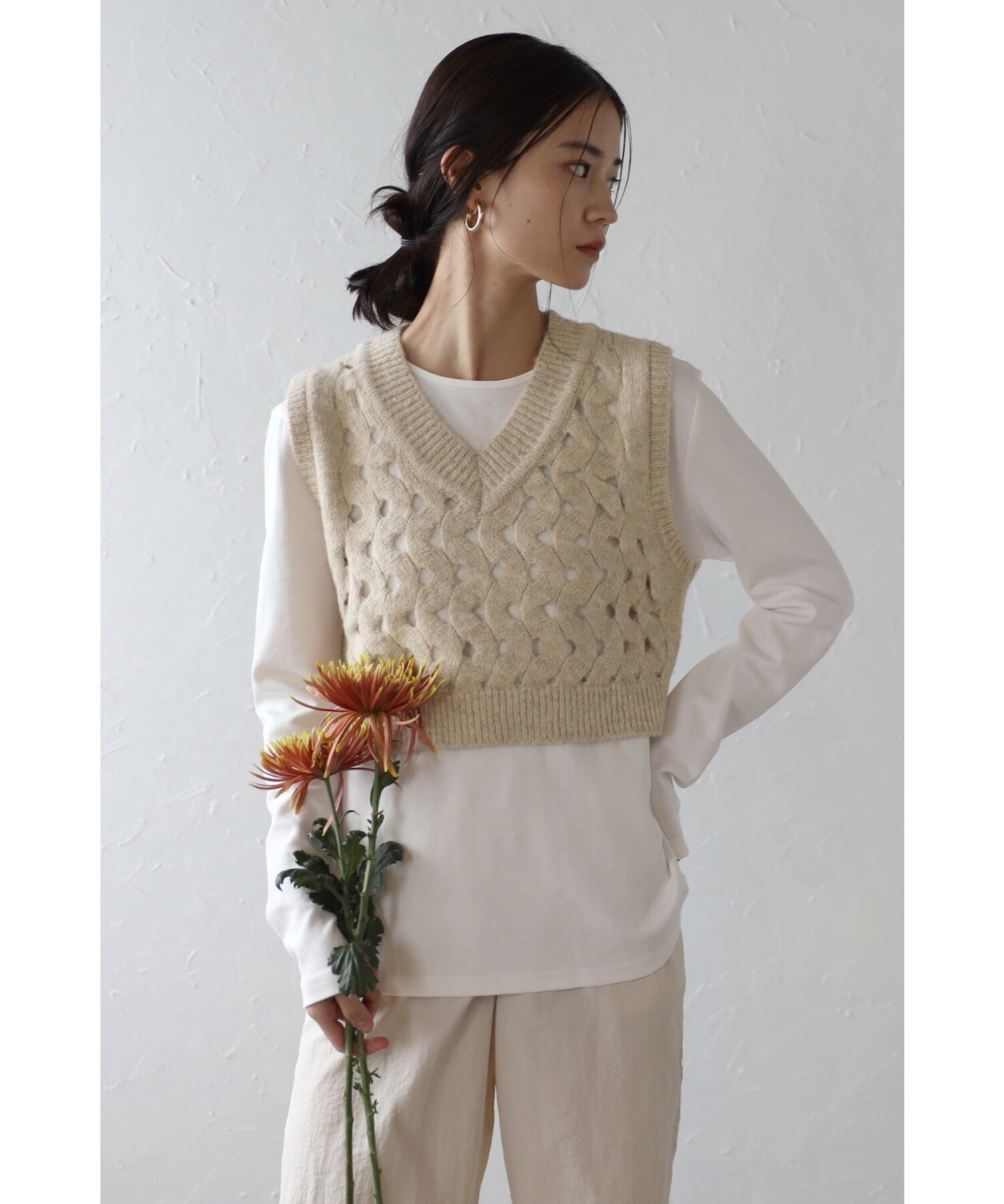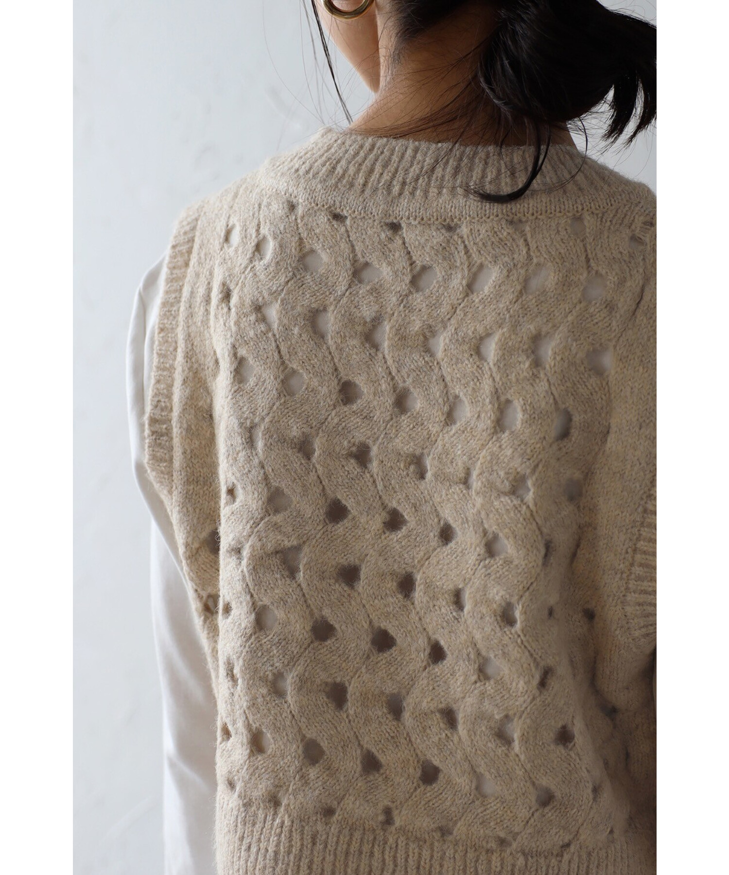 繊細なホール編みデザインが魅力のVネックニットベスト