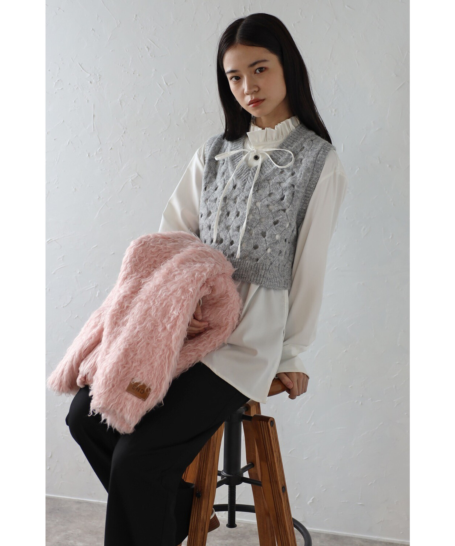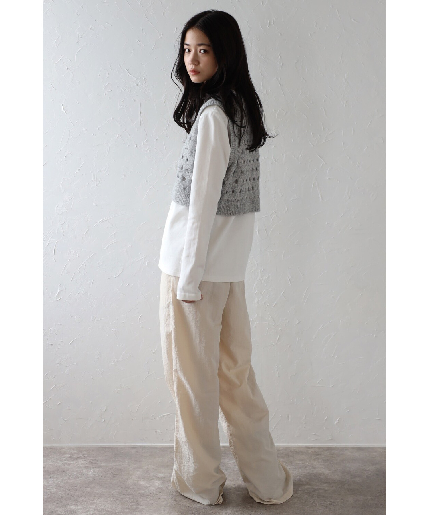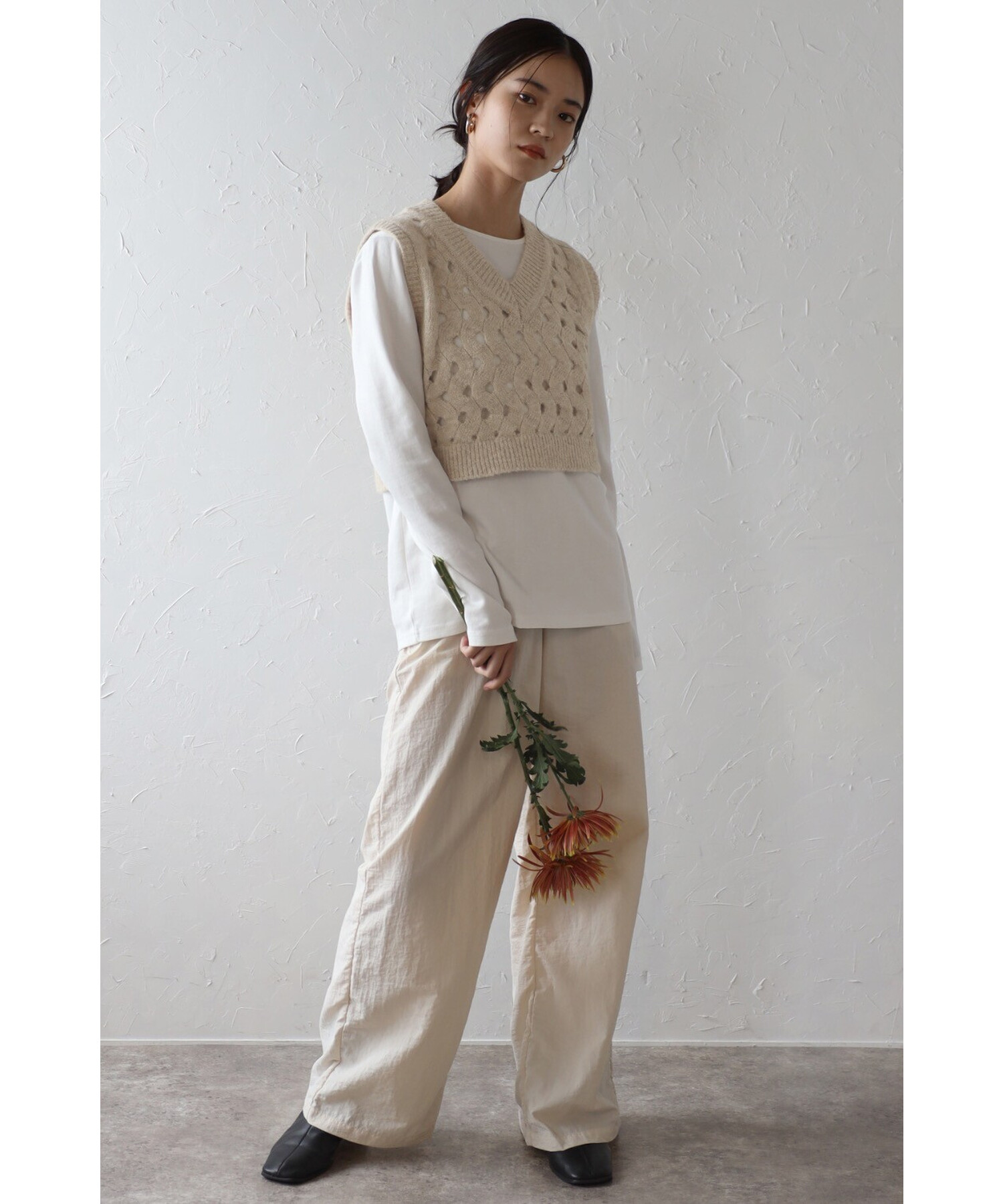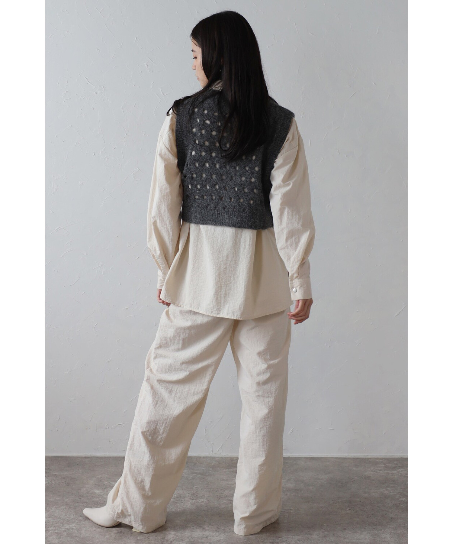 繊細なホール編みデザインが魅力のVネックニットベスト