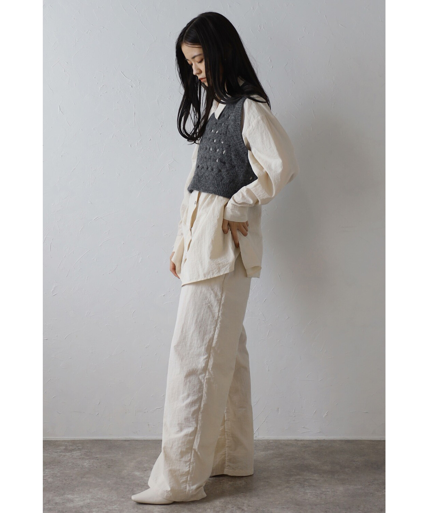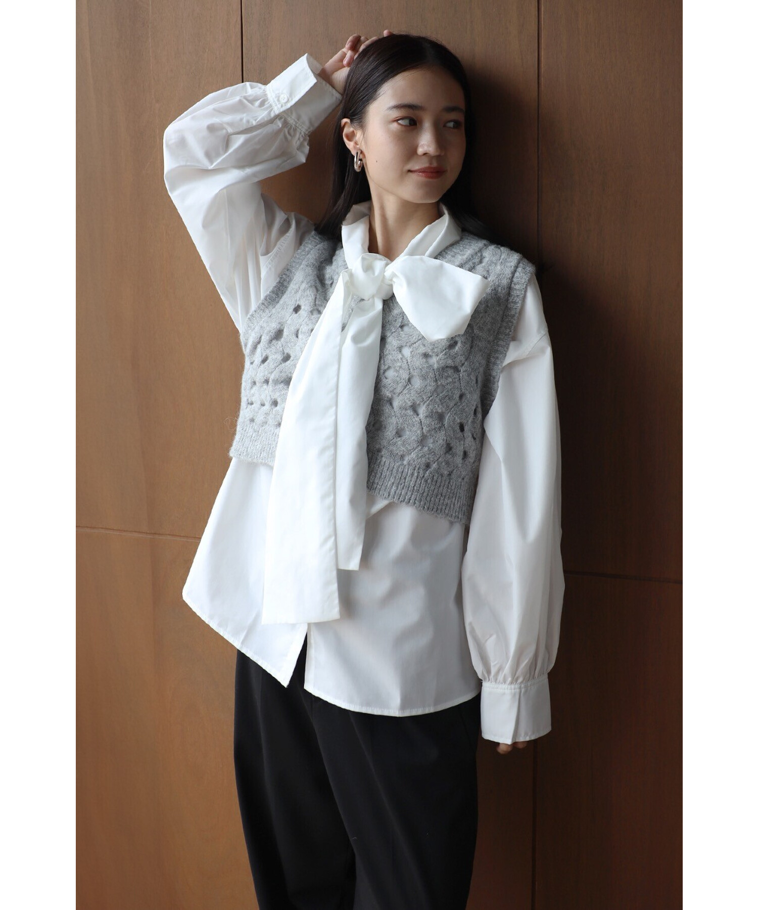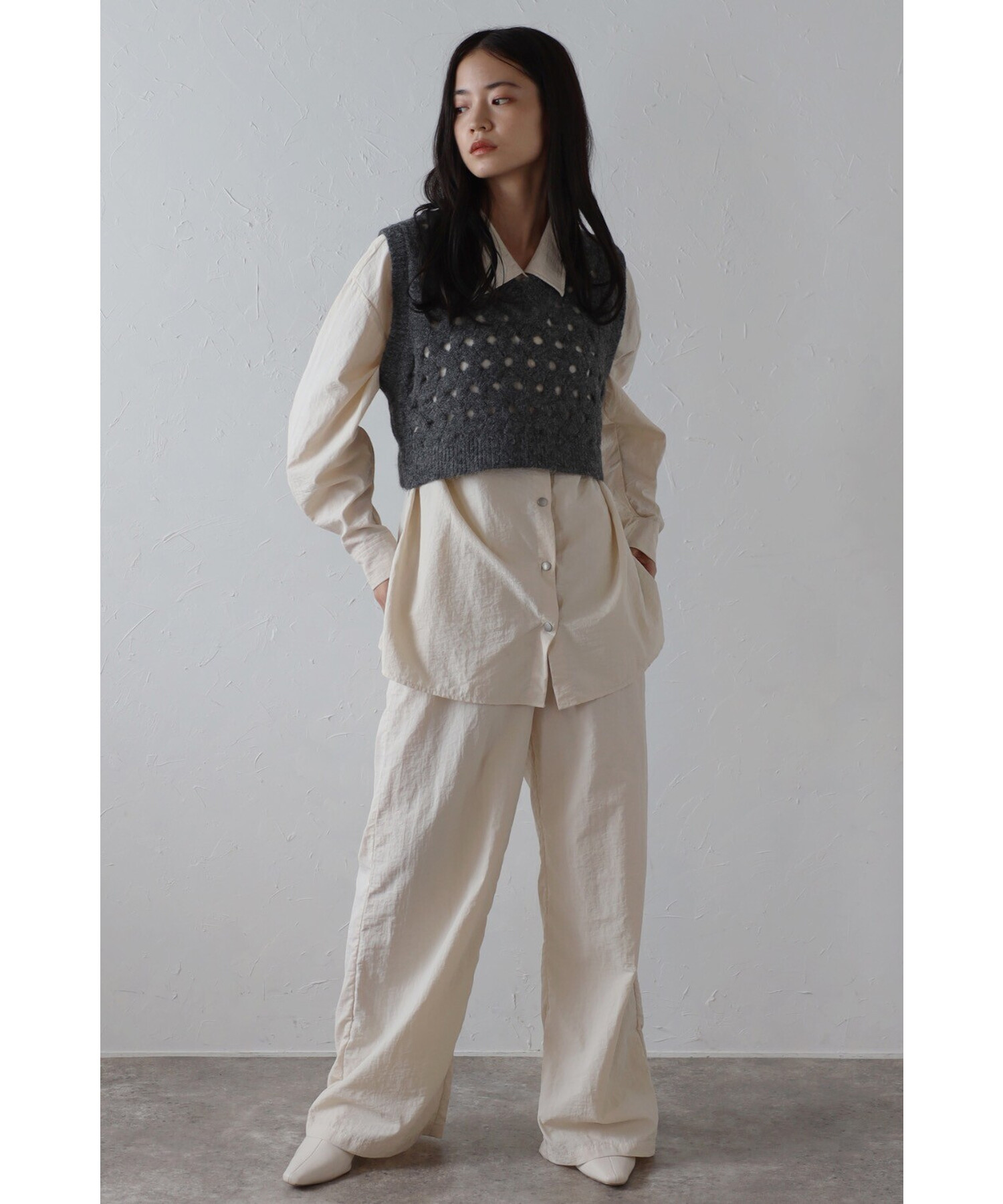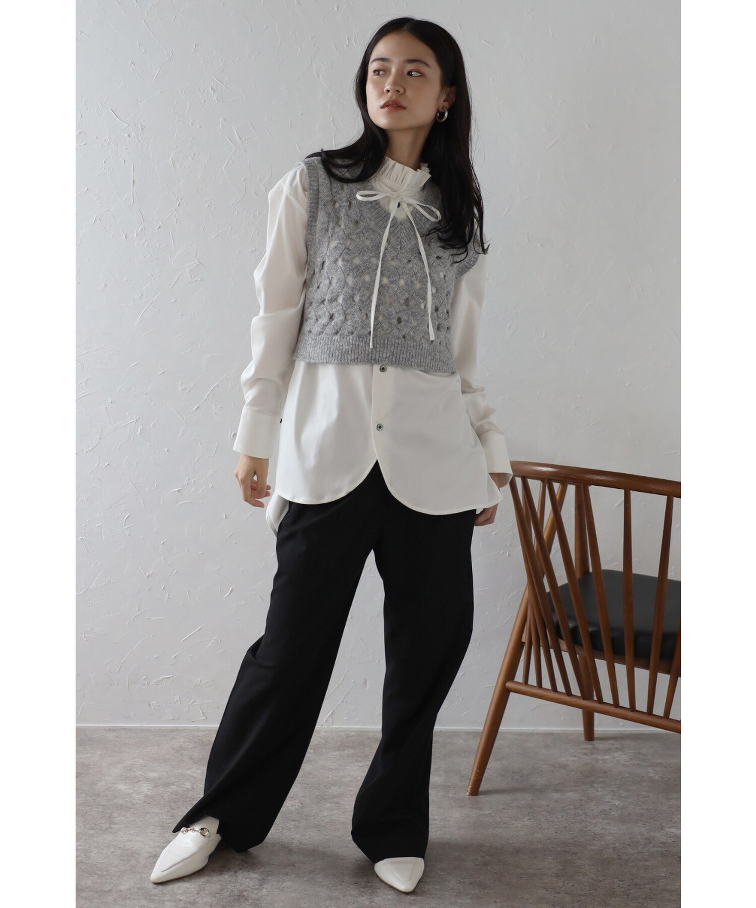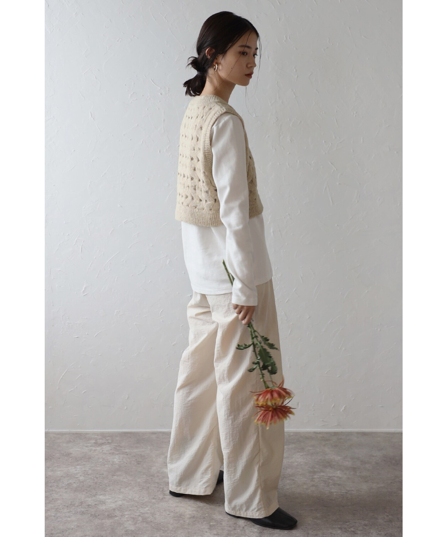 繊細なホール編みデザインが魅力のVネックニットベスト