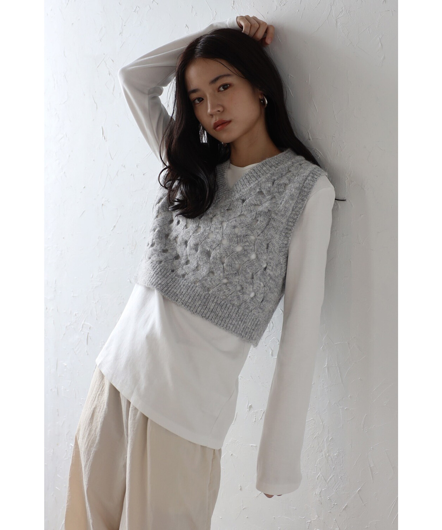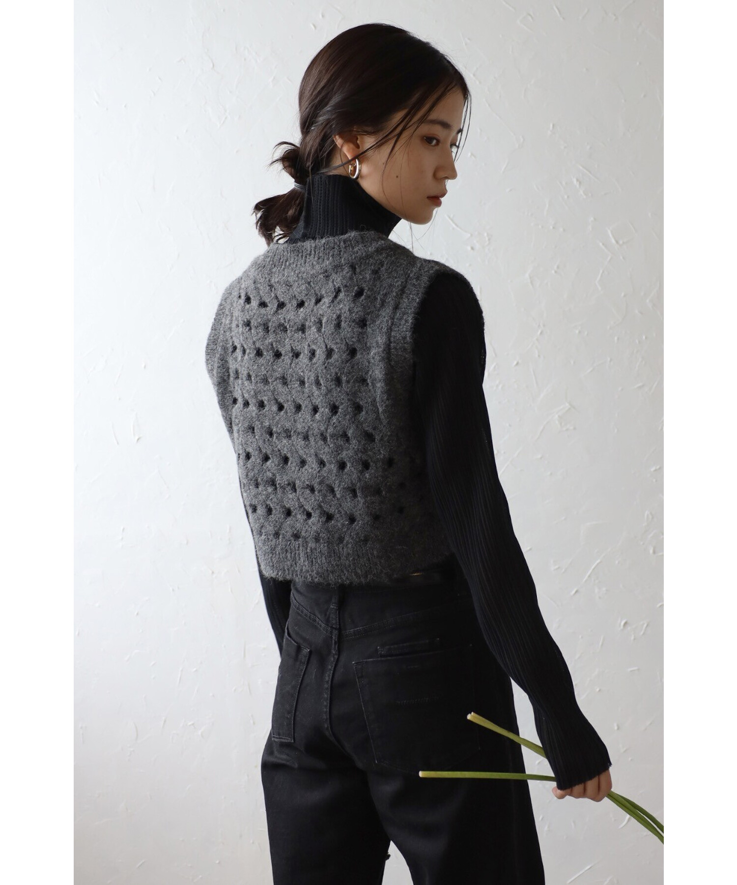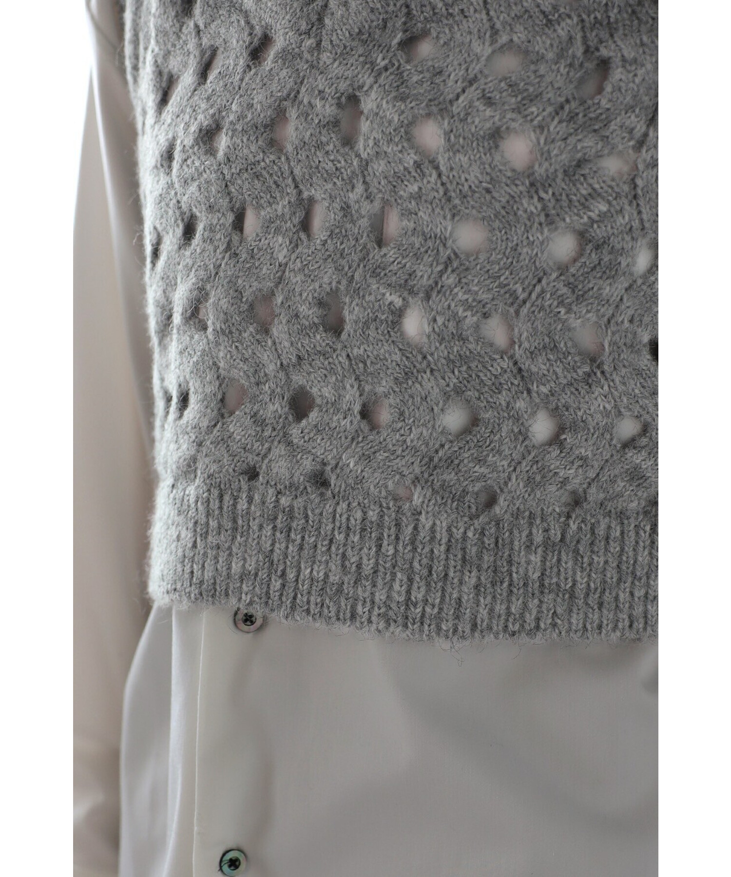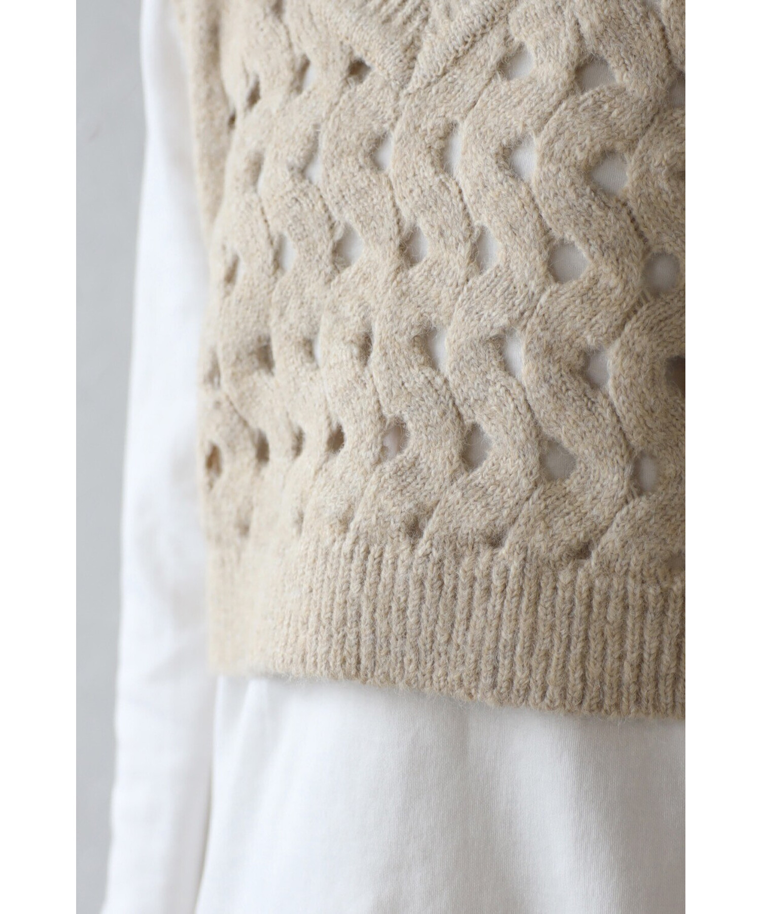 独特なホール編みパターンが目を惹くスタイリッシュなVネックベスト。