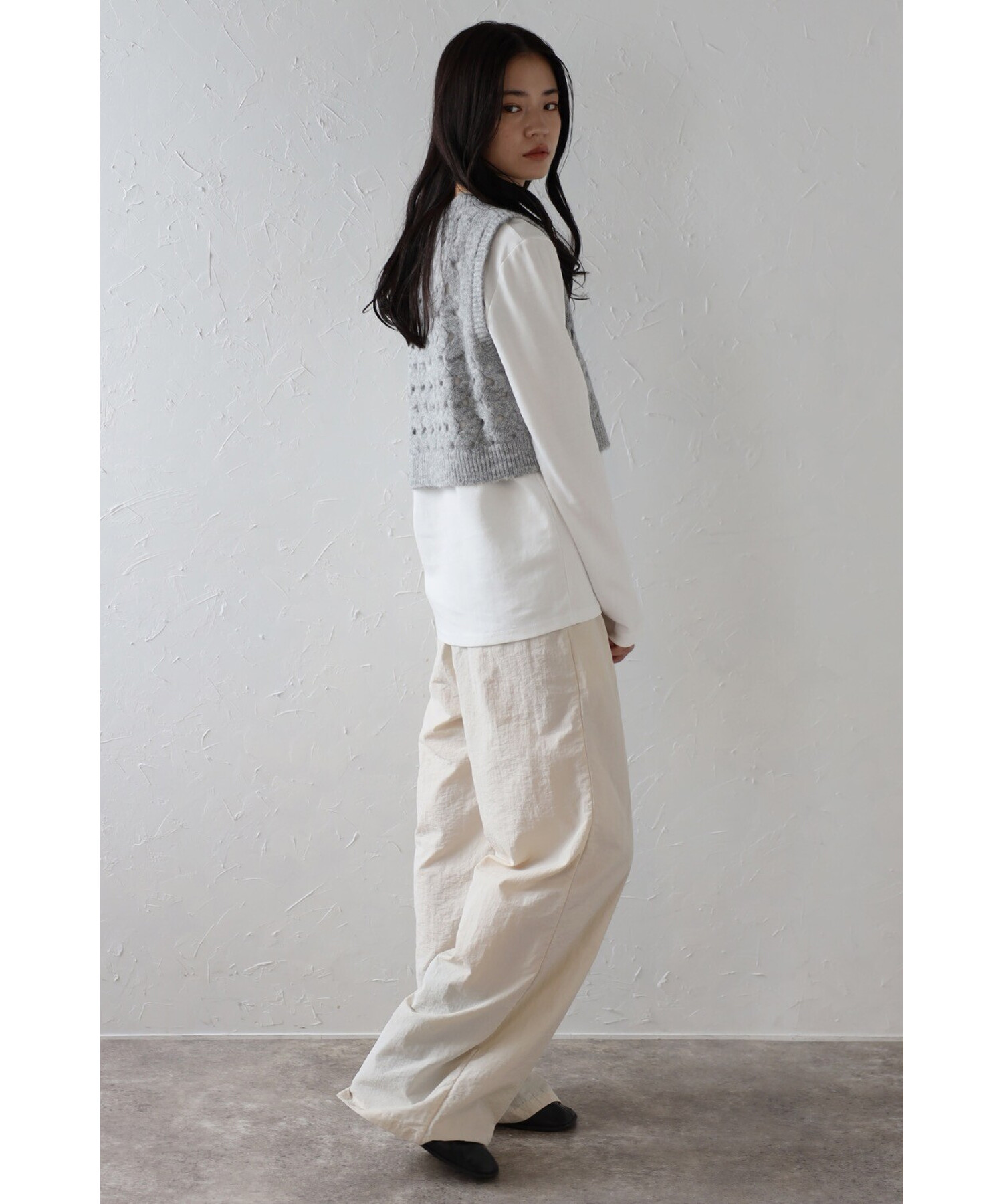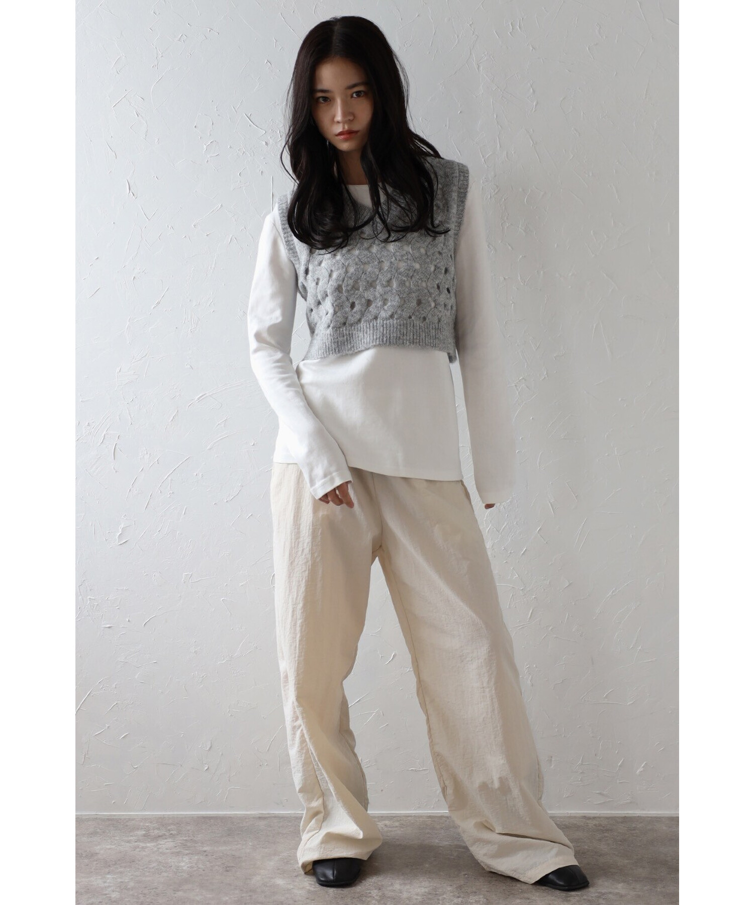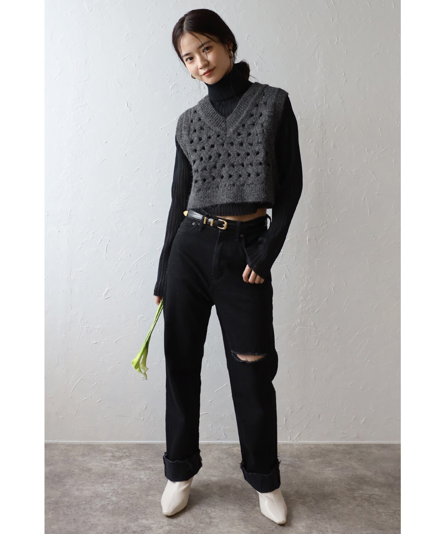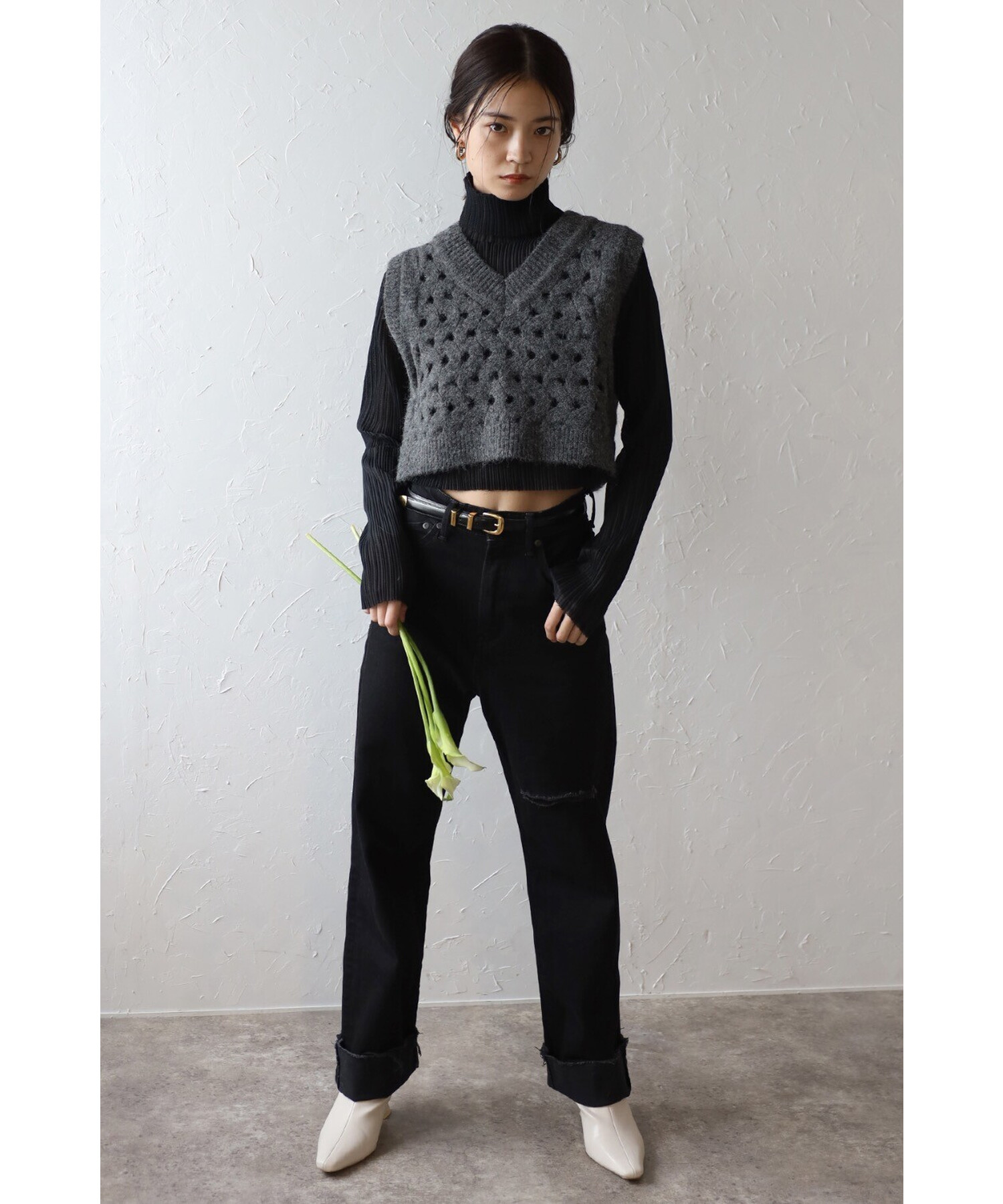 独特なホール編みパターンが目を惹くスタイリッシュなVネックベスト。