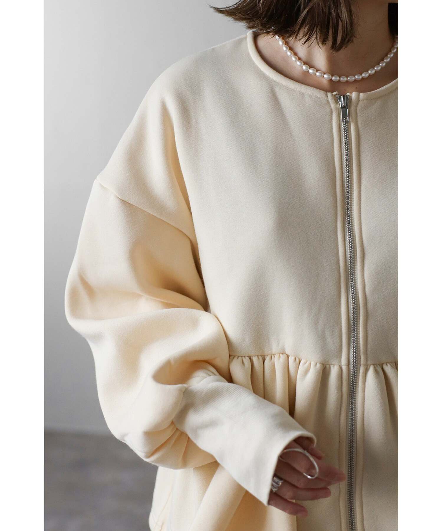 大人かわいいペプラムデザインのアンチピリング加工スウェット