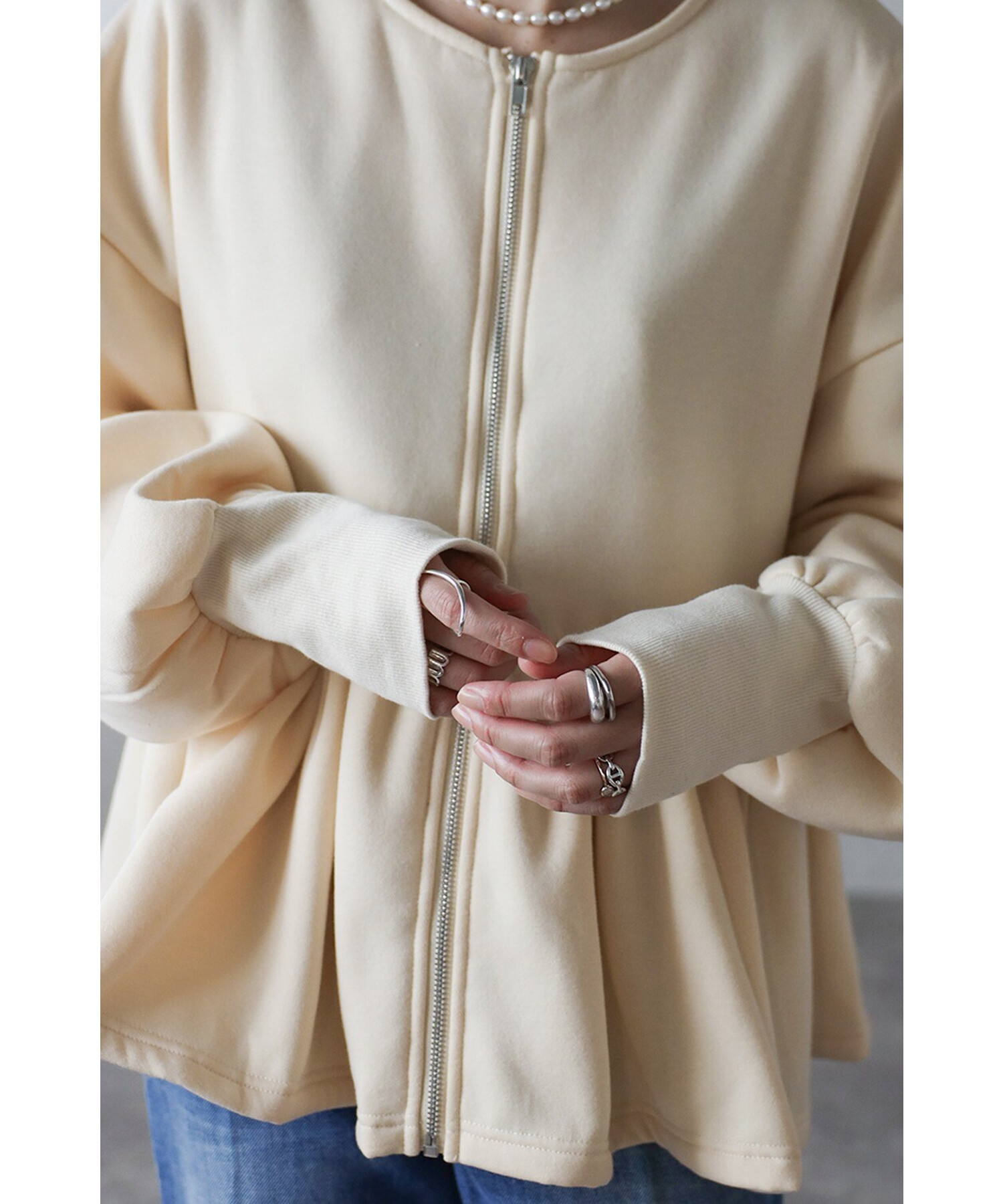 開閉が簡単なフロントジップ仕様で、さっと羽織れる便利な一枚です。