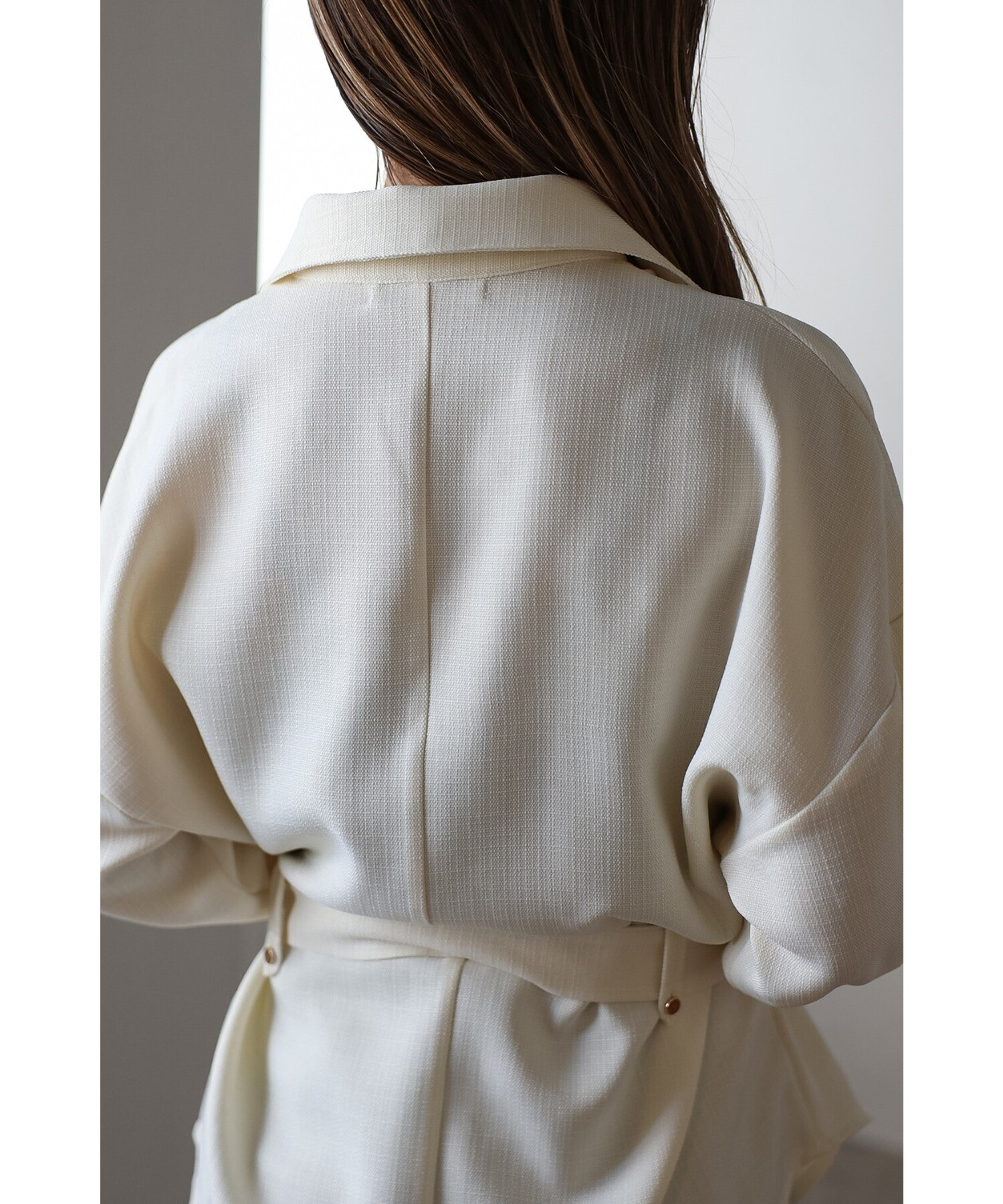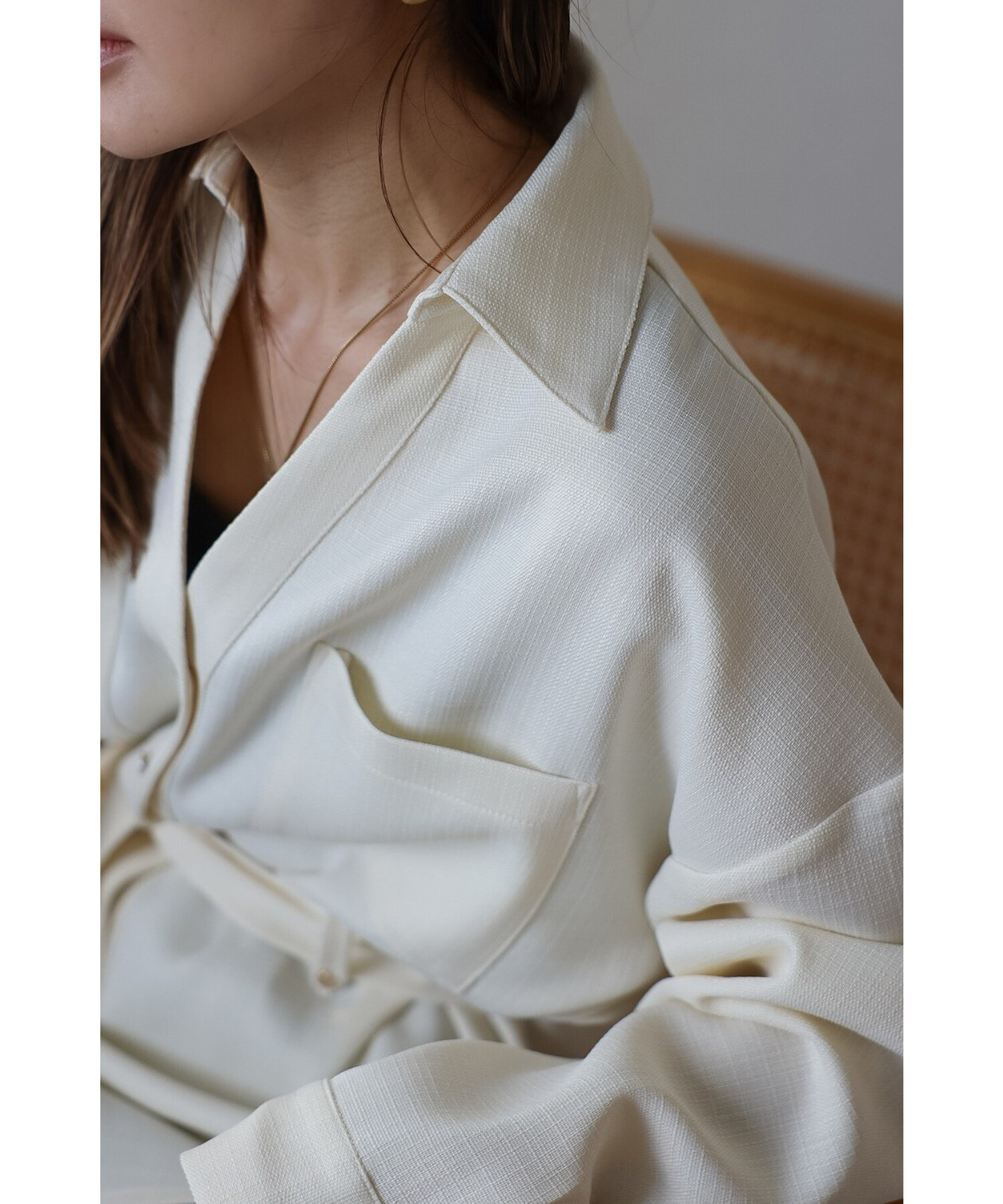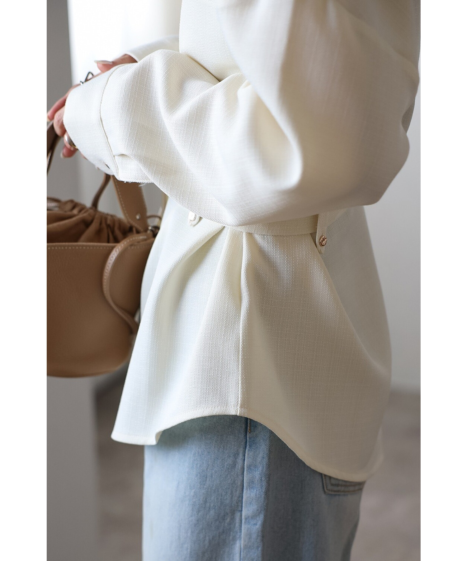 落ち着いたライトツイード素材で仕立てたベルト付きシャツ。