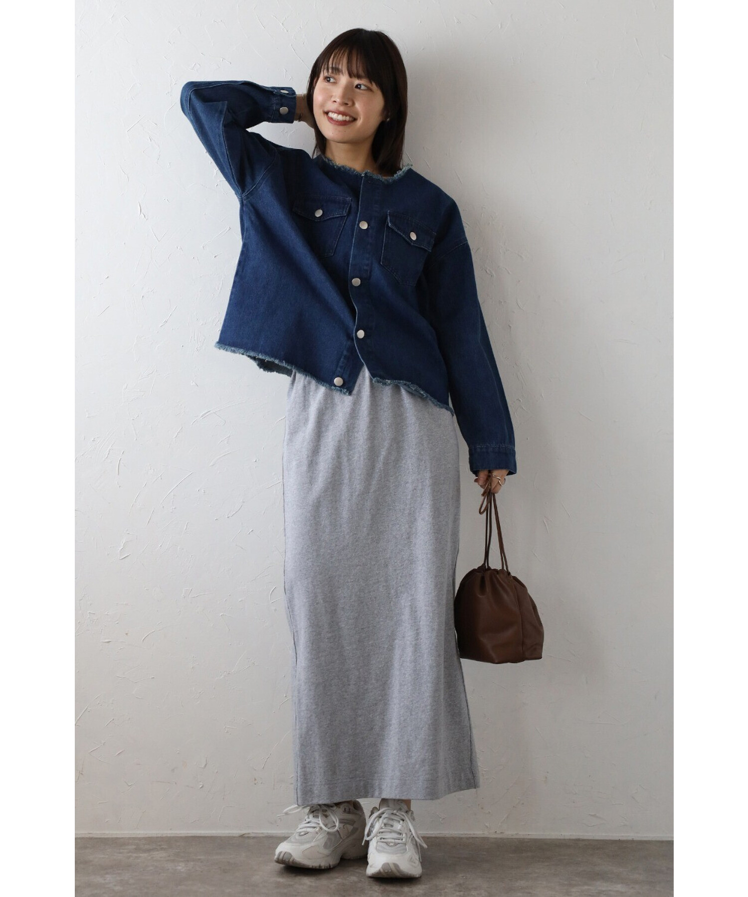 ※同素材のサイドフリンジデニムスカートと合わせていただくと、セットアップコーデがお楽しみいただけます。