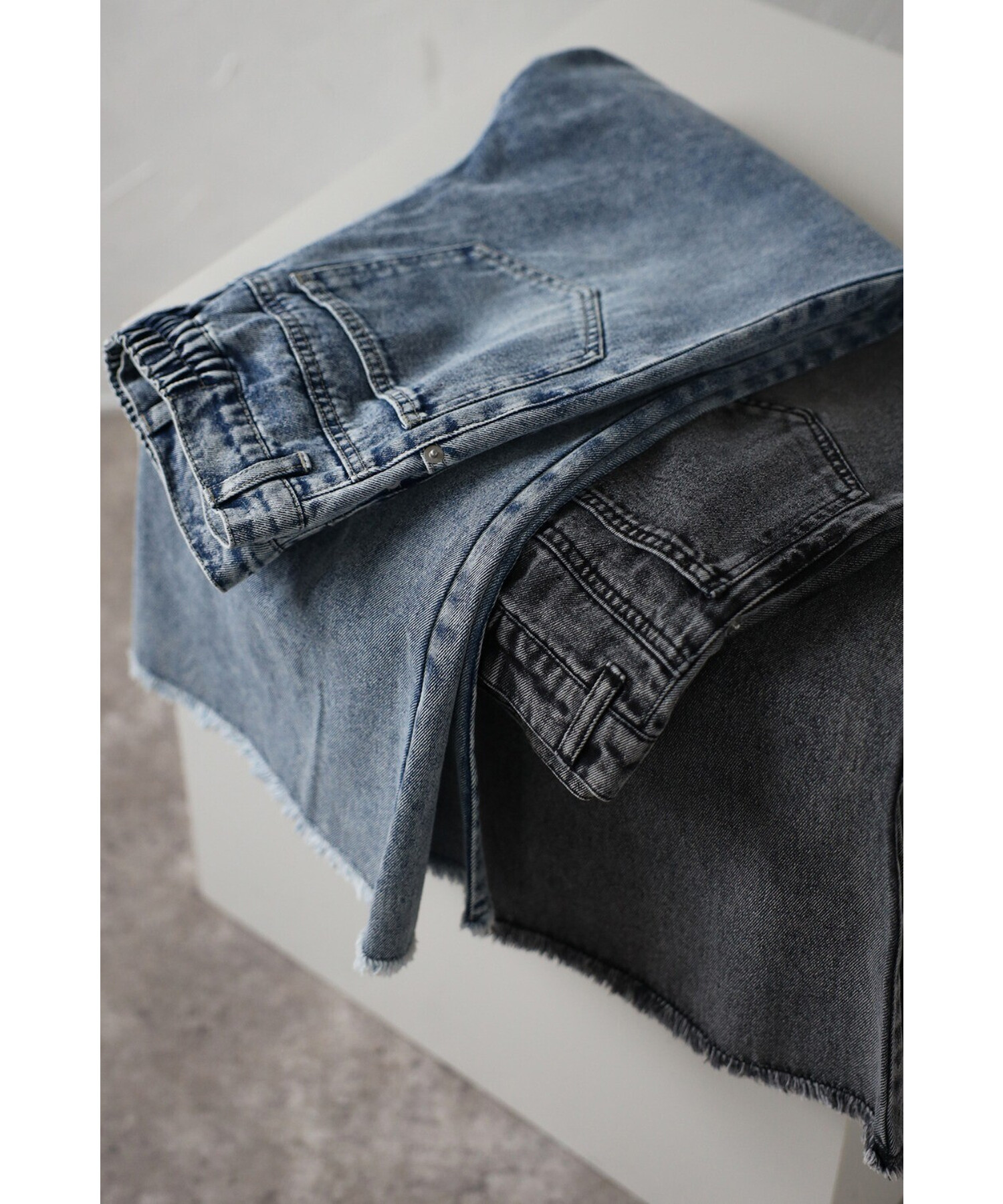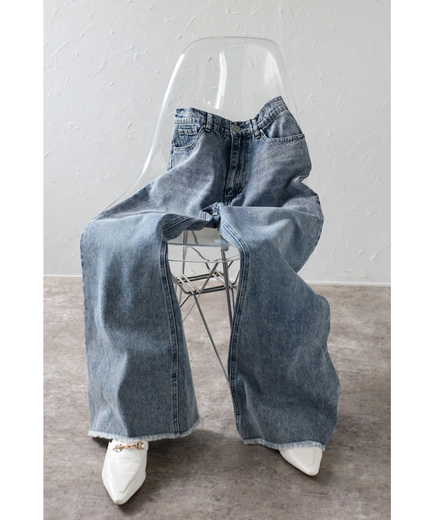 裾のフリンジ加工が程よいラフさをプラスするフレアデニム。