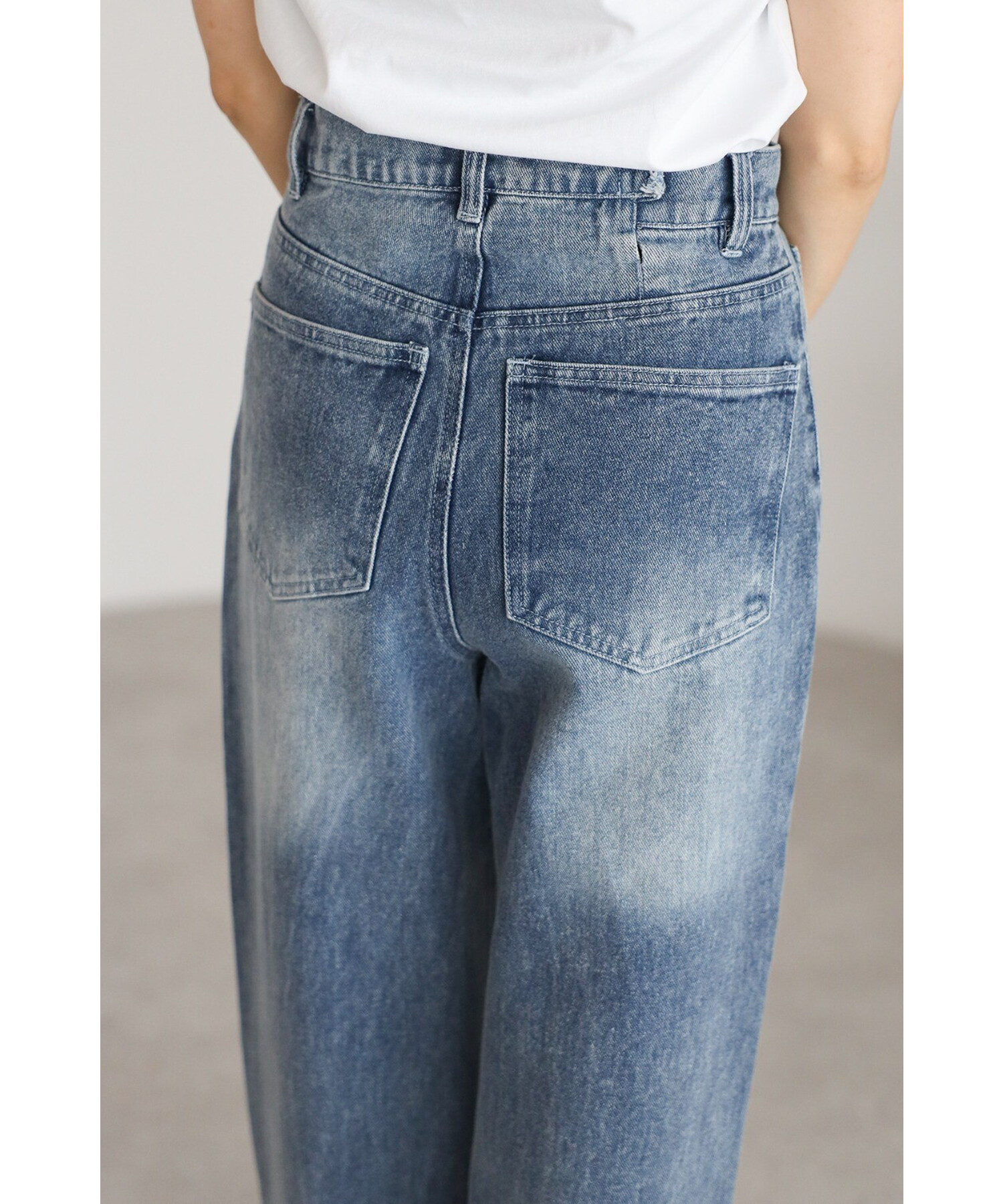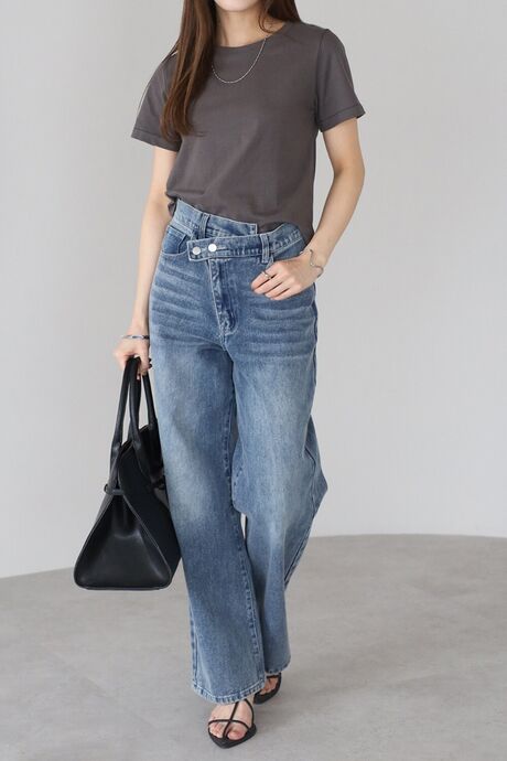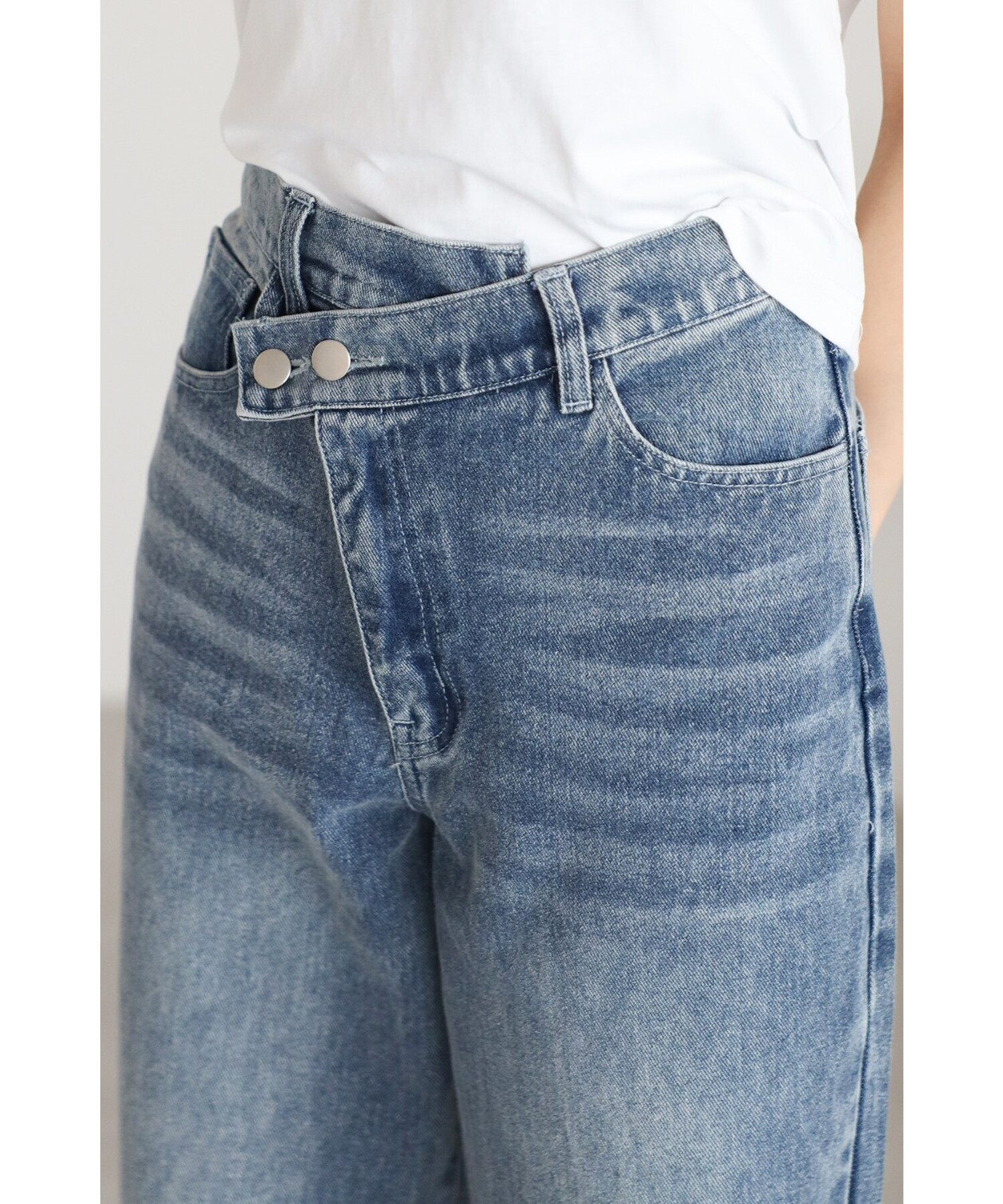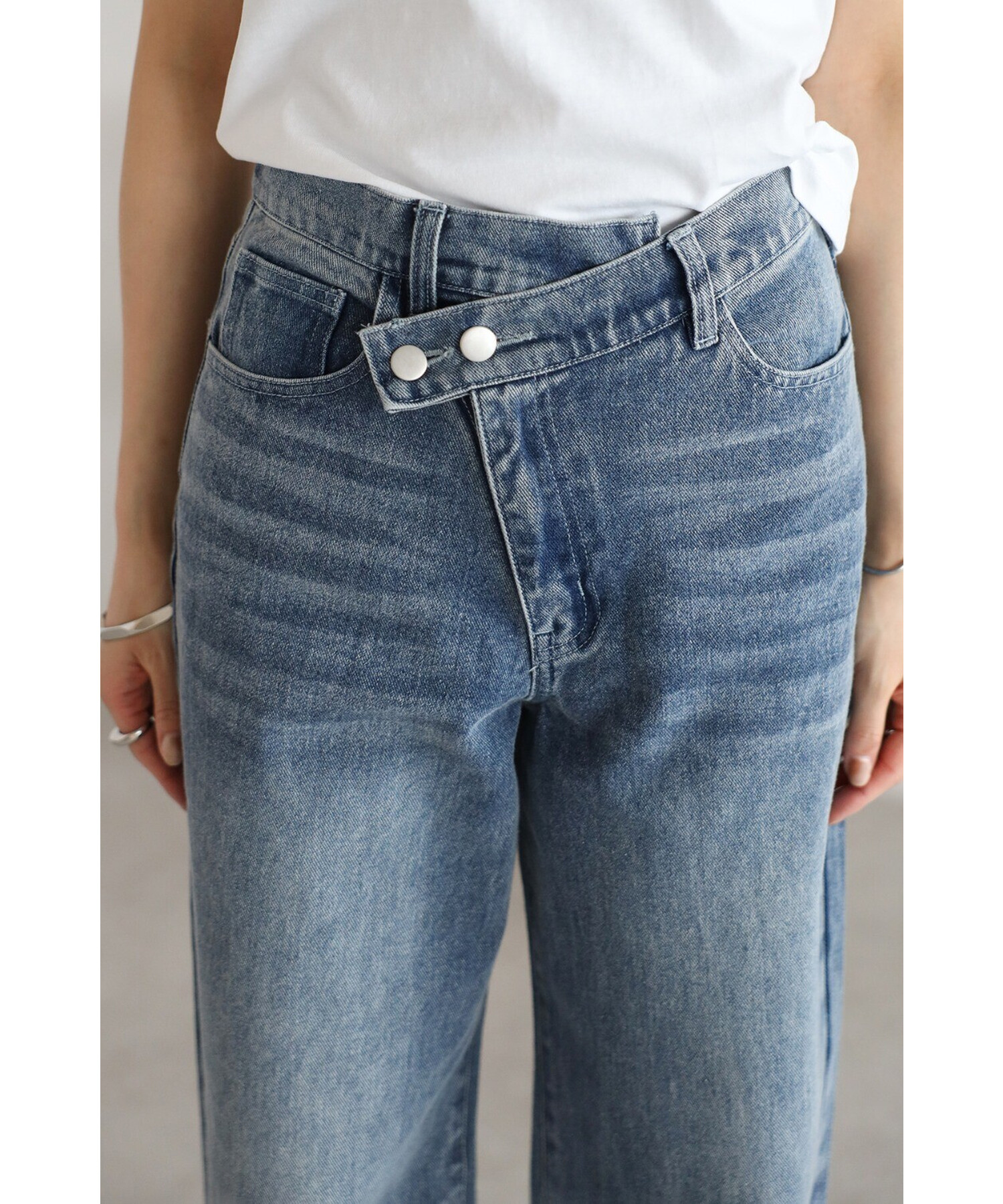 クロスウエストのディテールが、腰まわりに程よいアクセントを添えるデニムパンツ。