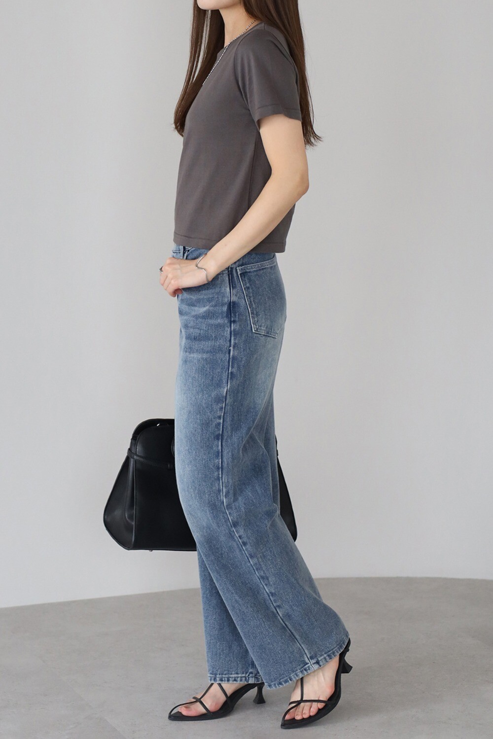 淡いウォッシュ加工が、春夏のスタイリングに軽やかさをプラスします。