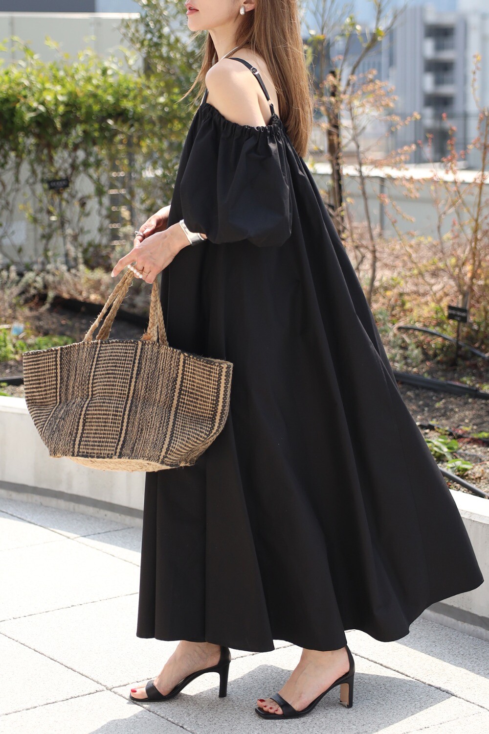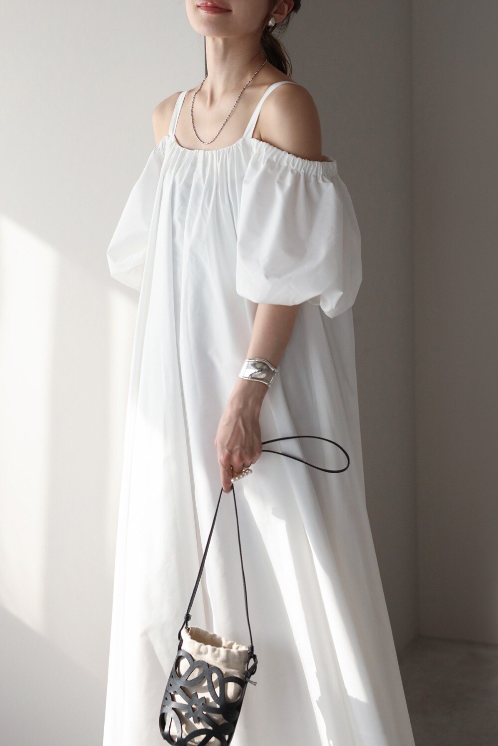 ふんわりと膨らむバルーンスリーブが目を惹く、存在感たっぷりのワンピース。