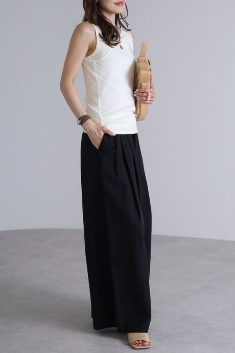 異素材のレイヤードスタイルが楽しめる、こなれ感漂うタンクトップセット。