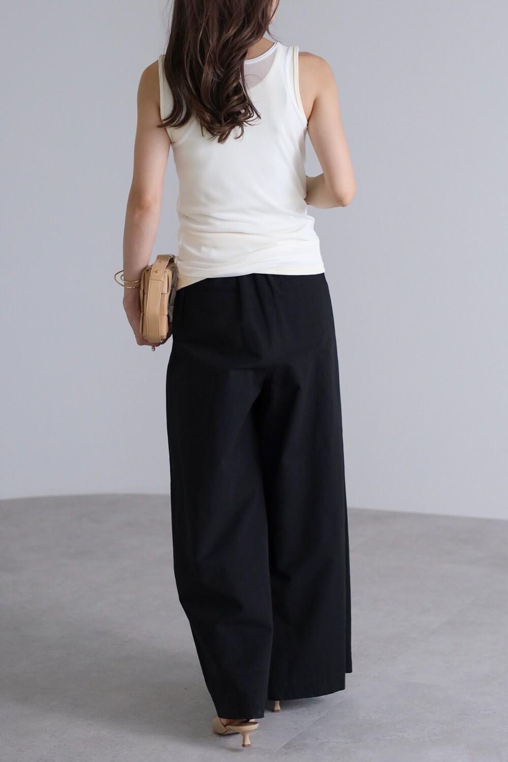 肌に優しくフィットするカットソー素材のインナーに、程よい透け感のシアータンクを重ねました。