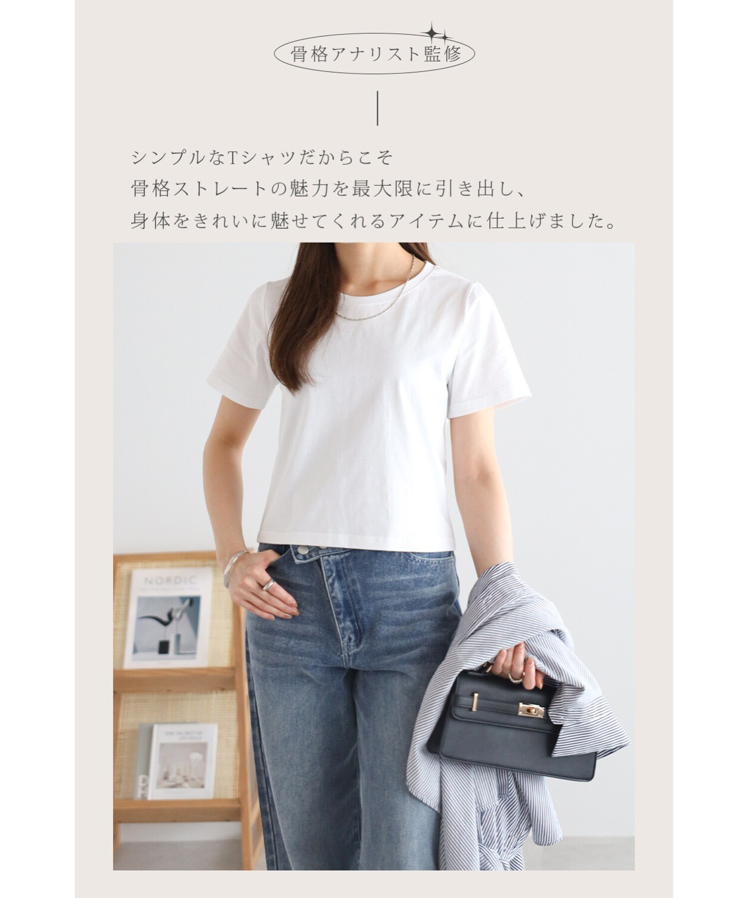 バランス美を引き出す、骨格ストレートさんのためのラウンドネックT