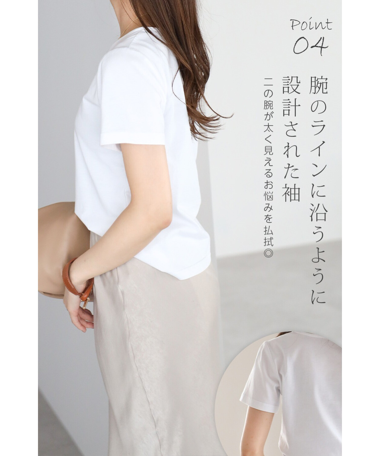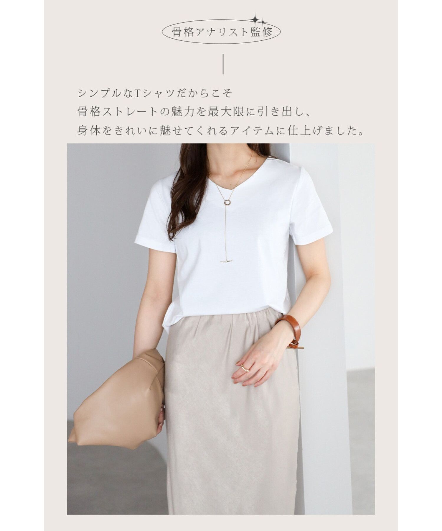 自然とすっきり見えを叶え、洗練されたムード漂う骨格ストレートさんのためのTシャツです。