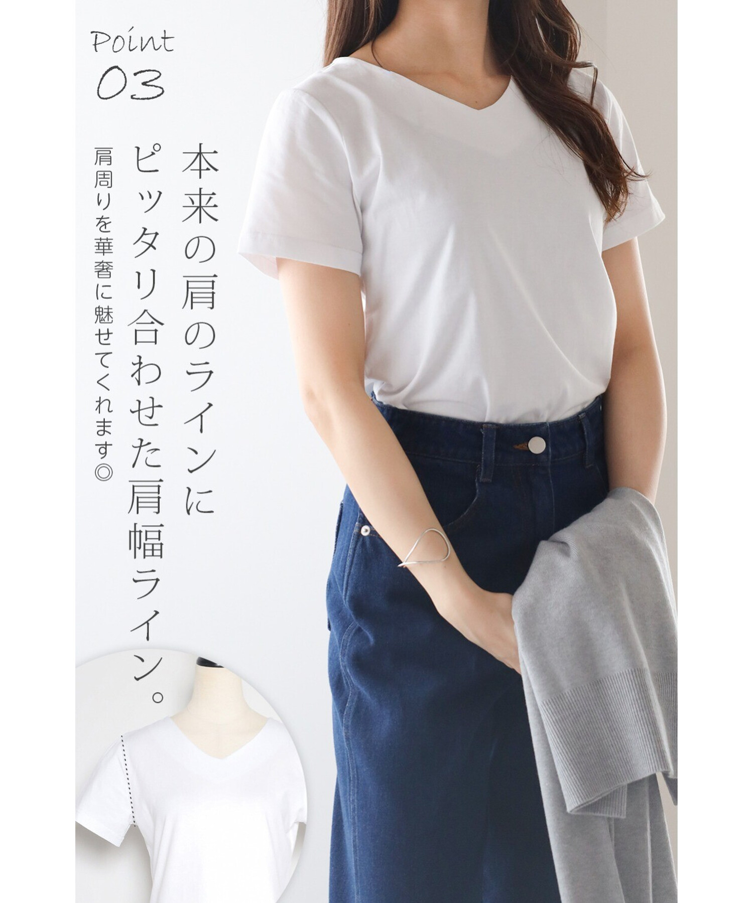 肩の位置は繊細に調整されており、骨格ストレートさんの肩幅にきれいにフィットします。