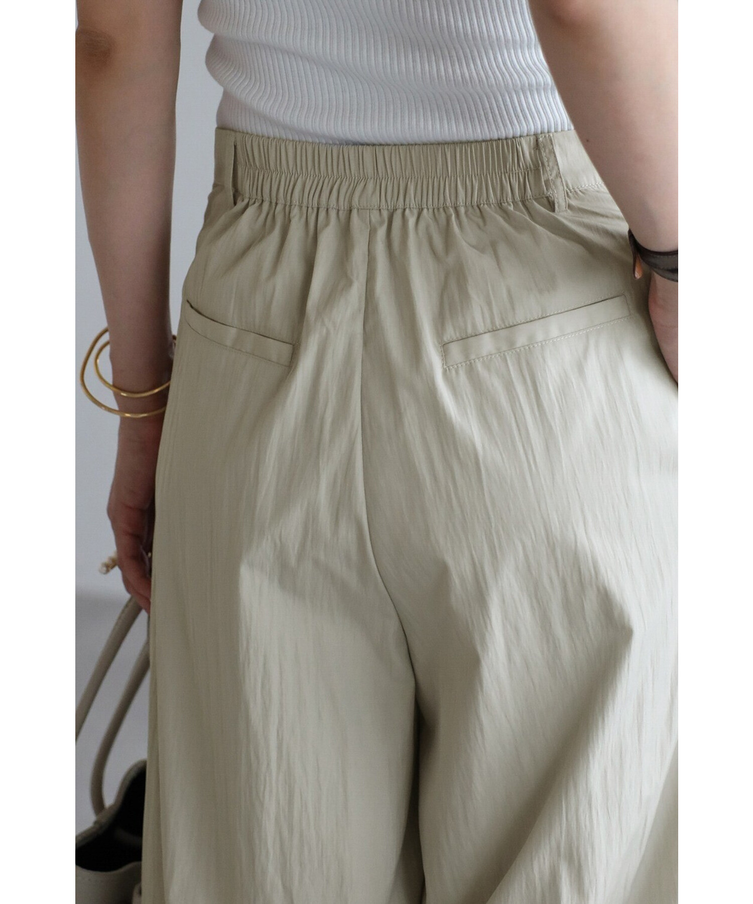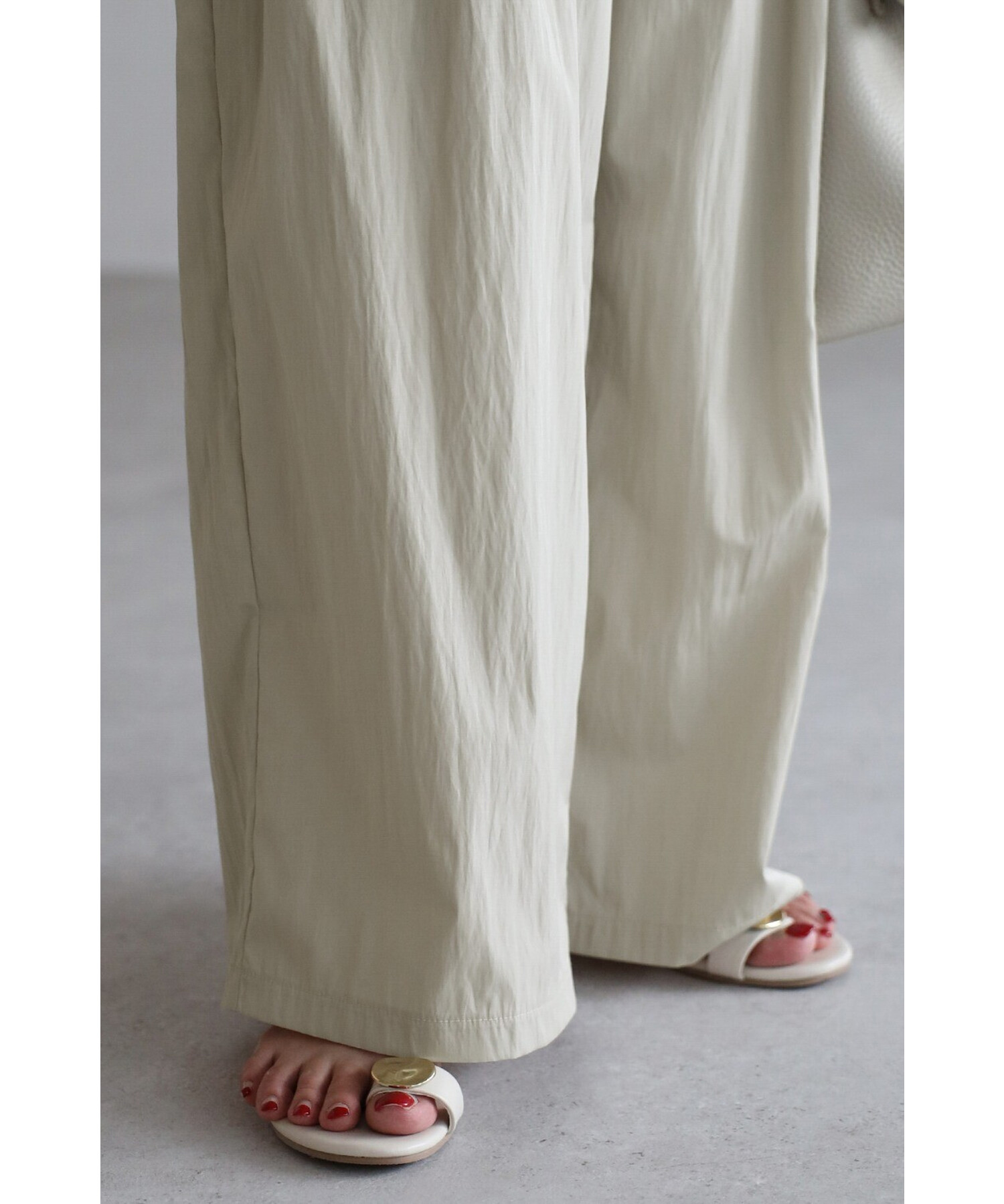 ややシワ感のある柔らかいレーヨン×ナイロン素材で、こなれコーデが完成します。