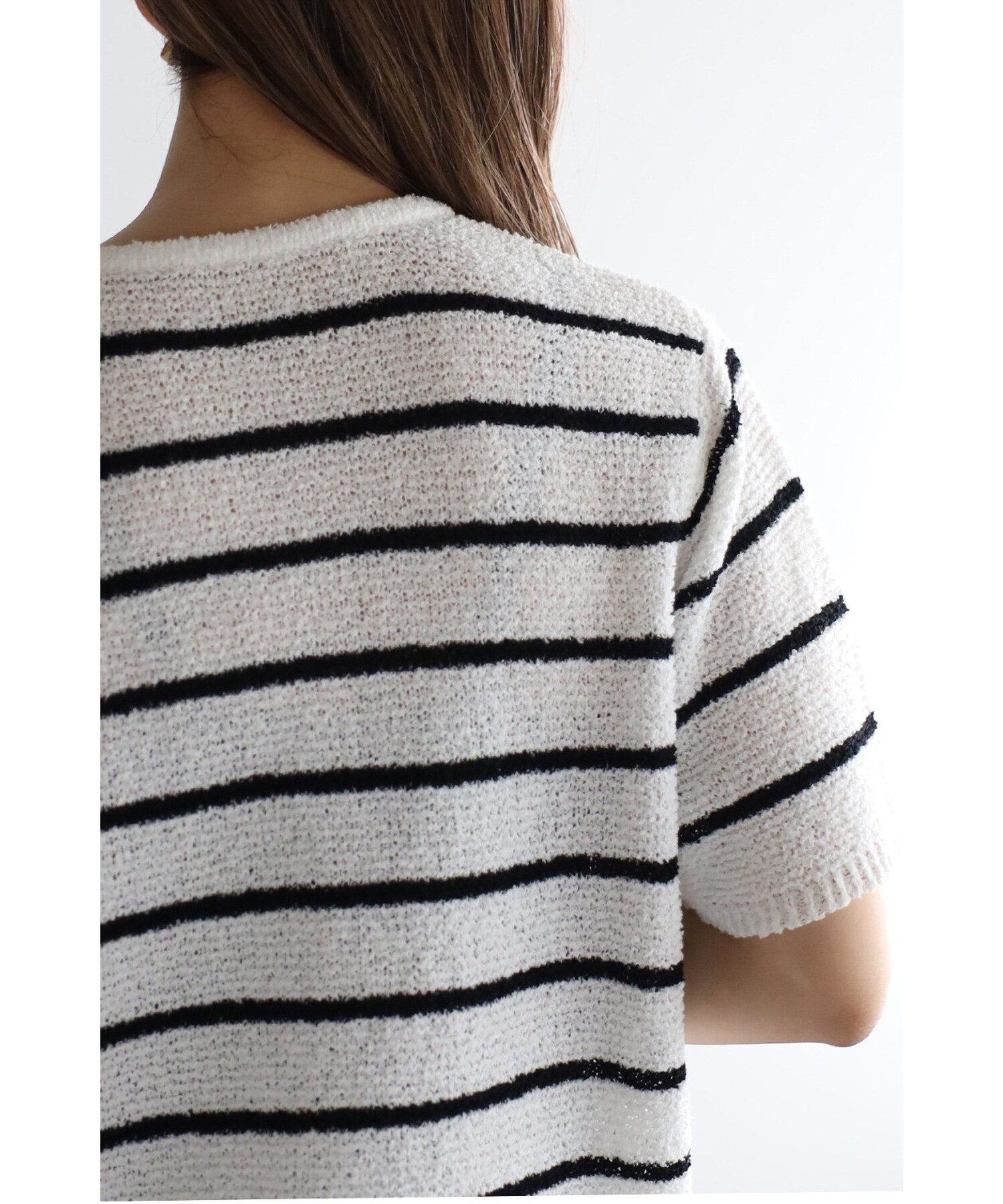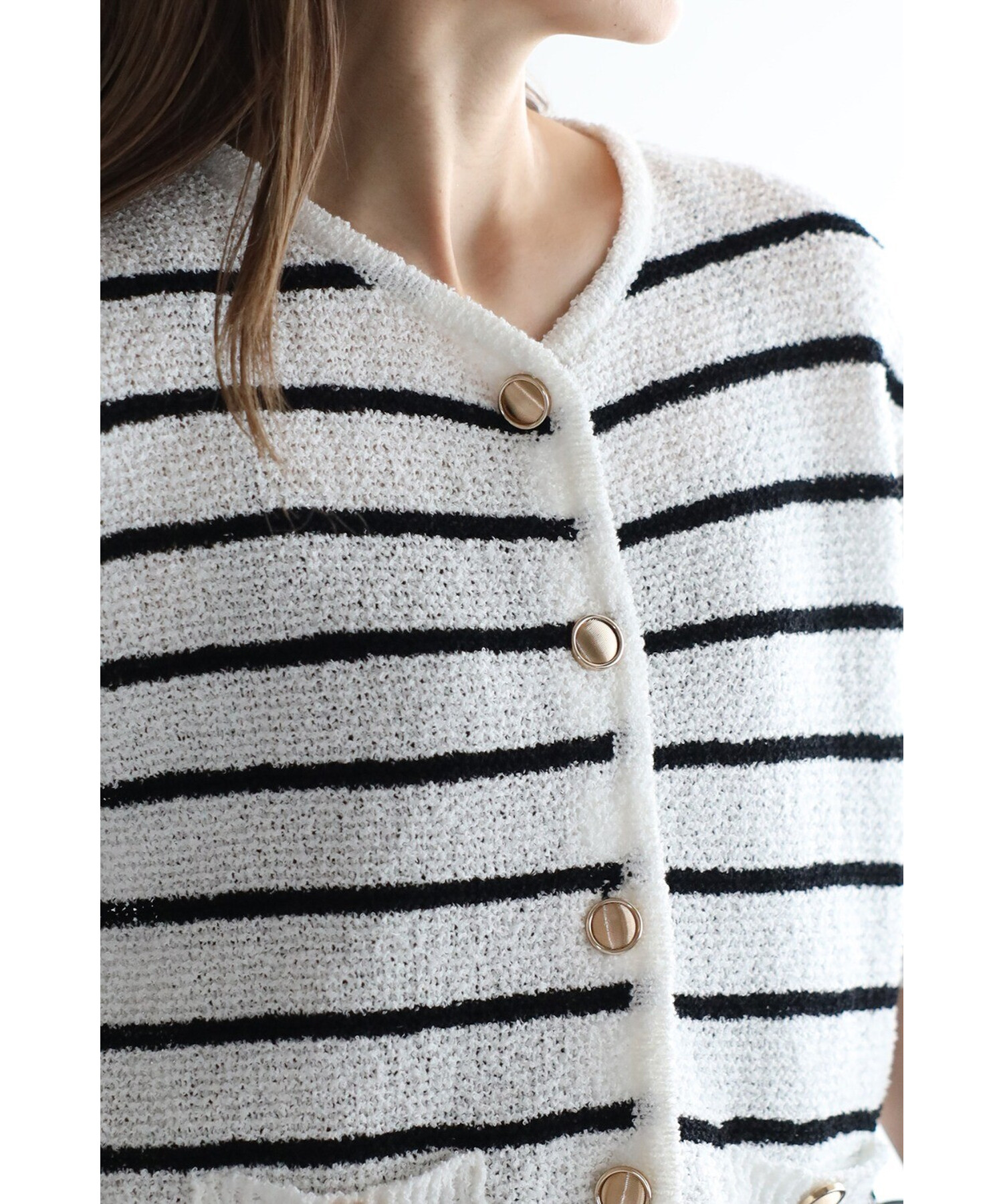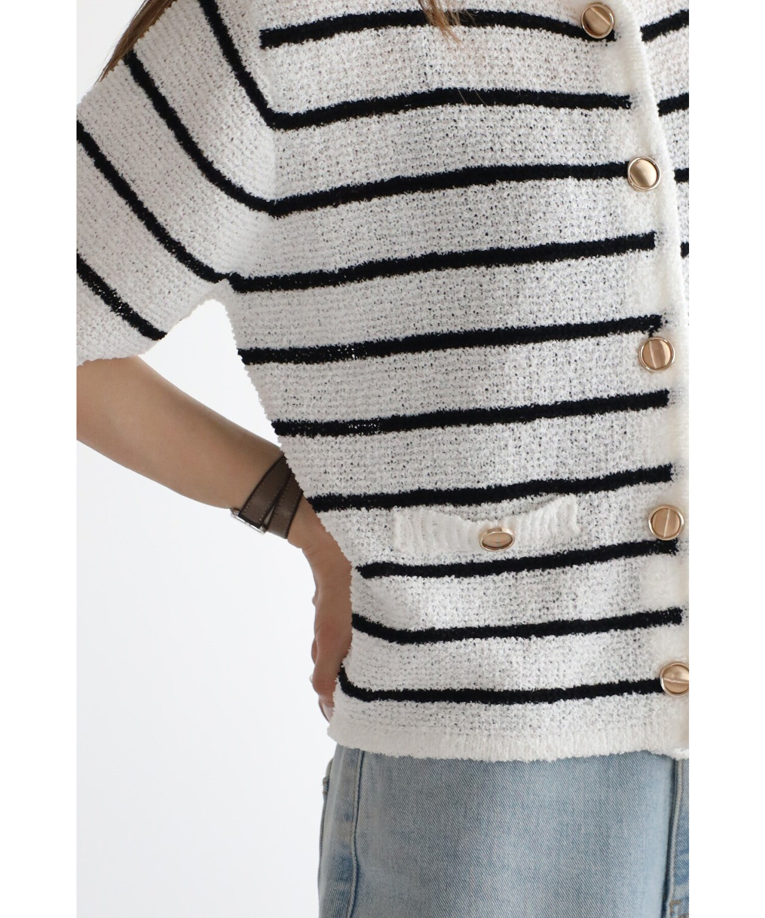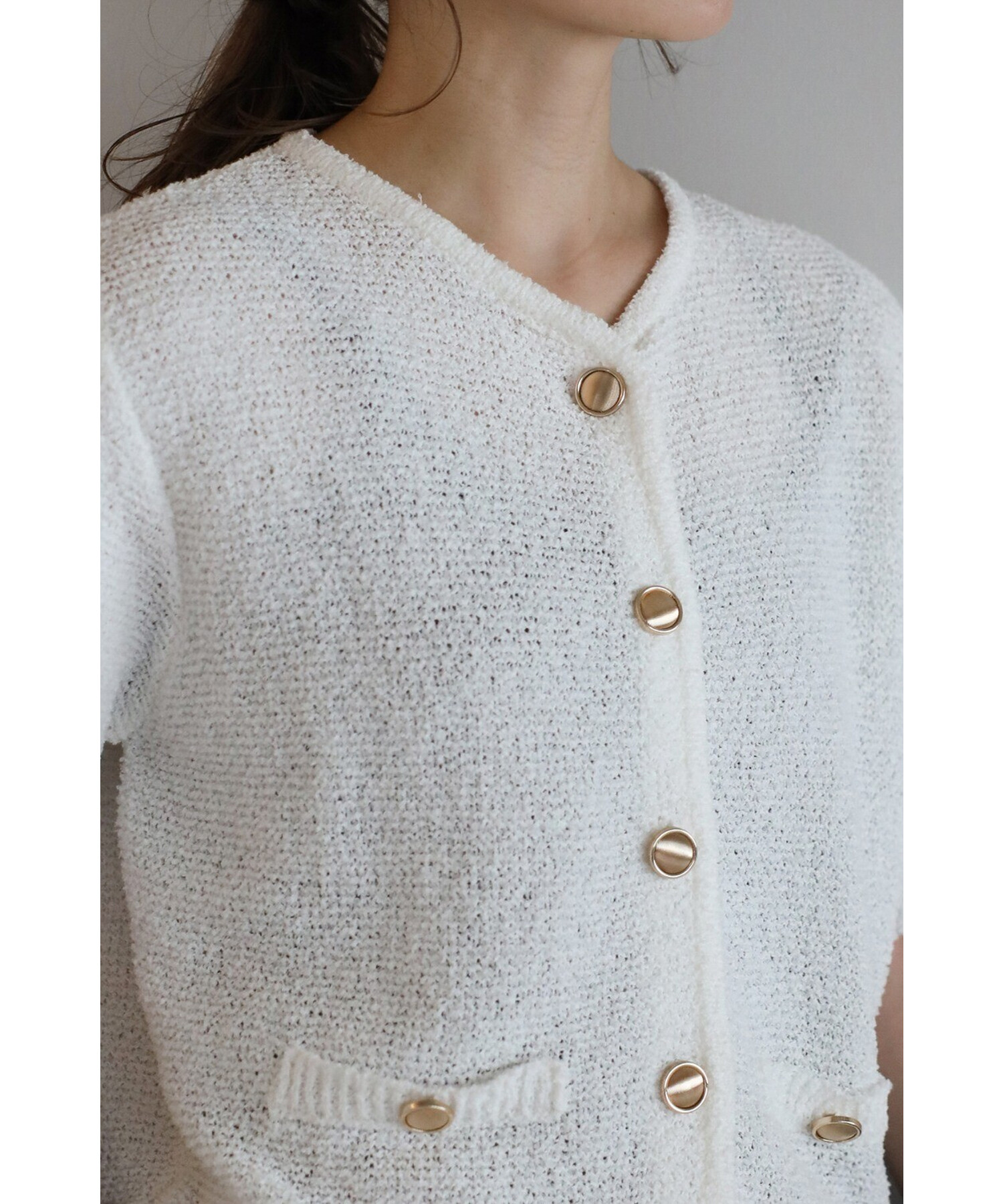 柔らかなブークレニットで仕立てた、ふんわりとした肌ざわりの半袖カーディガン。
