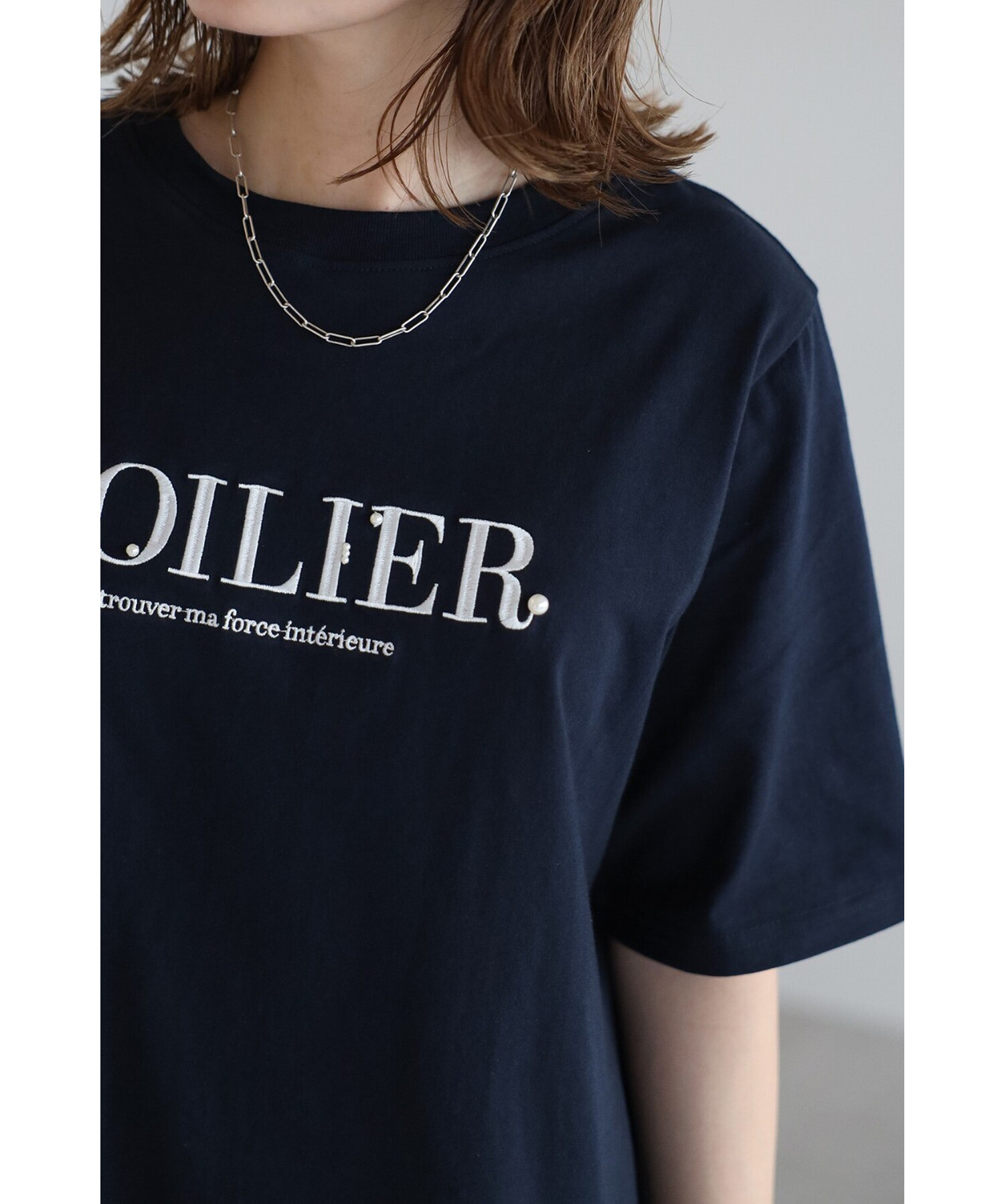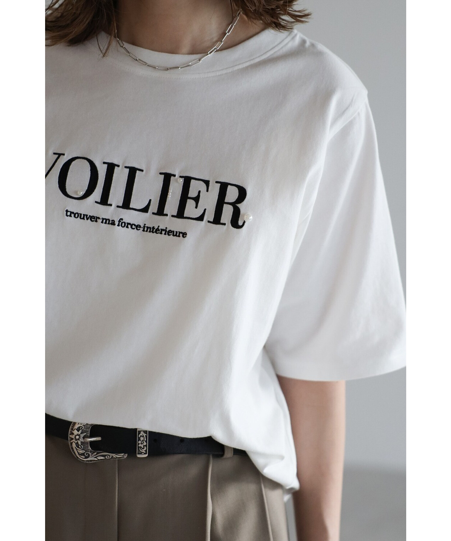 さりげない煌めきが映える、パール付き刺繍ロゴTシャツ