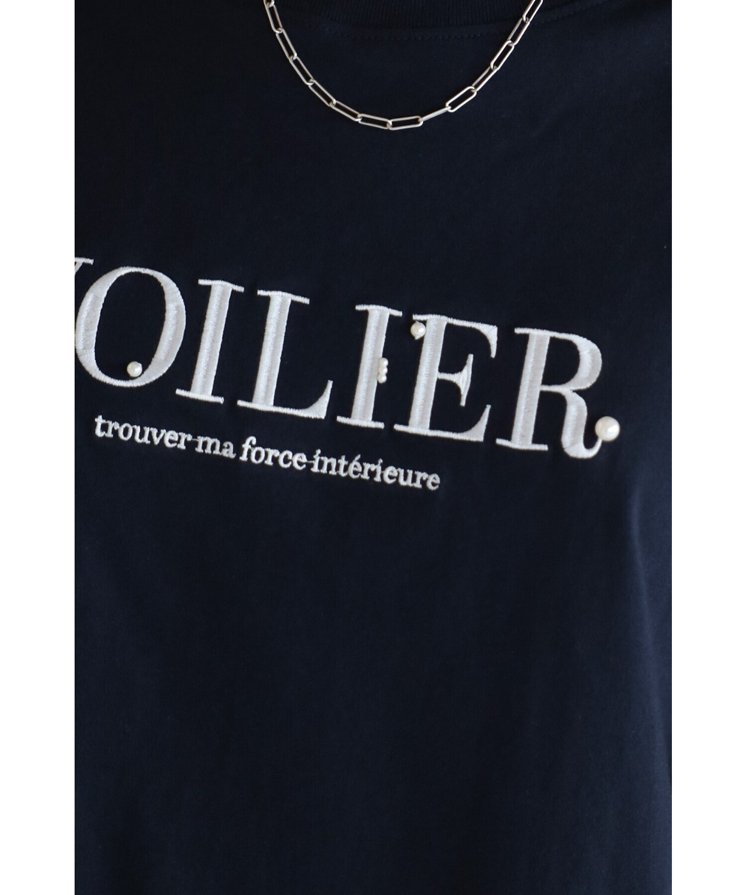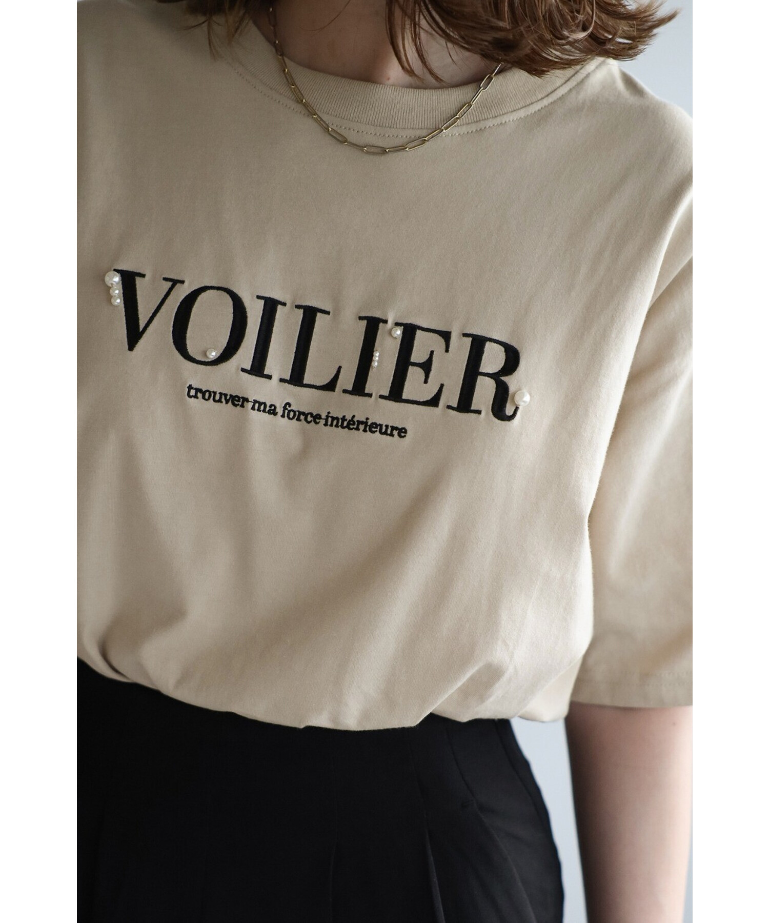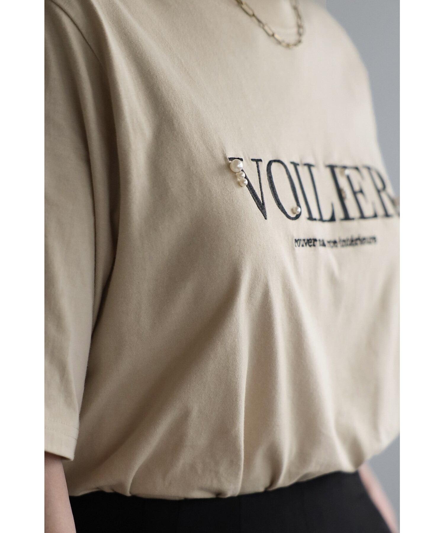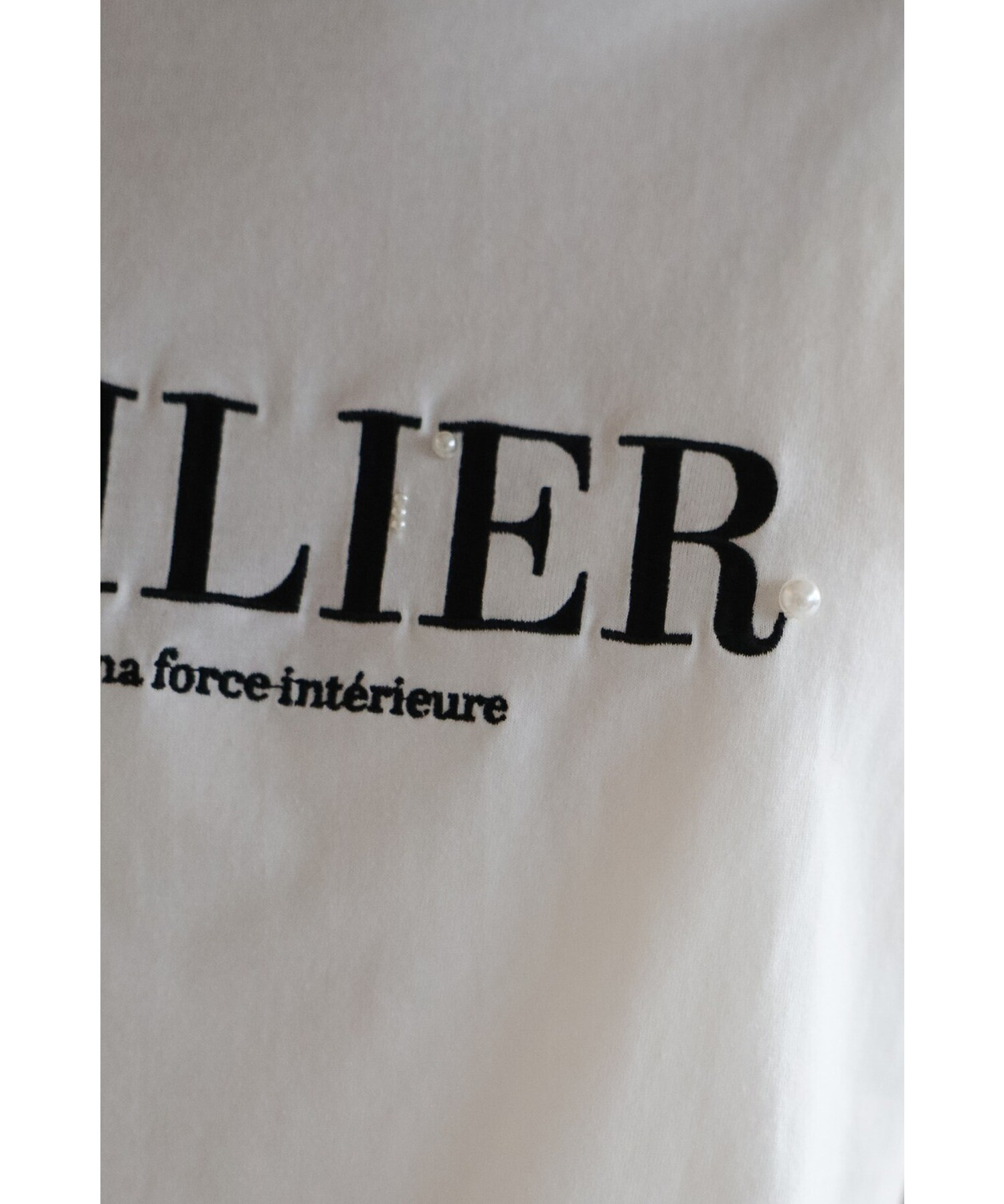 立体感のある刺繍ロゴにパールを散りばめた華やかなTシャツ。