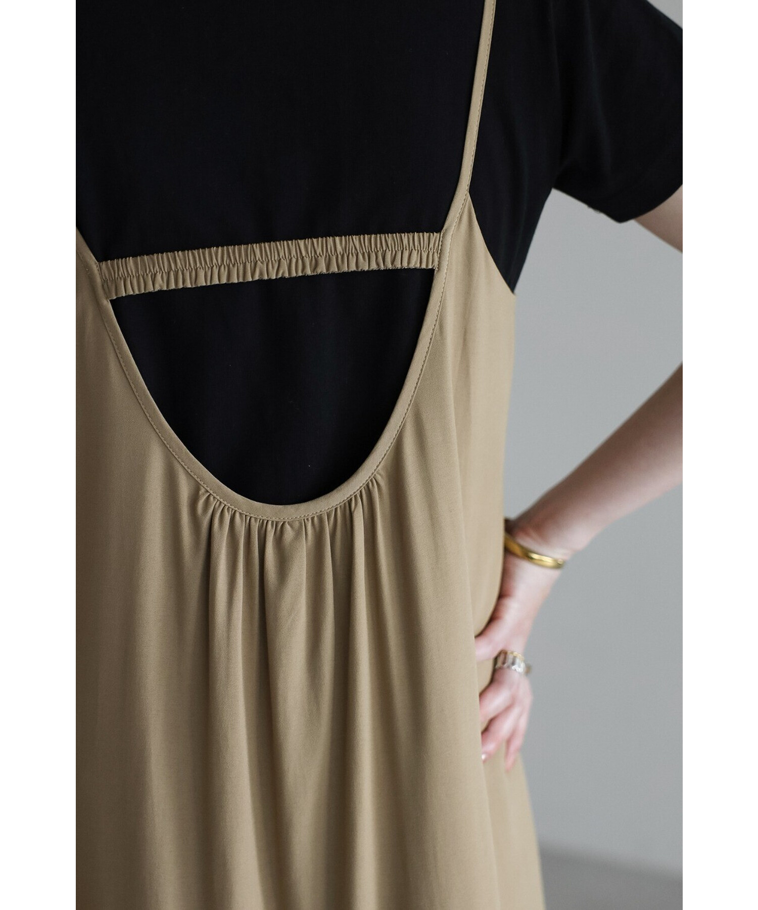 ヘルシーな肌見せが叶う、ギャザー入りのバックオープンキャミワンピ。