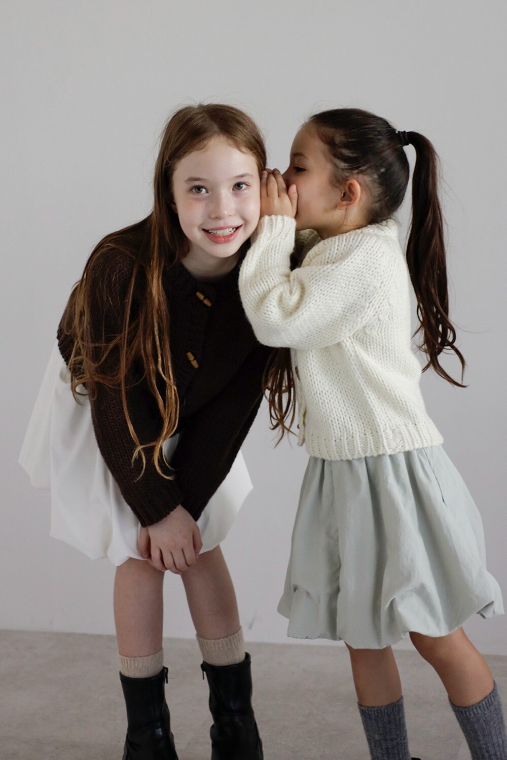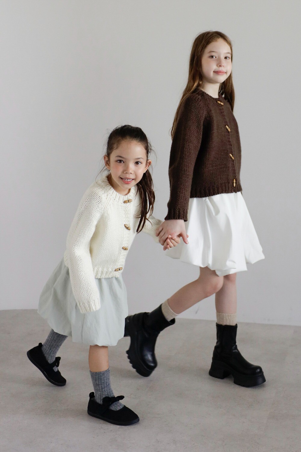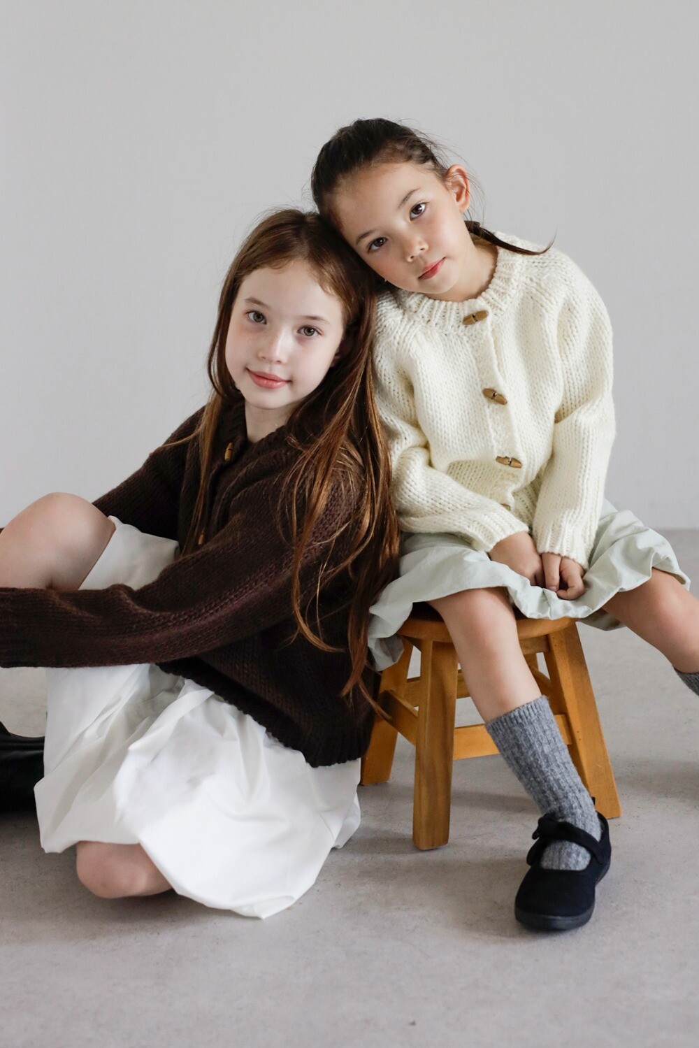 - mini&mom - ほっこり冬スタイルに!ウッドボタンデザインカーディガン