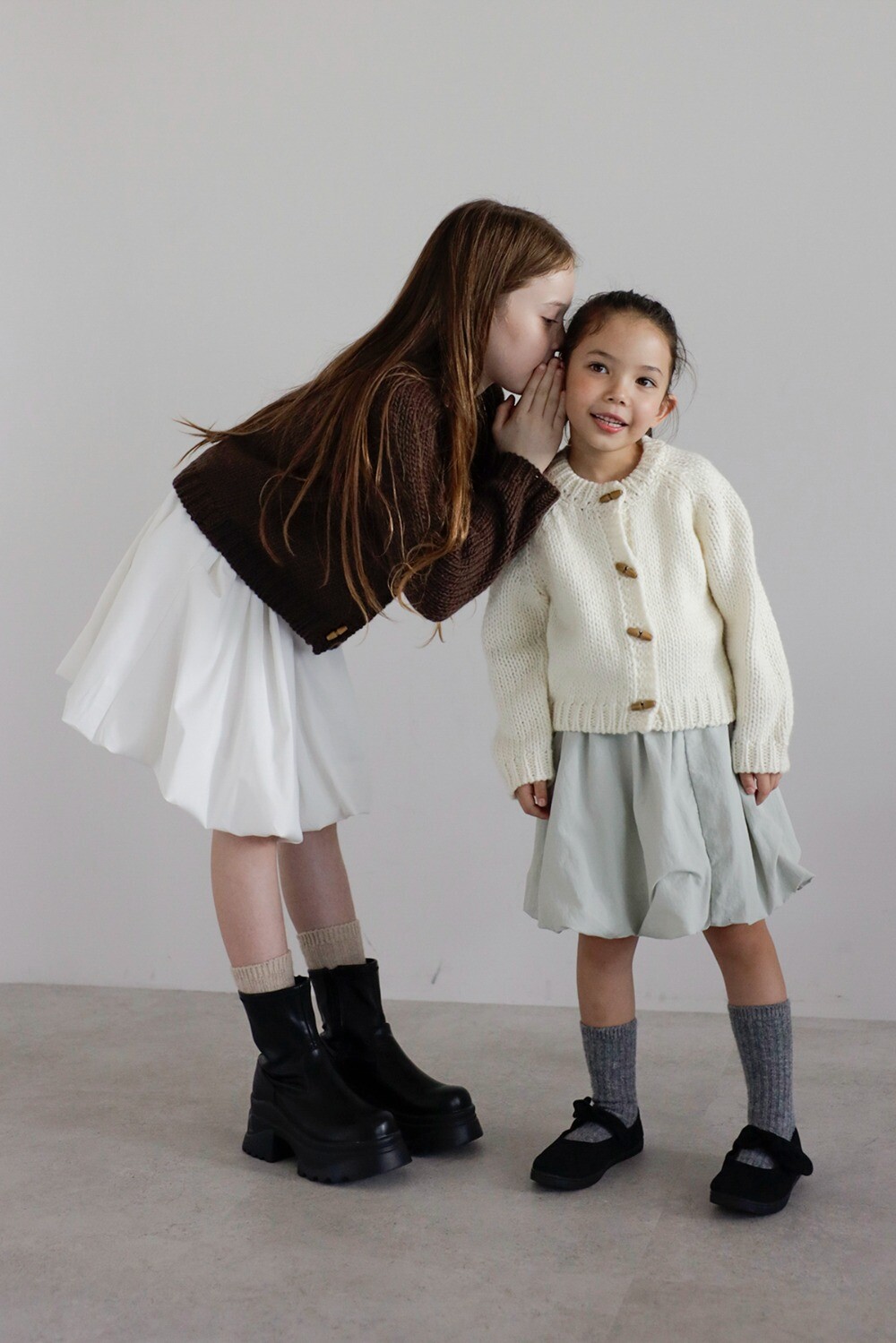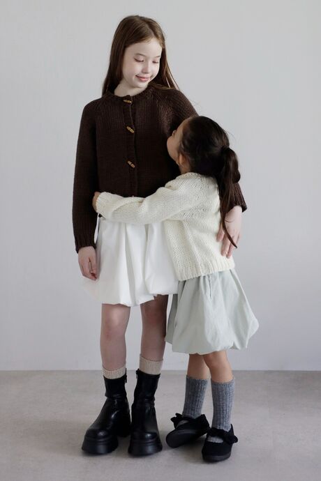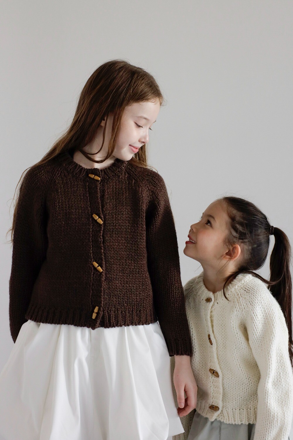 - mini&mom - ほっこり冬スタイルに!ウッドボタンデザインカーディガン