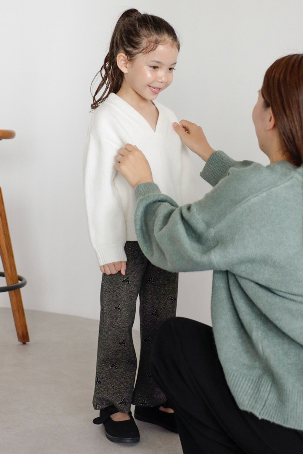 ※ディープVネックニットと合わせていただくと、ママとのリンクコーデがお楽しみいただけます。