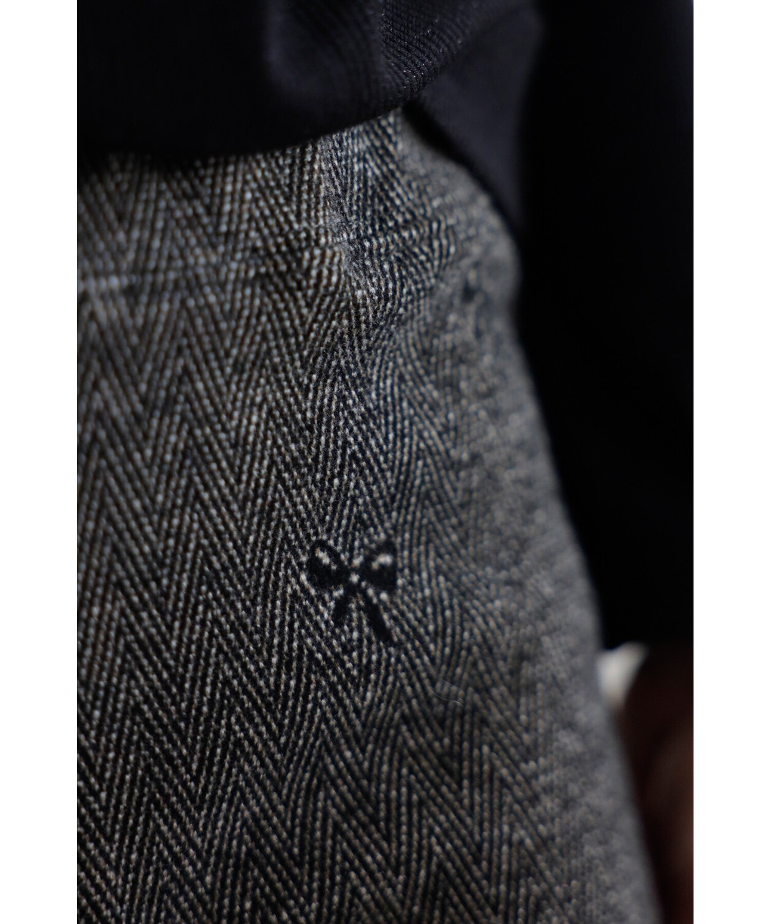 裾にかけて広がるシルエットは脚をすっきりと見せる効果も。