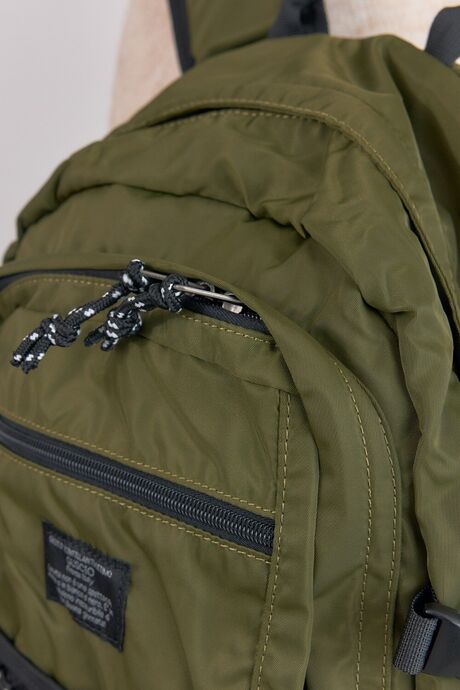 シンプルな無地のデザインが、どんなスタイルにも自然に調和するリュックです。
