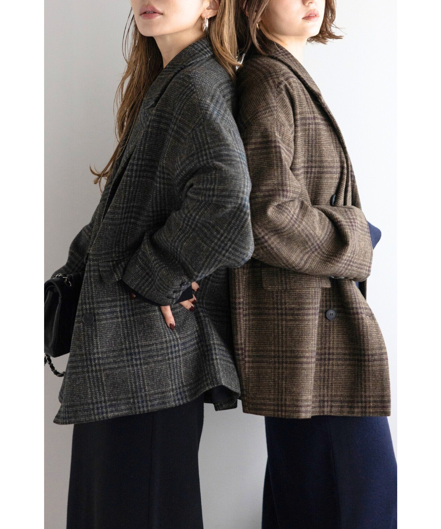 袖口のボタンディテールや背面の柄合わせにもこだわった、トレンド感のあるチェックアウターです。