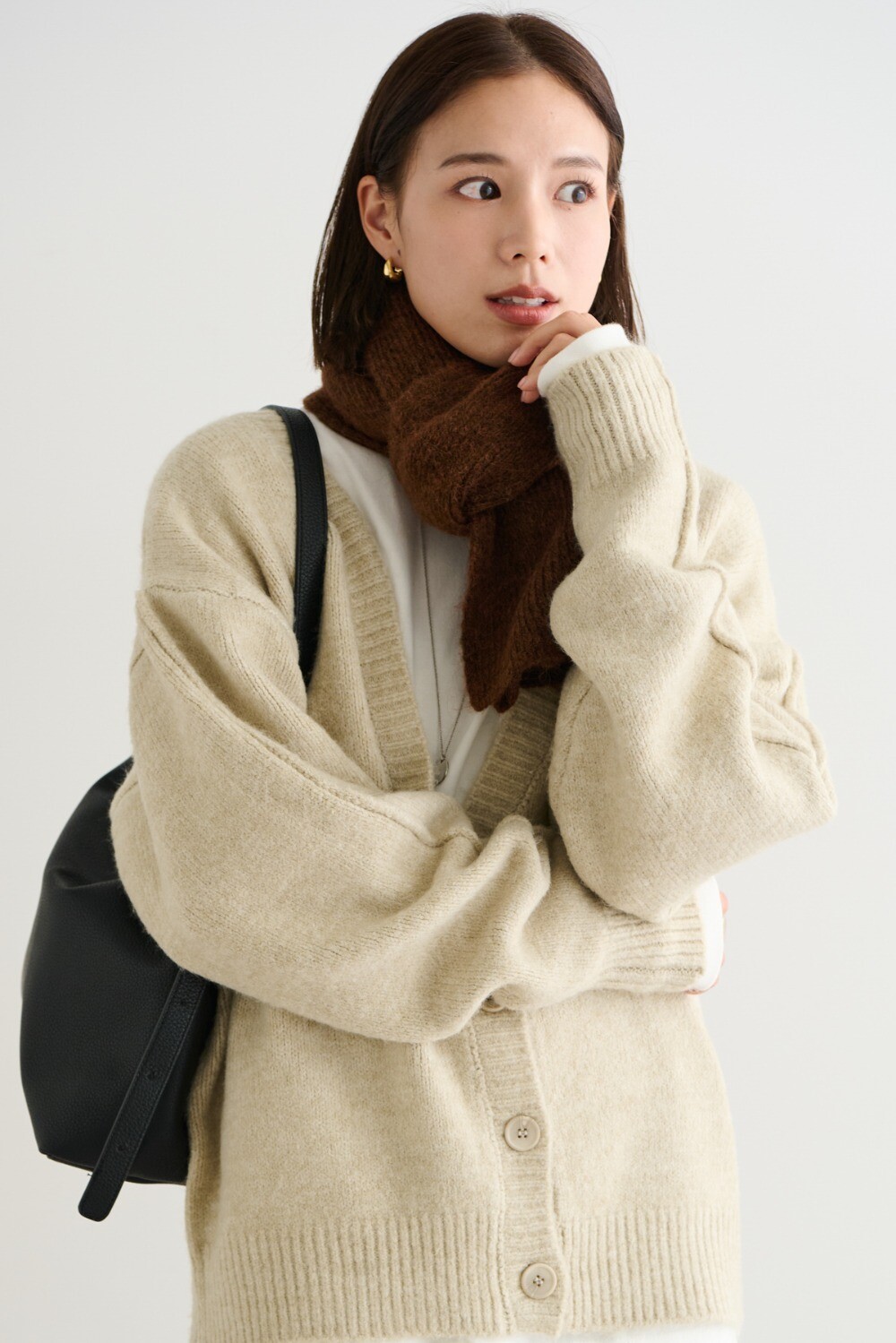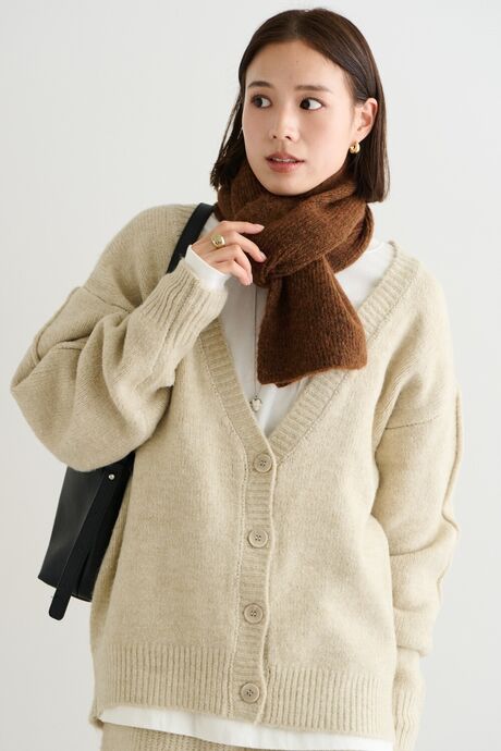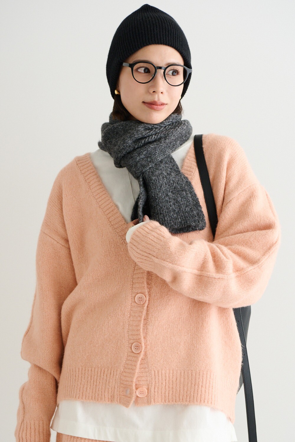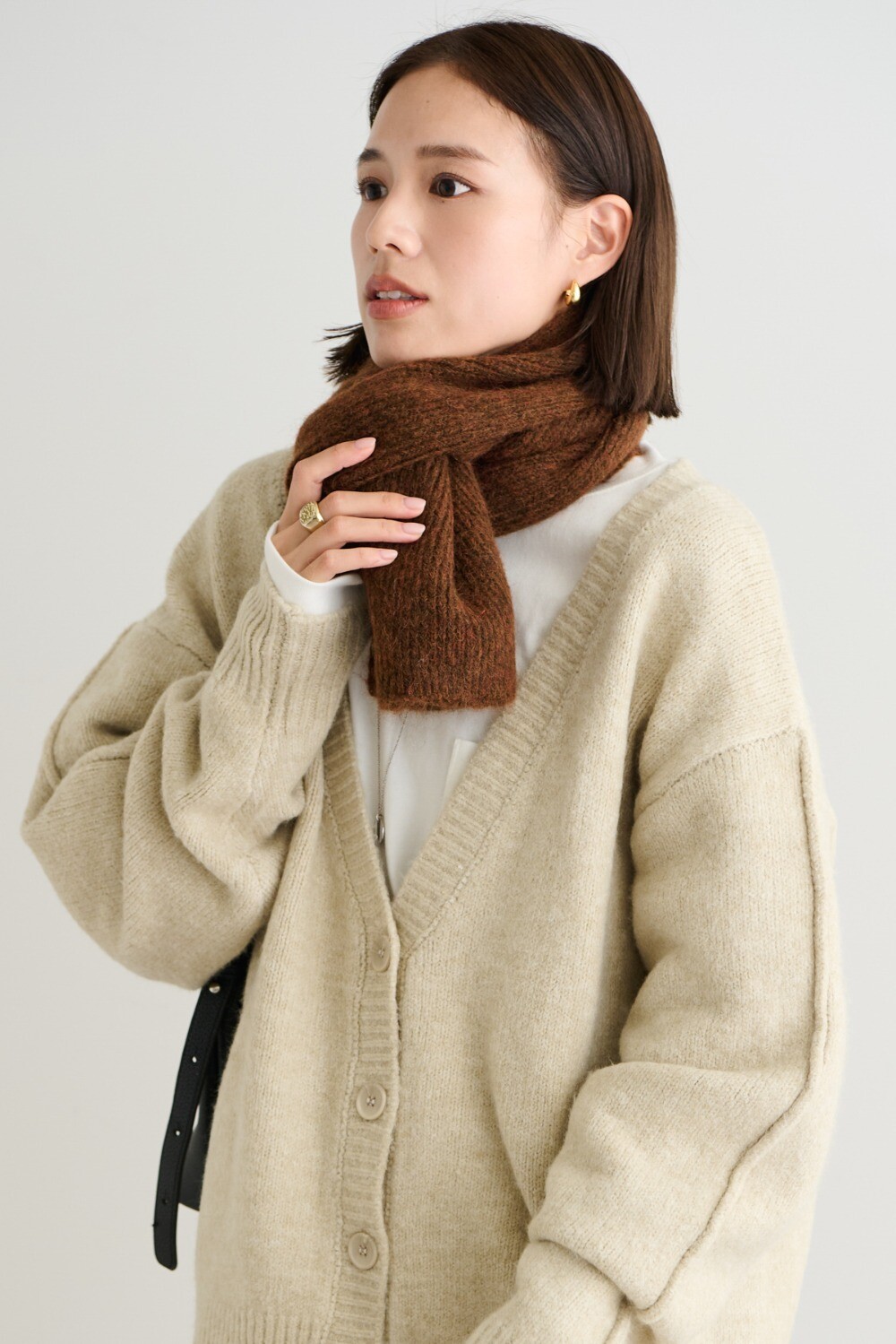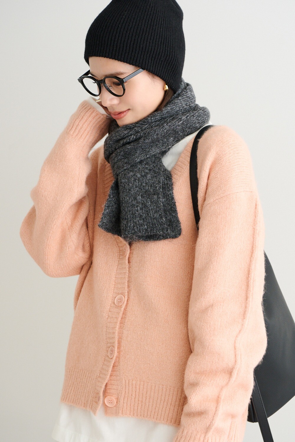 デイリーコーデに自然と馴染む、ショート丈デザインのニットマフラー