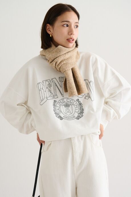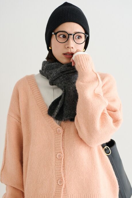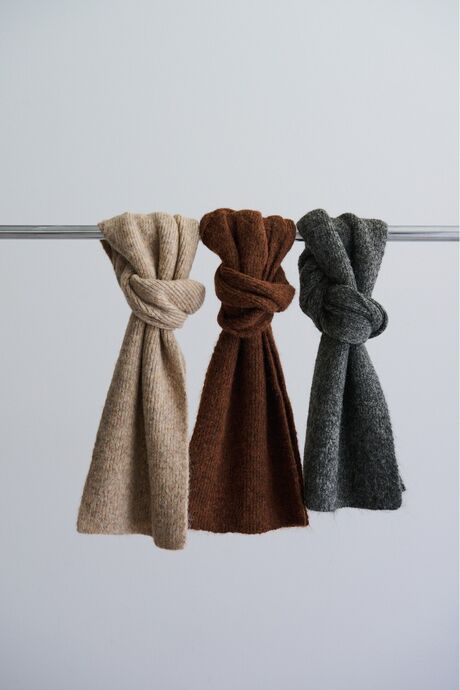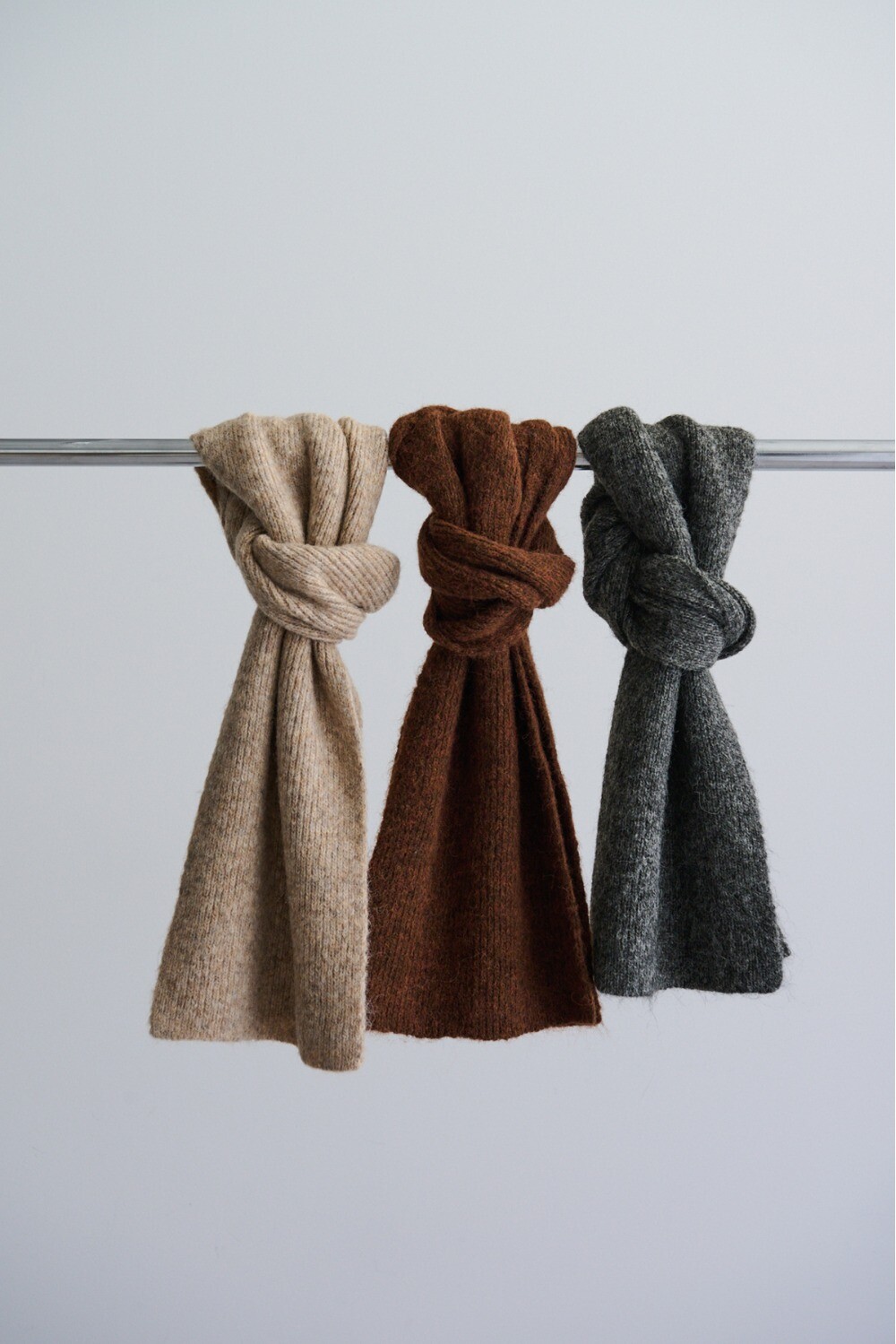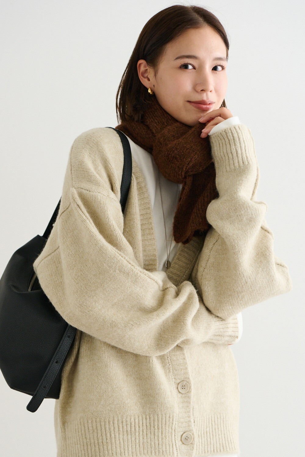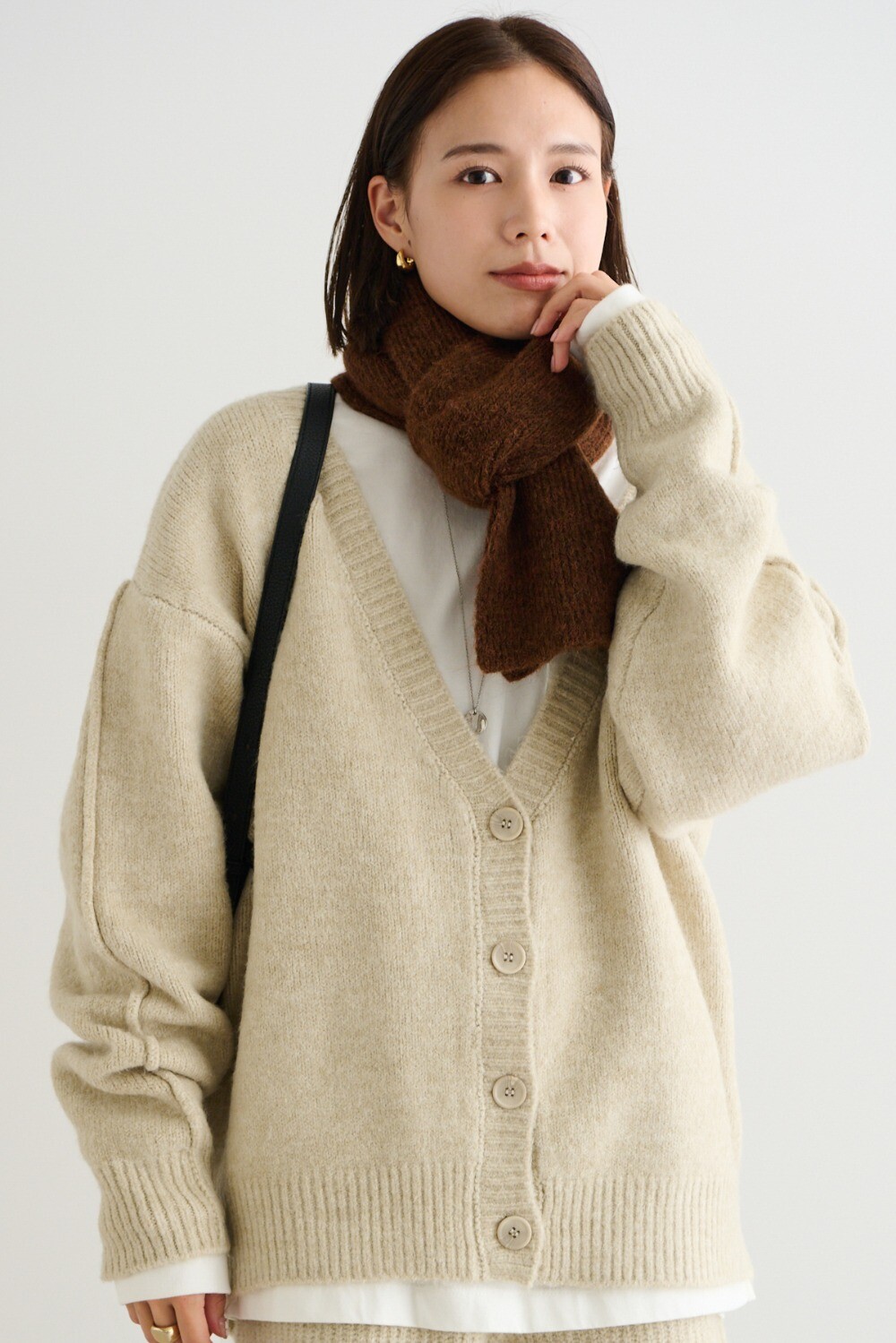 デイリーコーデに自然と馴染む、ショート丈デザインのニットマフラー
