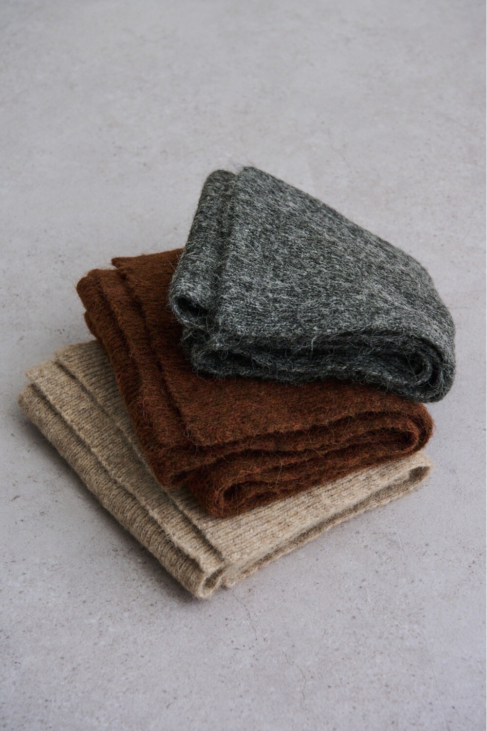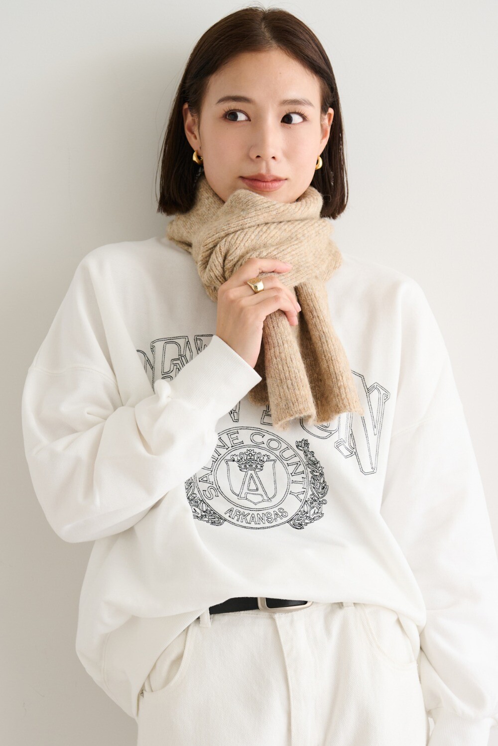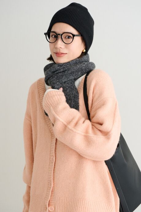 シンプルながらミックス糸の表情ある編み地が季節感をプラスするマフラー。